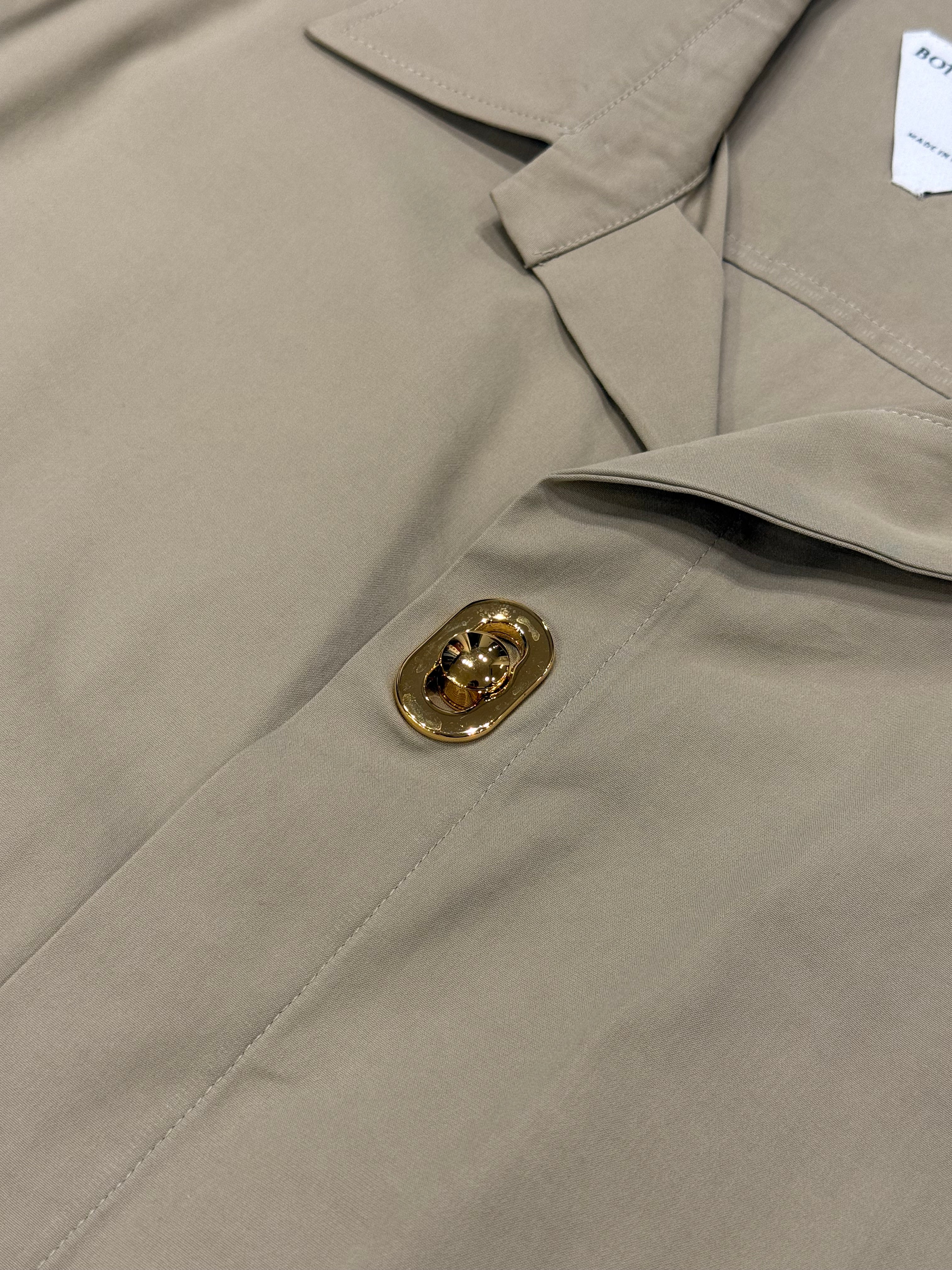 This Bottega Veneta coat from 2020 is crafted in beige cotton with an oversized silhouette and dramatic batwing raglan sleeves. It features a concealed front closure, wide cuffs, and minimal detailing, embodying the house’s contemporary approach to luxury with sculptural tailoring. A modern statement coat that balances function and avant-garde design.