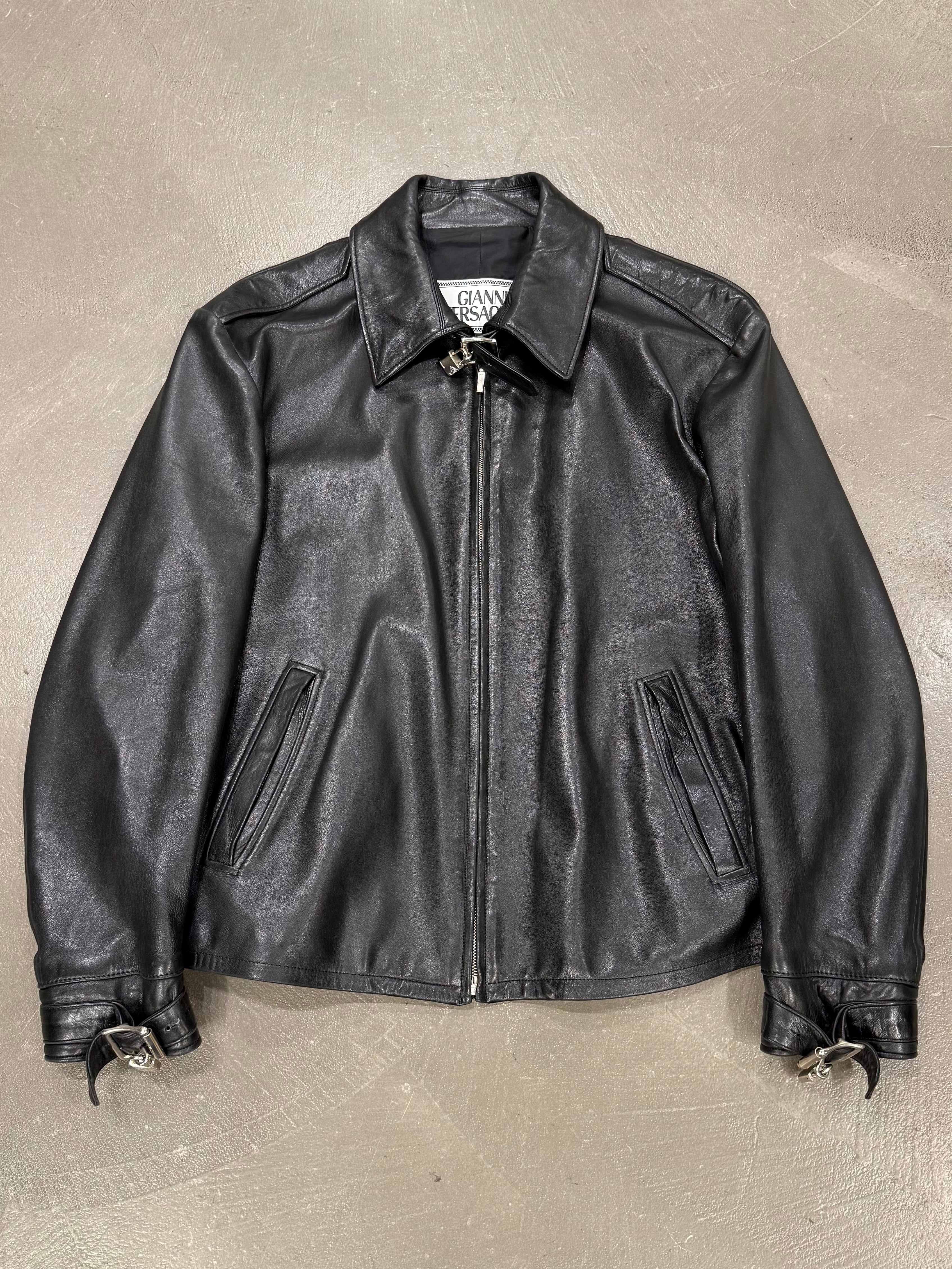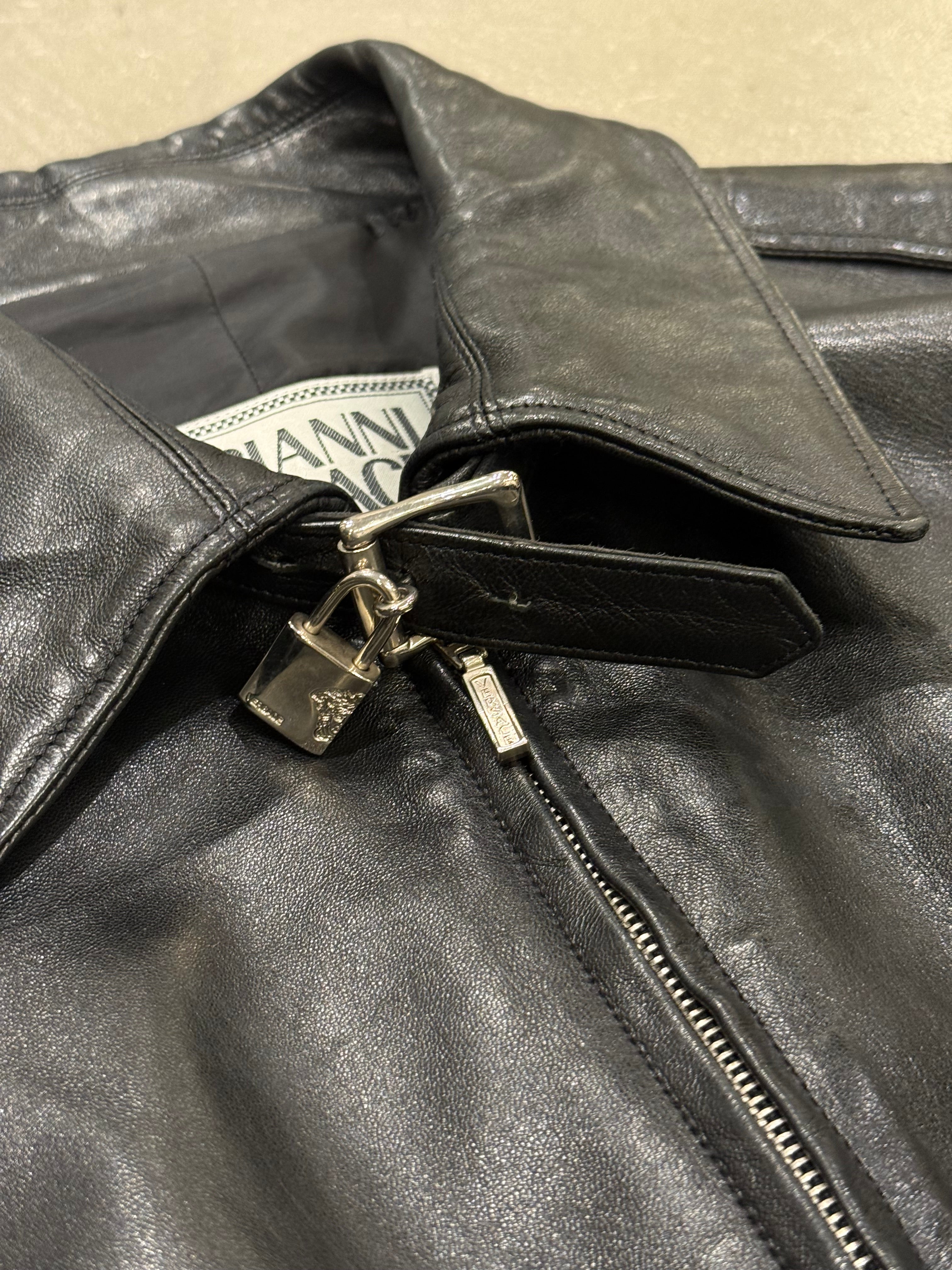 1990s Gianni Versace leather jacket with padlock hardware detail