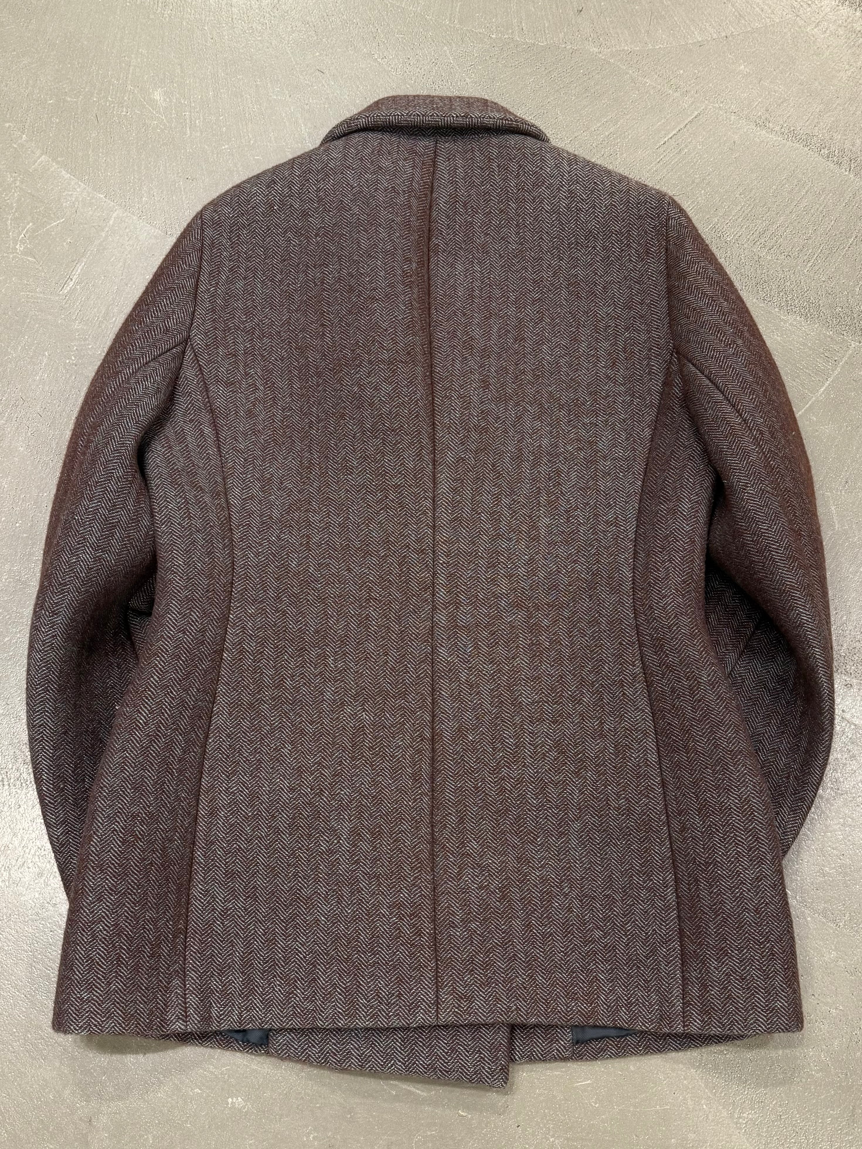 This Acne Studios overcoat from the 2010s features a classic double-breasted cut in a refined herringbone wool. The elongated silhouette and lightly padded shoulders convey a relaxed yet structured look, true to the Scandinavian label’s minimalist tailoring philosophy. A versatile and timeless outerwear staple.