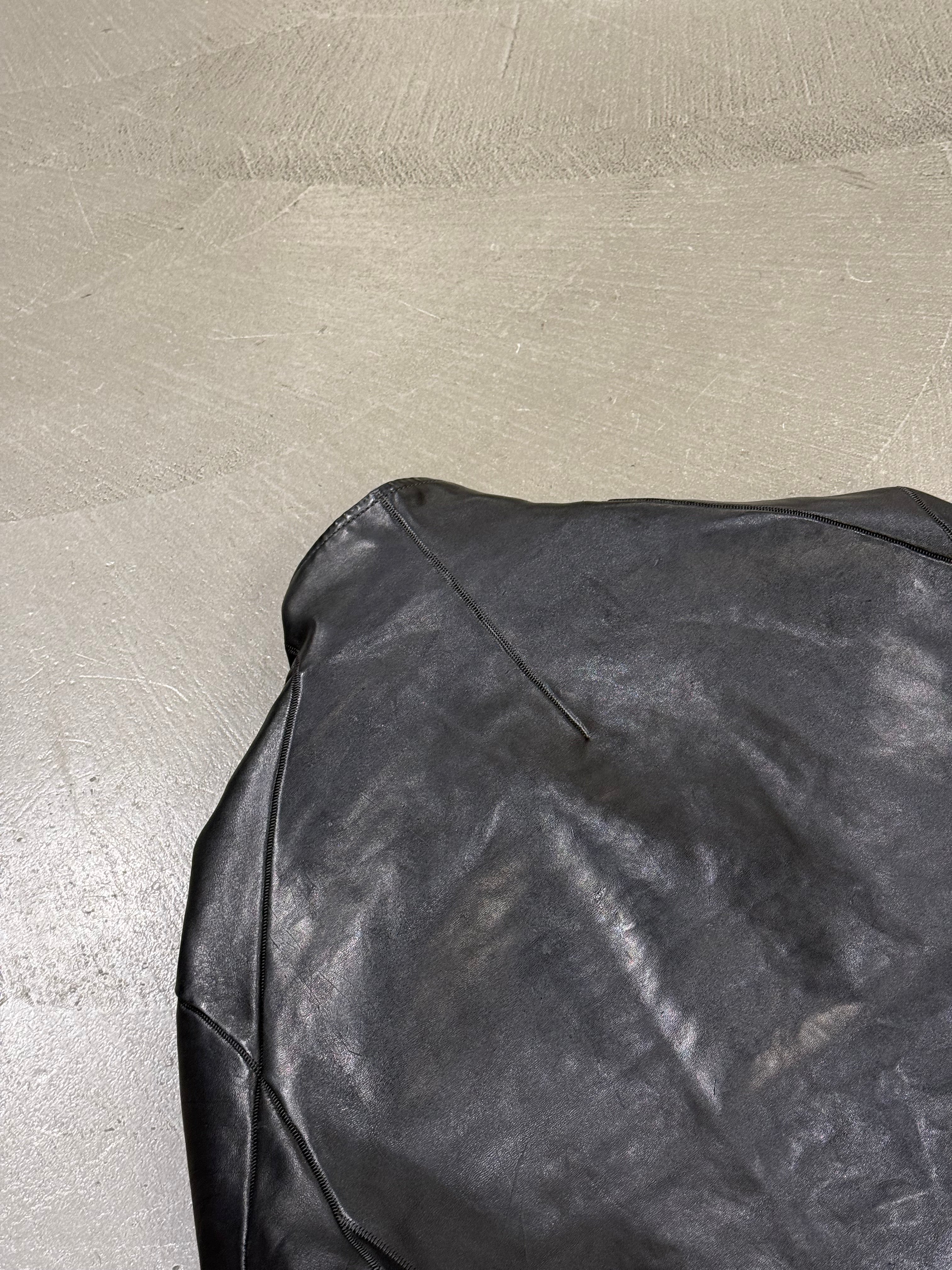 Carol Christian Poell prosthetic gloved leather jacket. Iconic archival piece by Carol Christian Poell, featuring integrated prosthetic-style leather gloves that extend directly from the sleeves, creating a sculptural and anatomical silhouette. Crafted in black leather with a naturally aged surface, showing characteristic creasing and texture developed through wear, fully in line with Poell’s material-driven approach.
