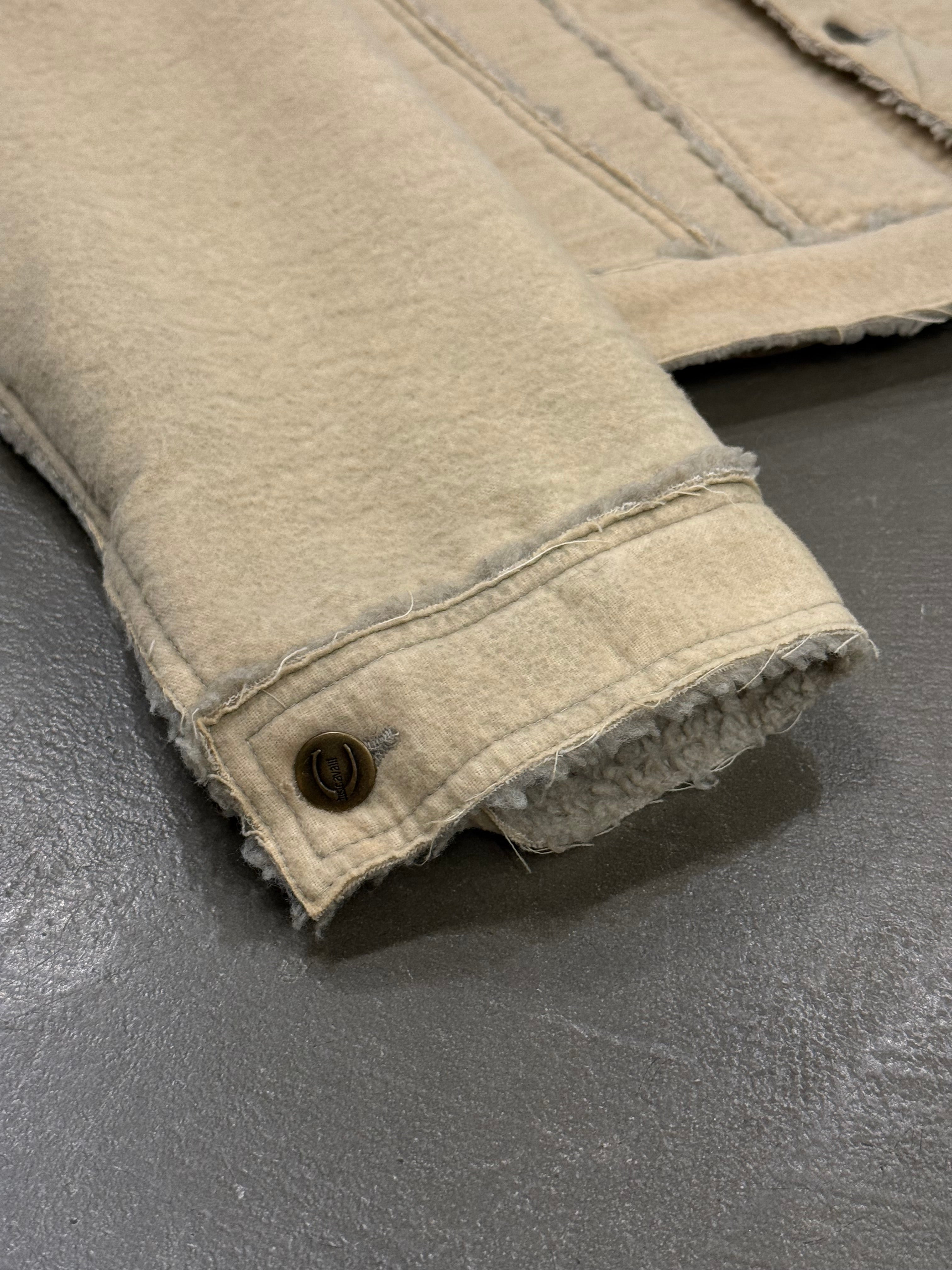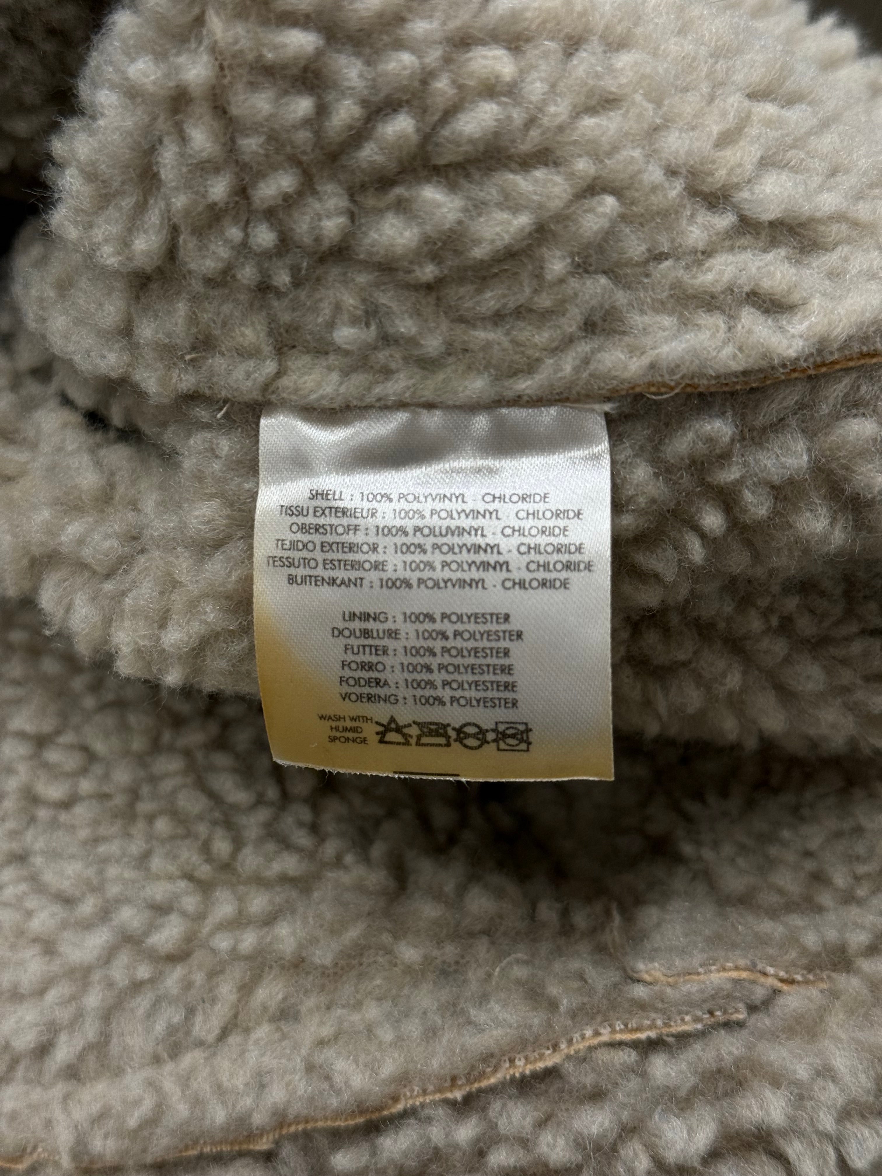This Cavalli jacket from the 2000s reinterprets the classic trucker silhouette with a winter-ready twist. Made from beige faux shearling, it combines rugged casualwear with a touch of Italian flair. Featuring flap chest pockets, button closure, and contrast stitching, the piece offers both warmth and style while maintaining a timeless, versatile design.