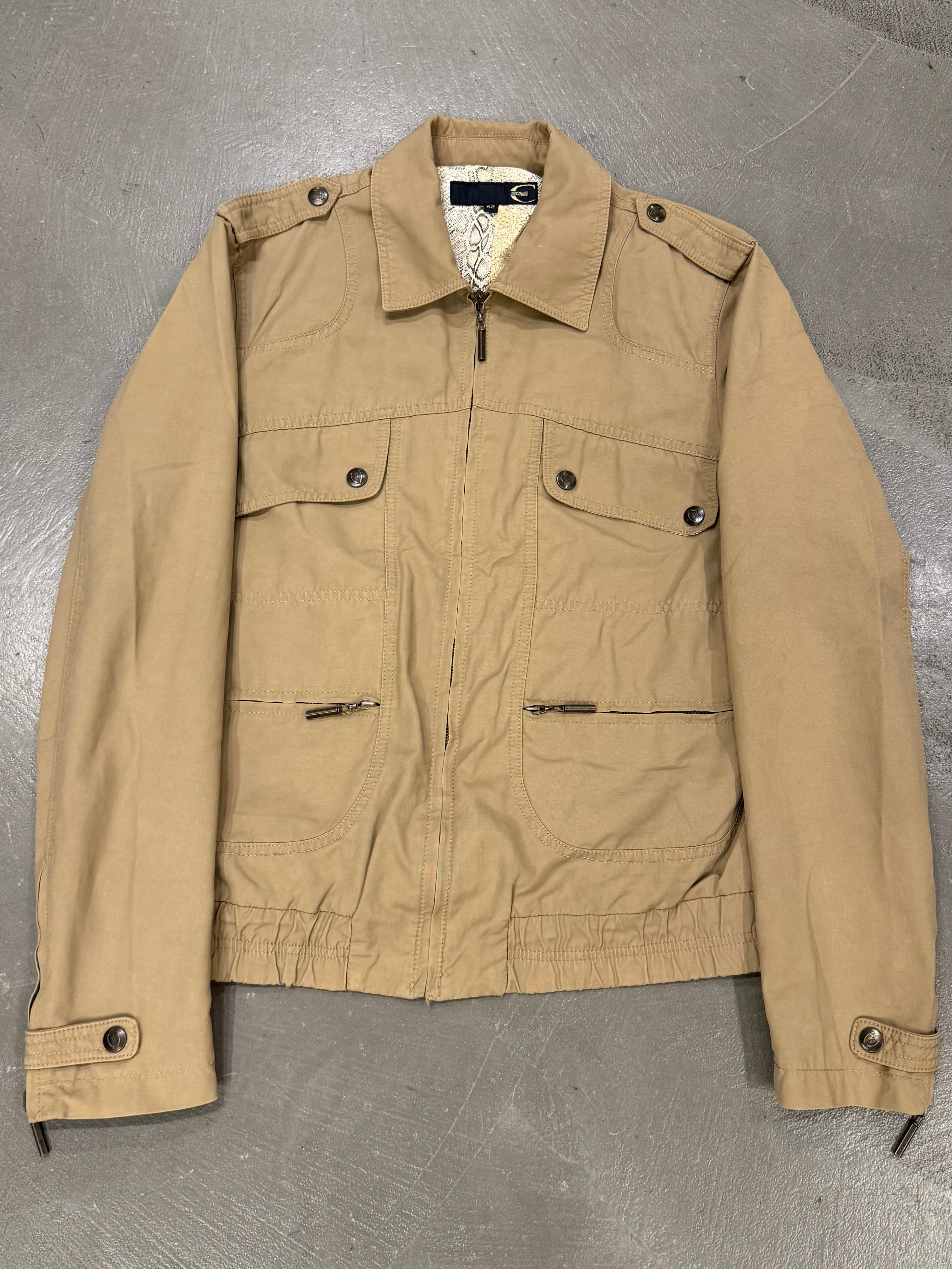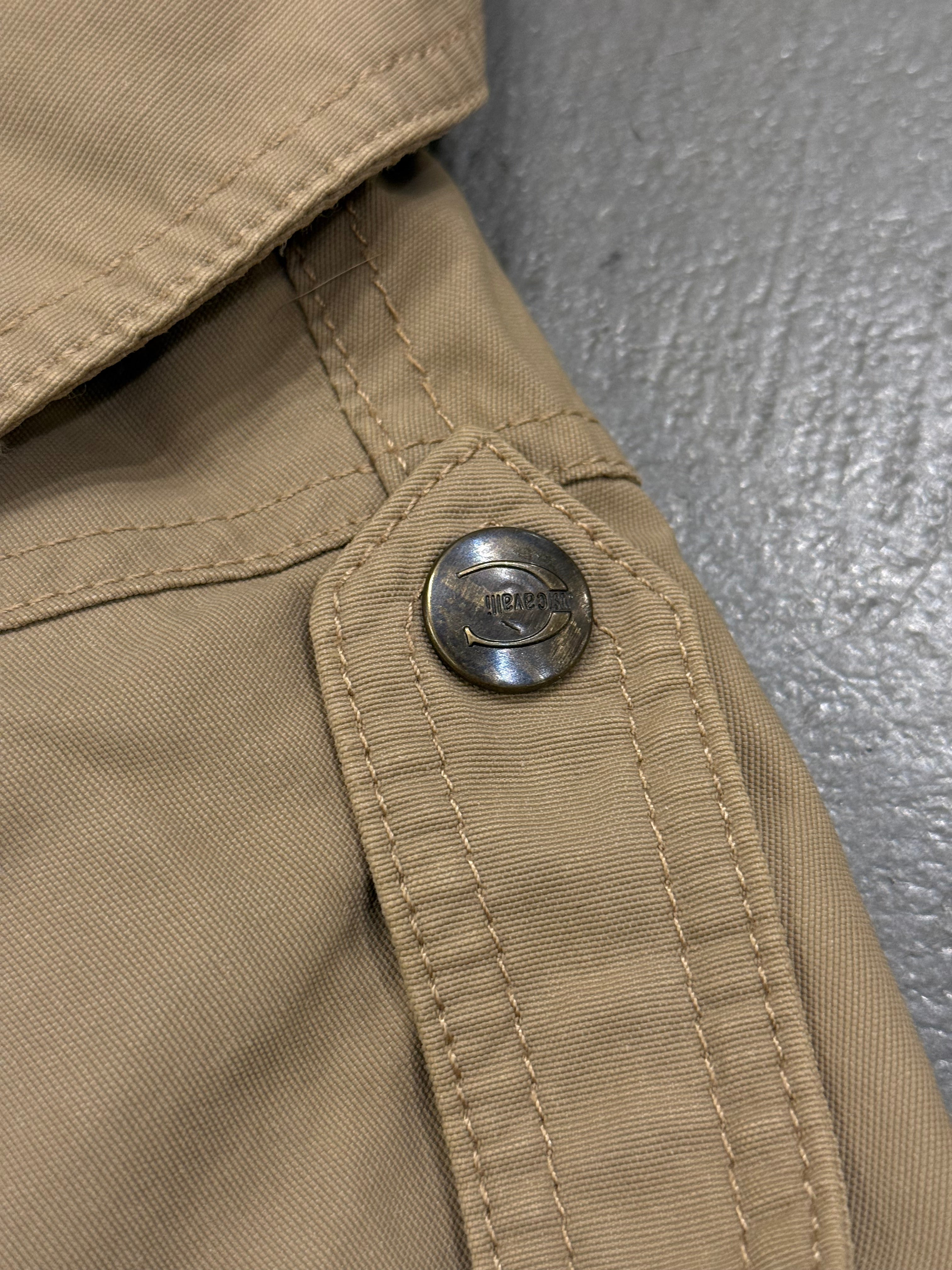 This early-2000s Cavalli military-inspired cargo jacket features the era’s signature sharp tailoring blended with utilitarian detailing. Crafted from structured cotton with flap pockets, tab cuffs and a fitted cut, it captures the bold yet clean Cavalli aesthetic of the decade.