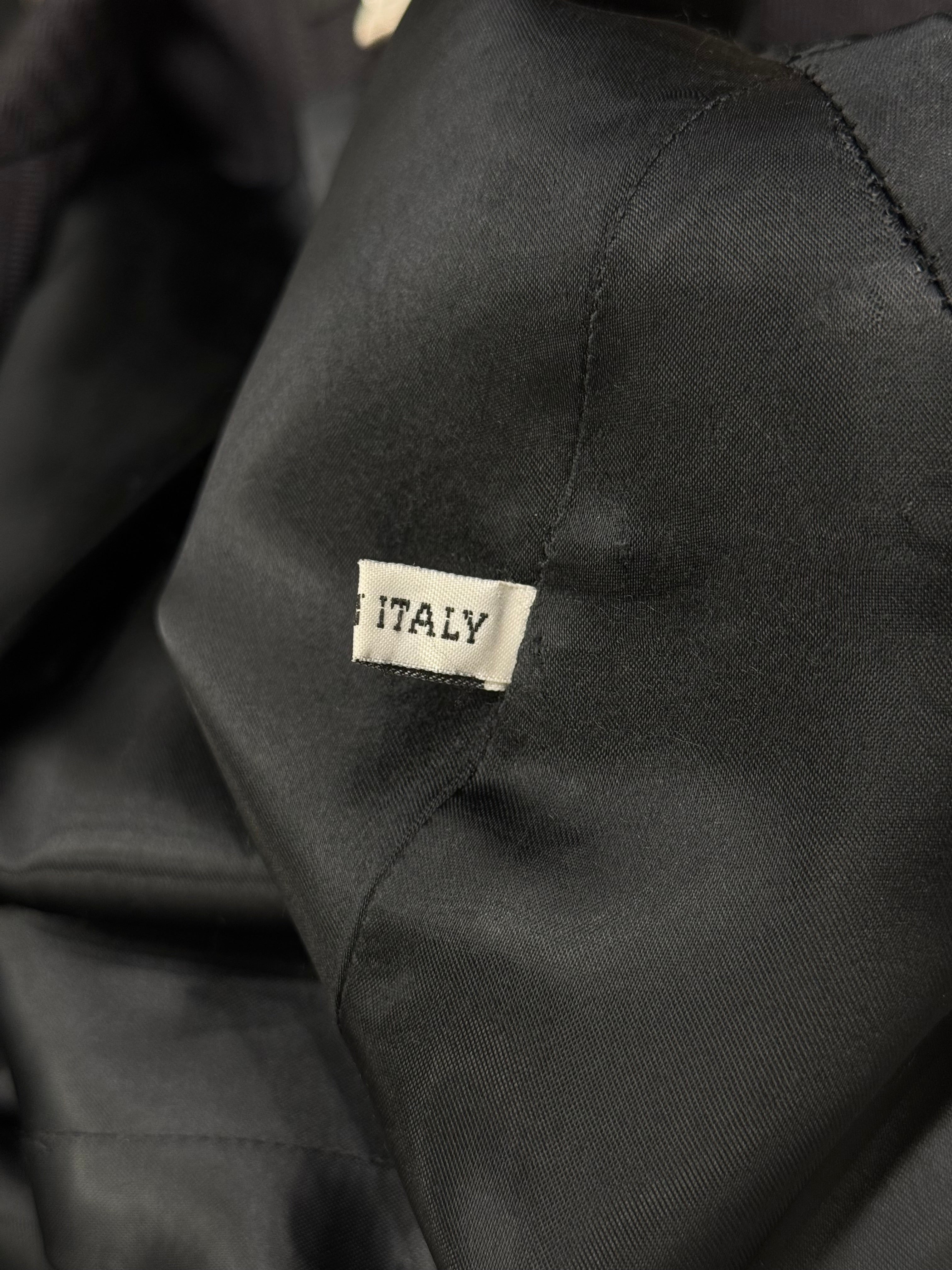 This 2000s Ann Demeulemeester blazer embodies the designer’s poetic minimalism and mastery of tailoring. Crafted from a lightweight pinstriped fabric, it features a relaxed fit, elongated lapels, and a single-button closure. The understated design exudes quiet sophistication, typical of Ann’s timeless aesthetic.