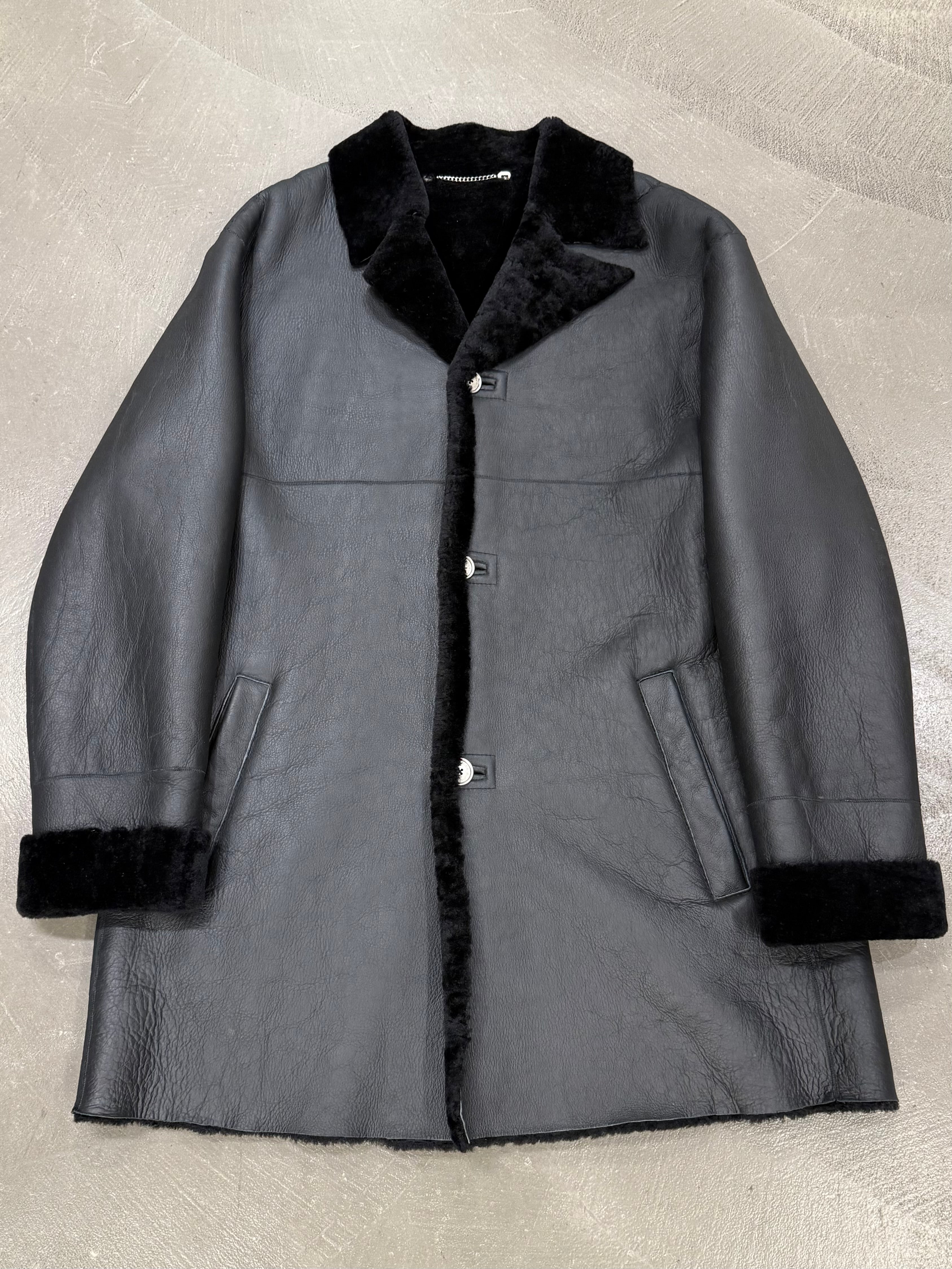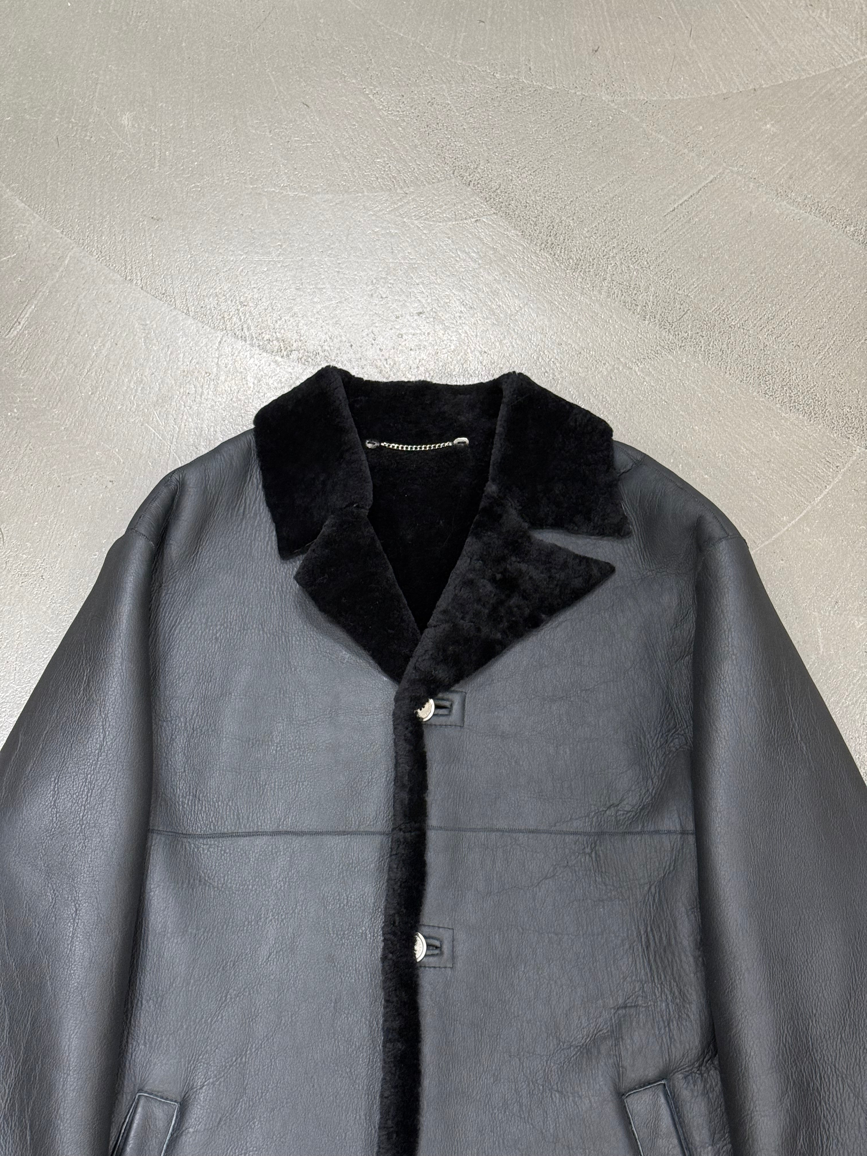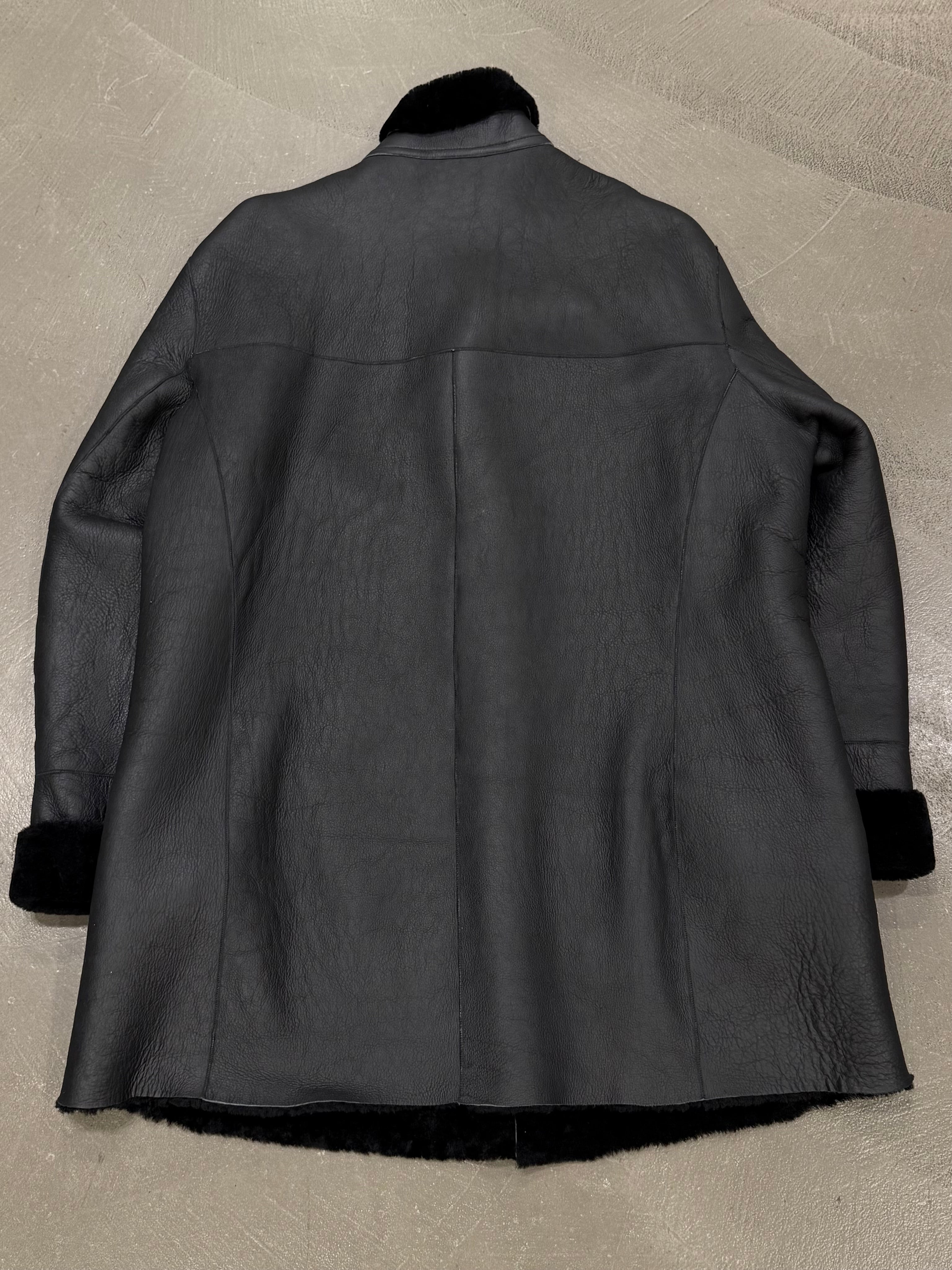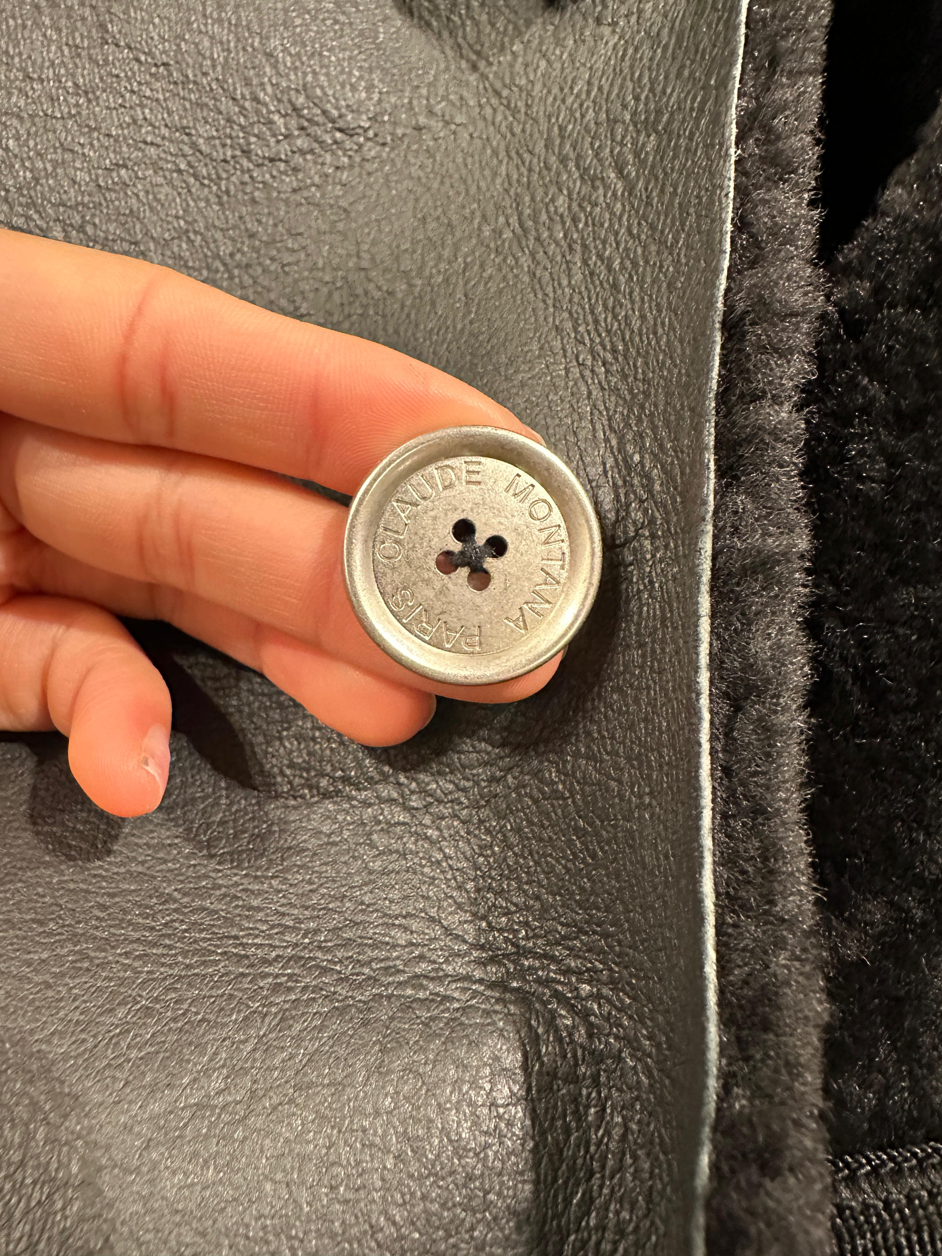 1980s Claude Montana black shearling leather coat