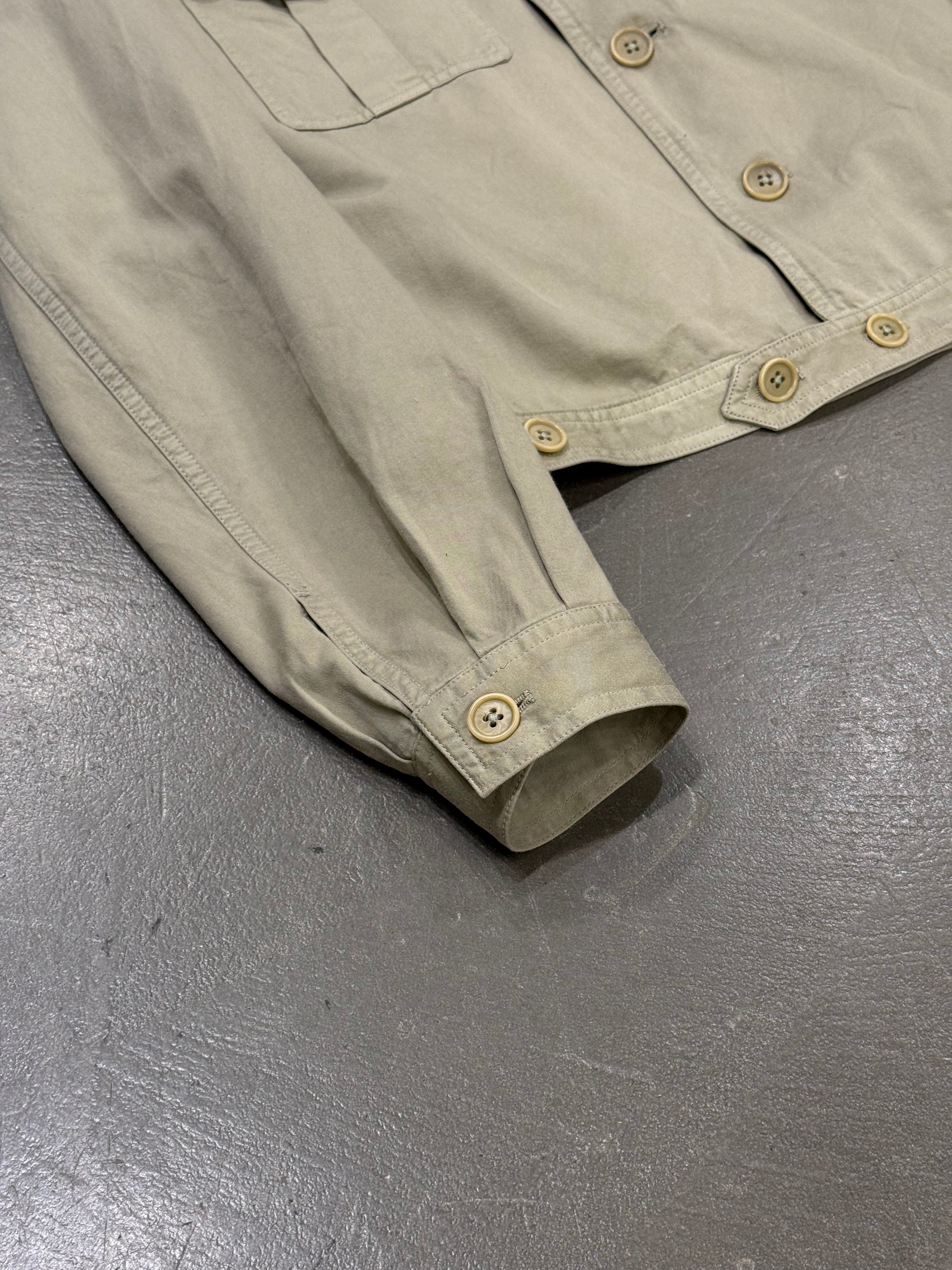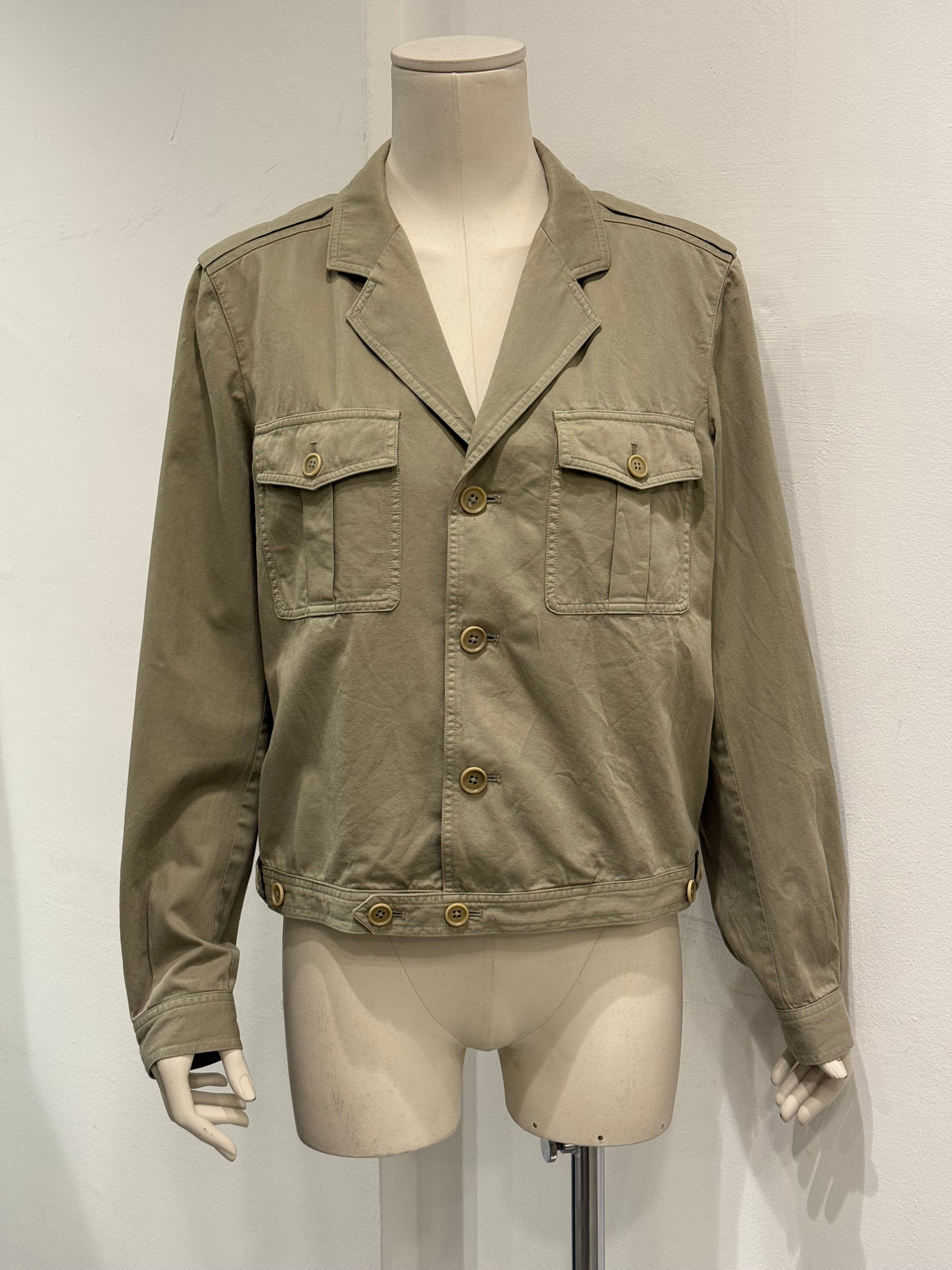 This early-2000s Dries Van Noten cropped military jacket showcases the designer’s refined take on utilitarian codes. Crafted in cotton, it features a structured yet relaxed silhouette with classic military pockets and a shortened cut that sharpens proportions. A versatile archival piece balancing function and understated elegance, offered new with original tags.