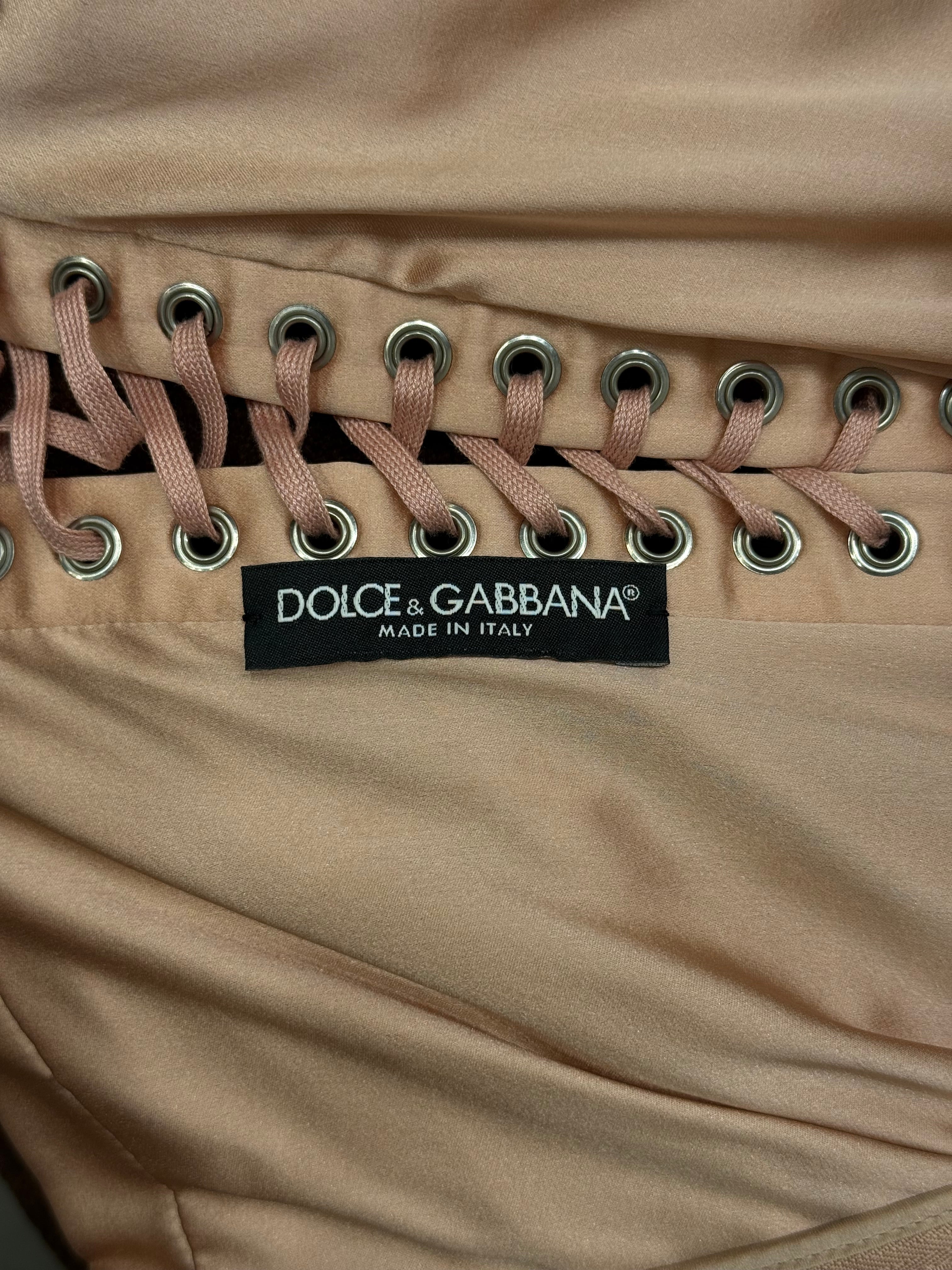 S/S 2003 Dolce & Gabbana lace-up bondage ruched silk midi dress