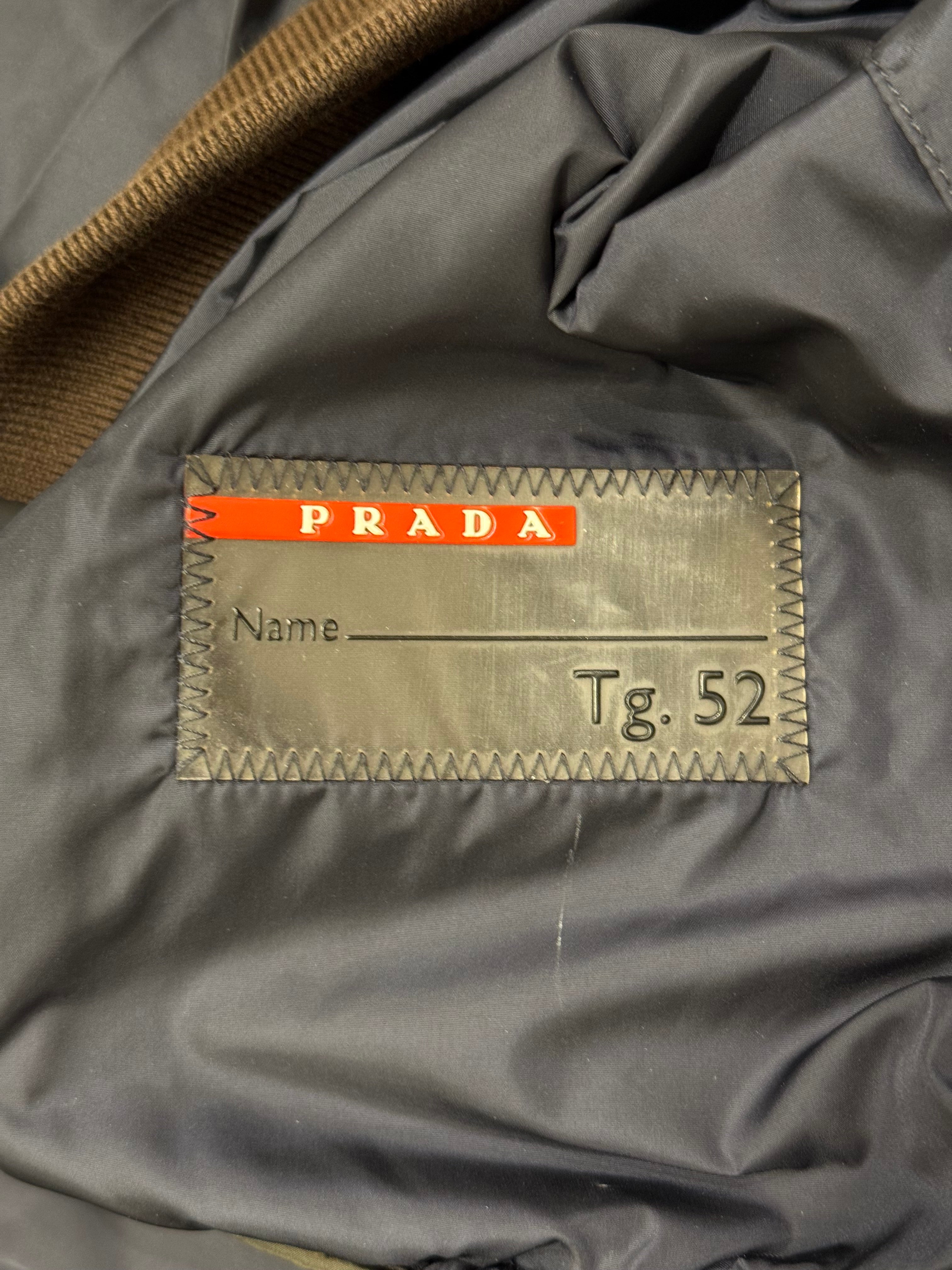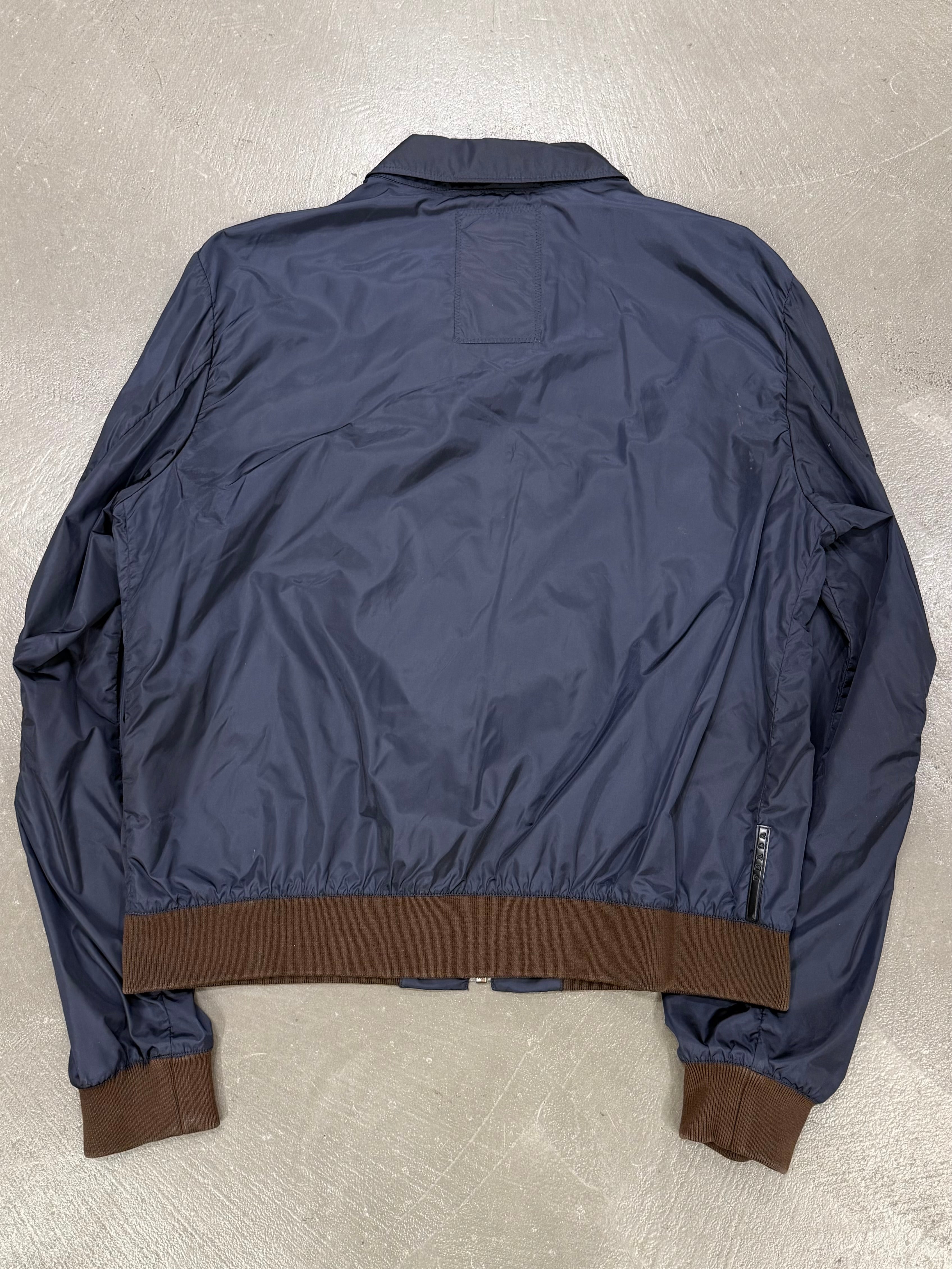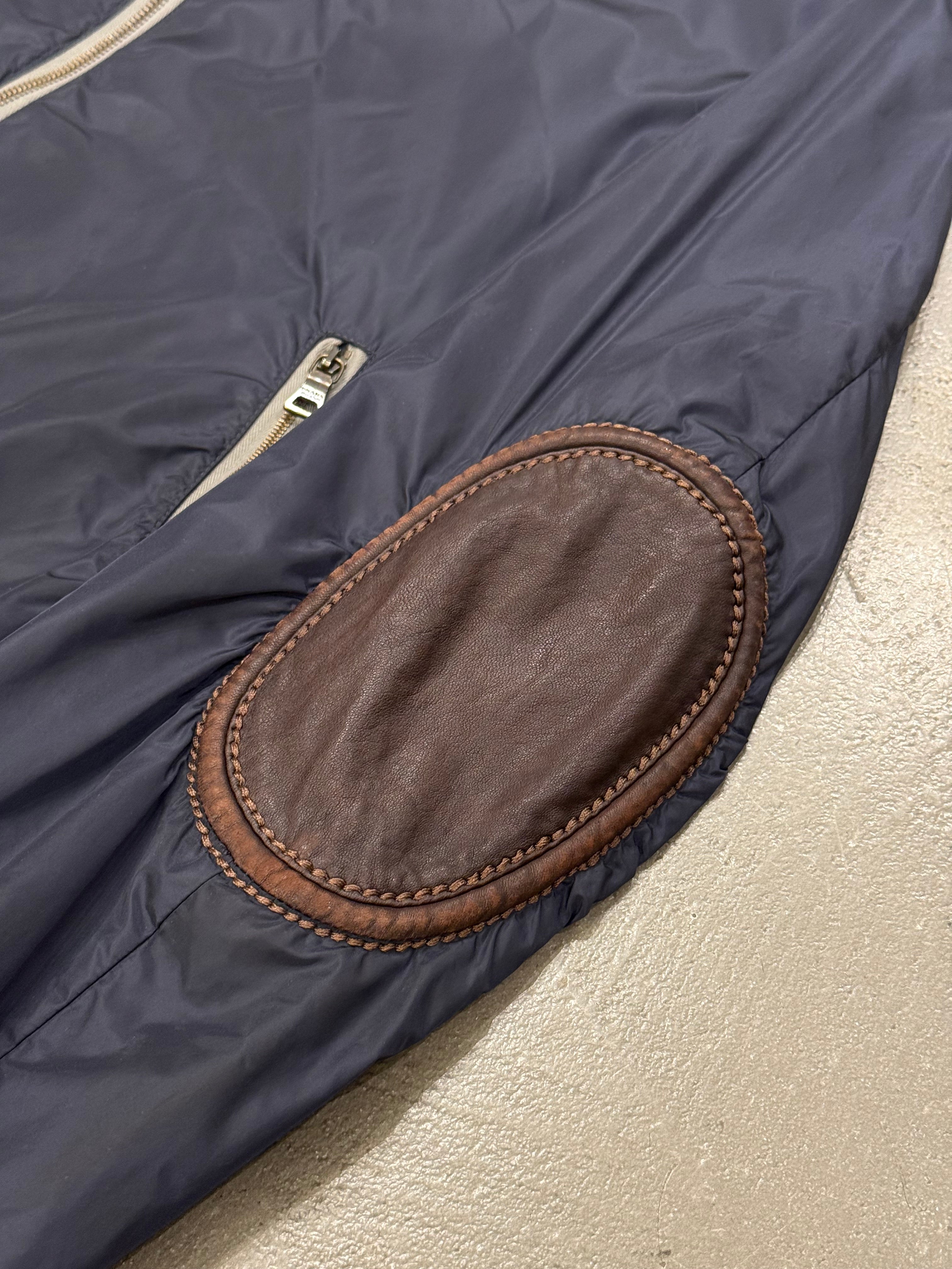 2000s Prada bomber nylon jacket with contrast elbow leather patch detailing