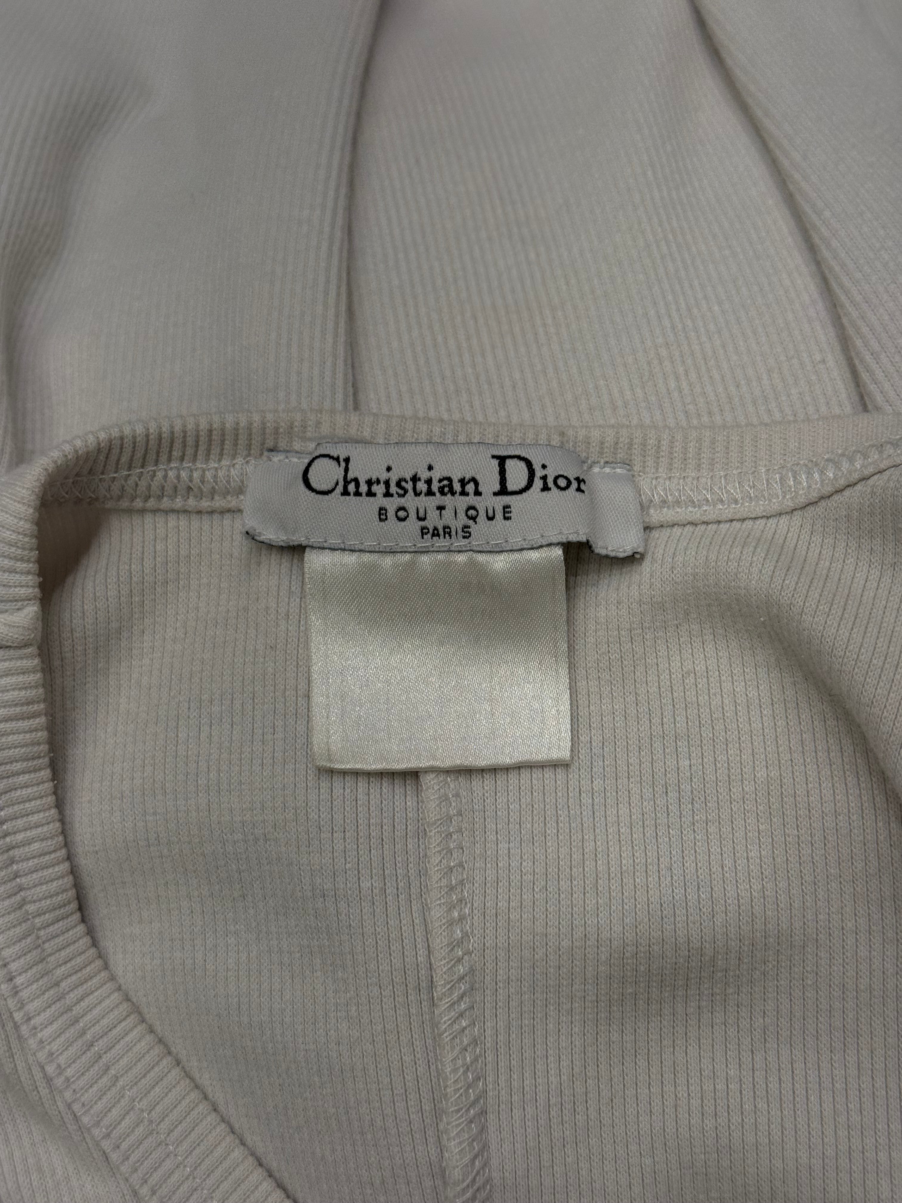 This 2005 Dior by Galliani tank top is an iconic piece featuring the celebrated “J’adore Dior” motif embellished with Swarovski crystals. A true symbol of mid-2000s pop culture, it perfectly captures Galliani’s glamorous and unapologetically bold vision for the house.