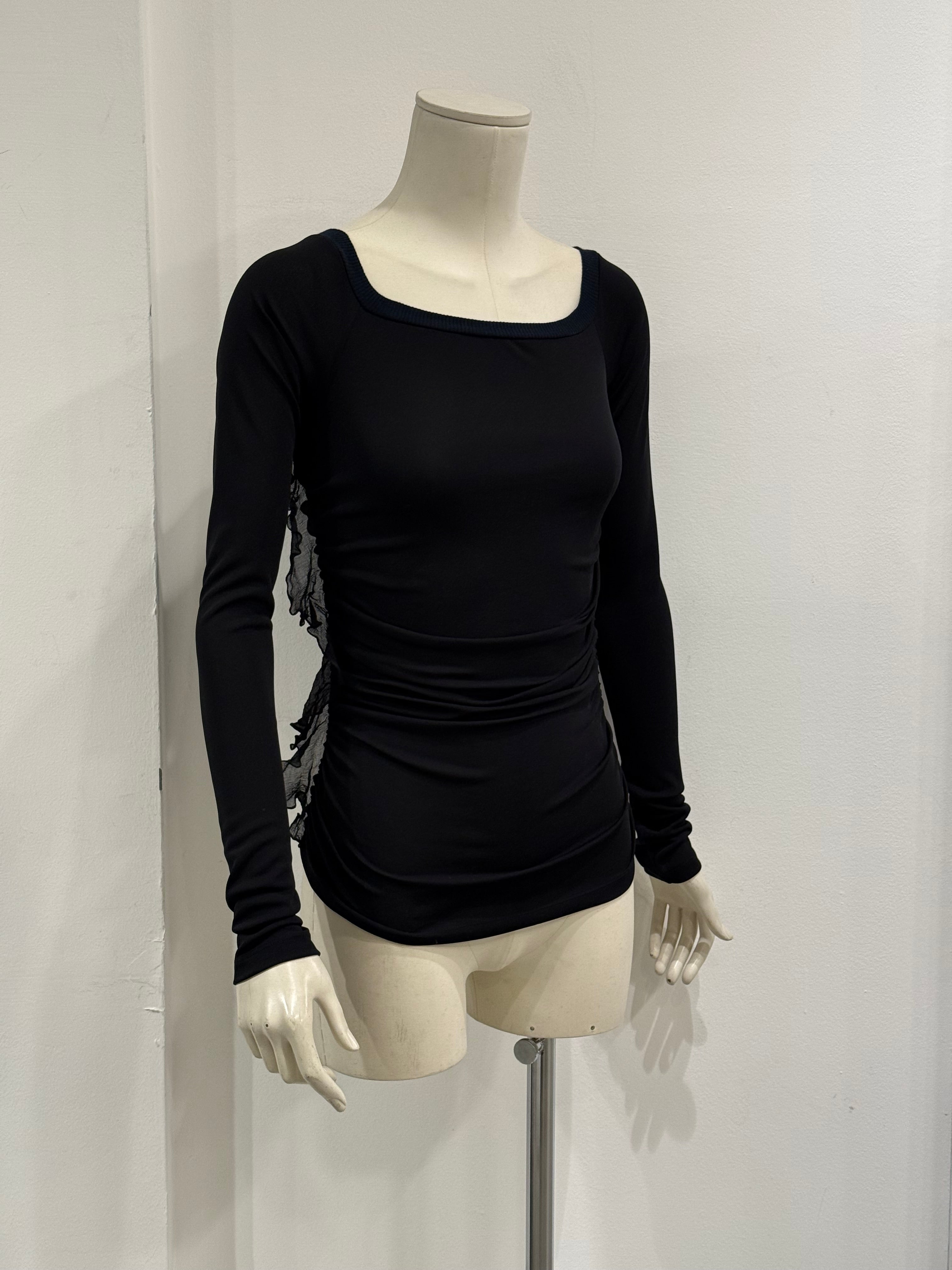 This 2003 Dolce & Gabbana top features soft ruching and a sculpted silhouette, creating a fitted, feminine shape emblematic of the brand’s early-2000s aesthetic. Elegant yet sensual, it’s a versatile archival piece with refined detailing.