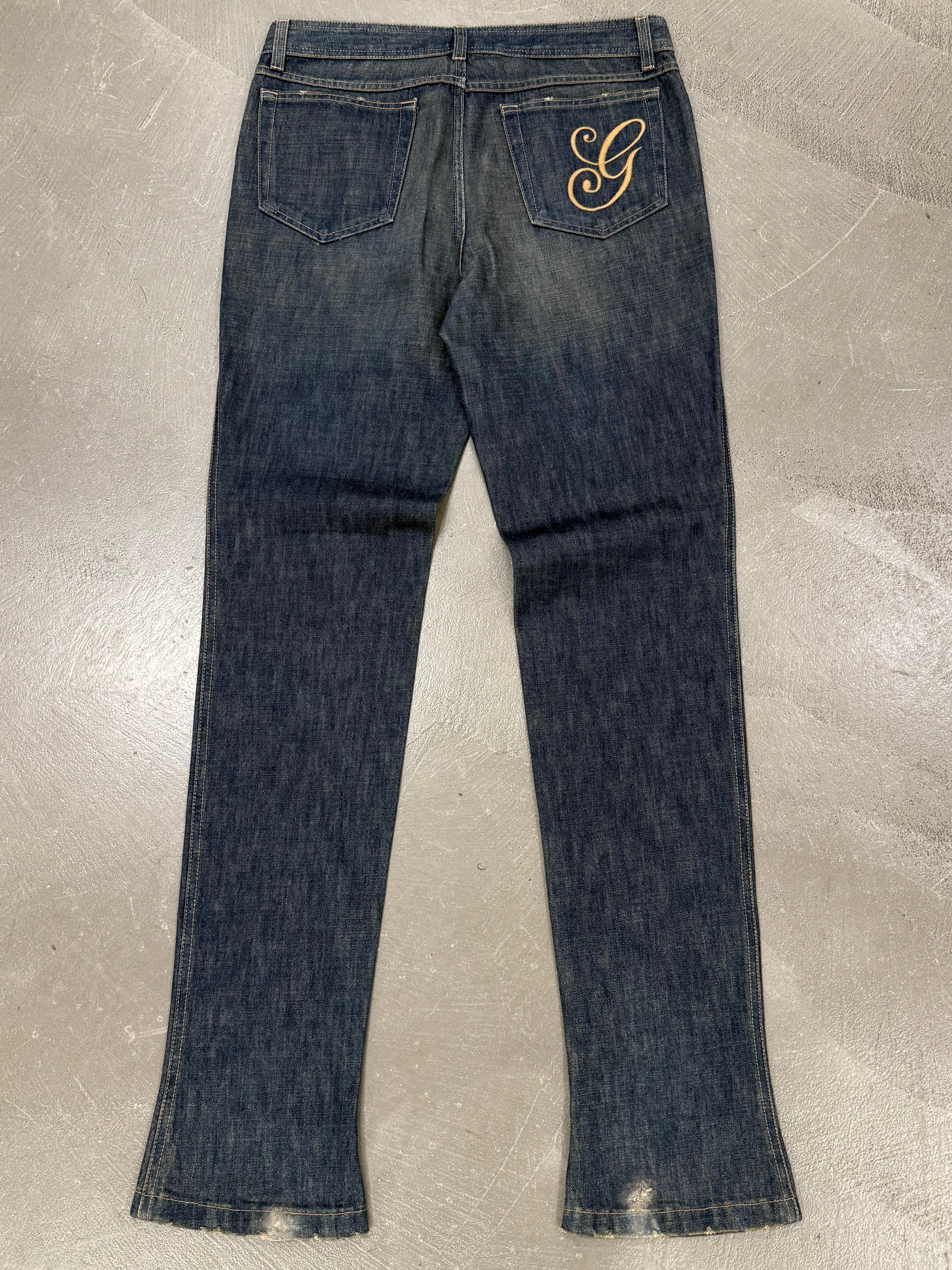 These 2000s Gucci jeans from the Tom Ford era feature subtle embroidered logo detailing and a classic straight-leg cut. A refined denim piece that balances everyday wearability with unmistakable archival appeal.
