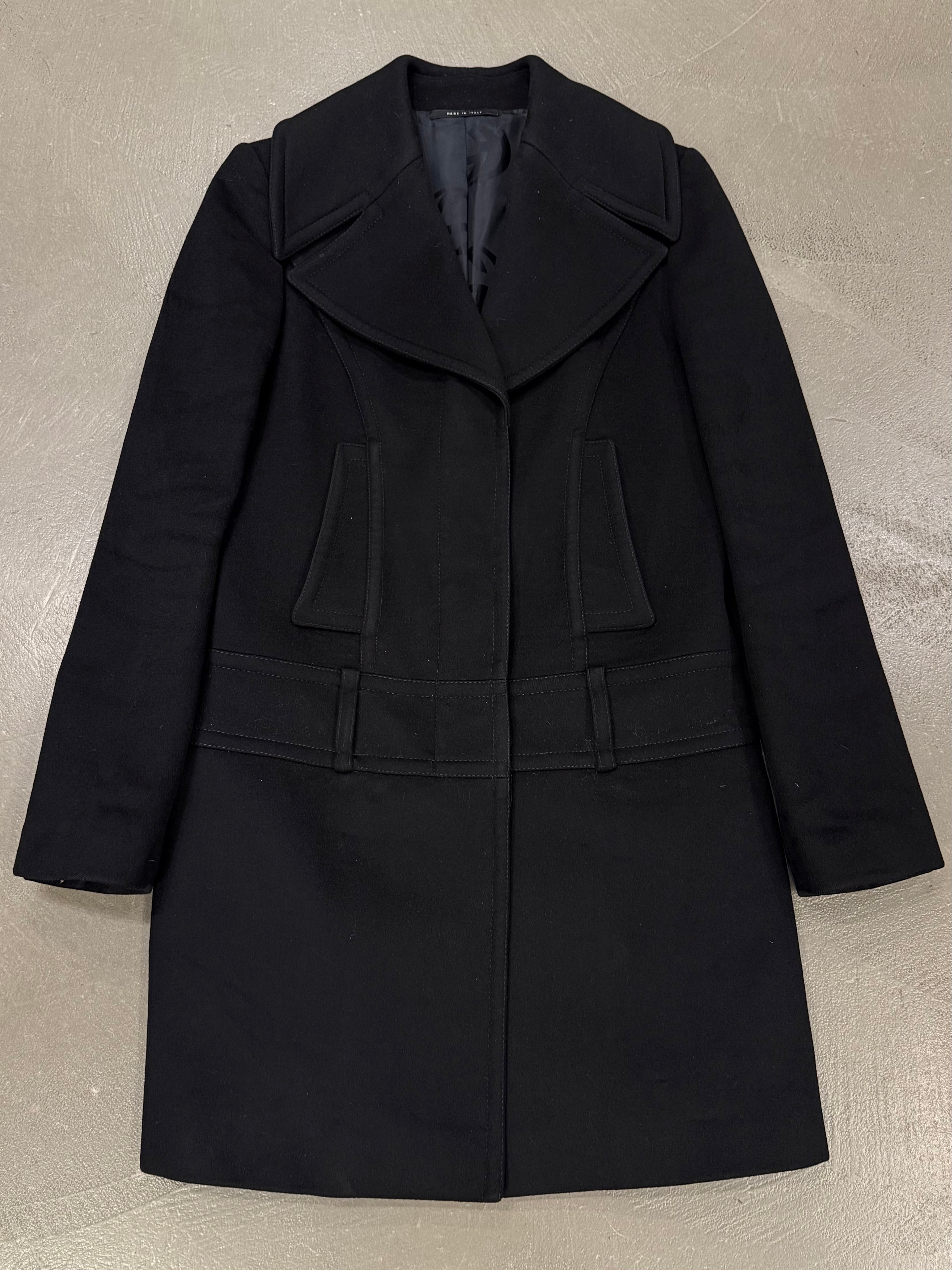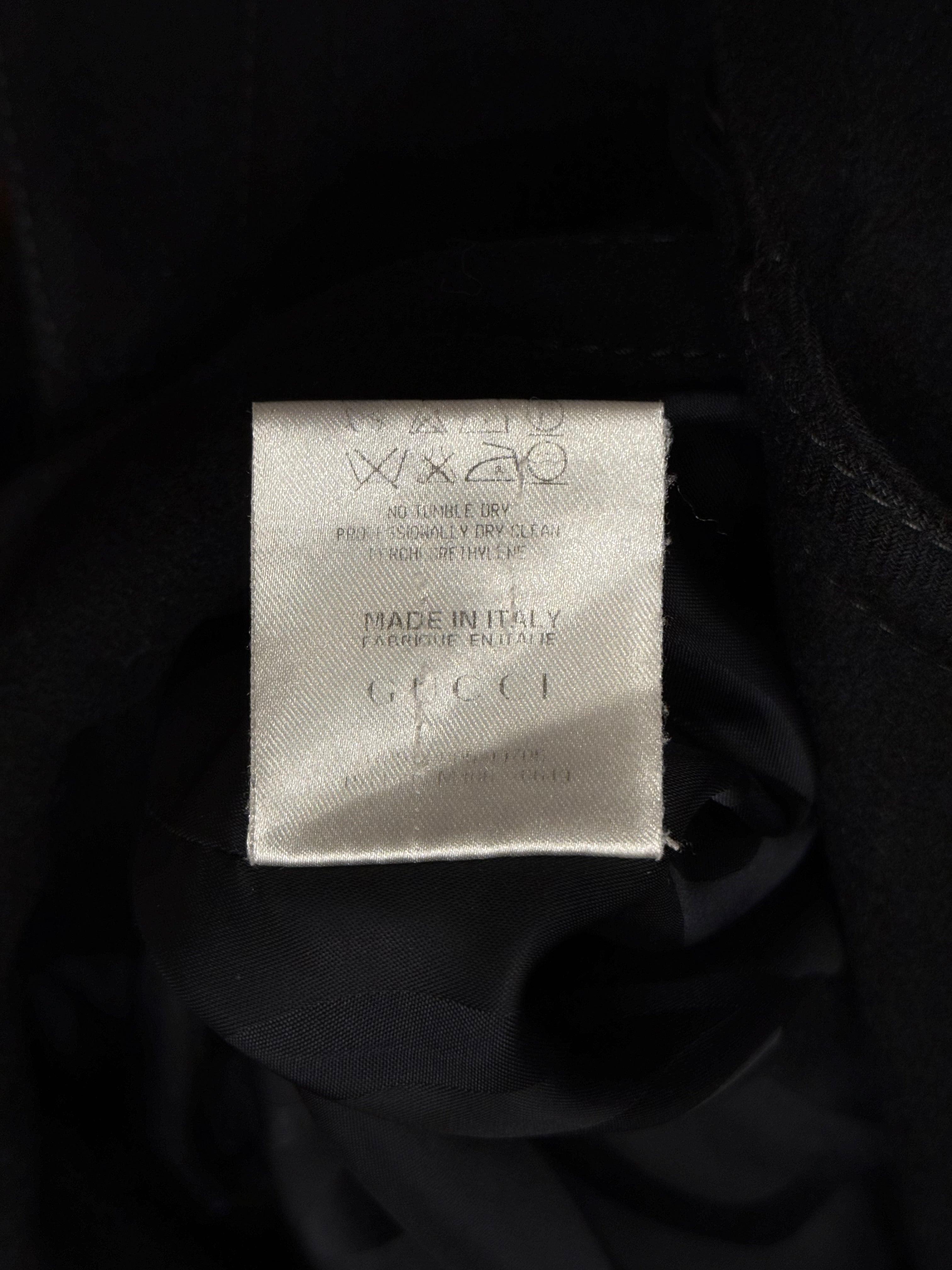 This A/W 2005 Gucci coat is crafted from dense, structured wool, giving it a sculptural silhouette with strong tailoring lines. The elongated cut, wide lapels, and panel detailing reflect mid-2000s Gucci’s refined yet powerful aesthetic.