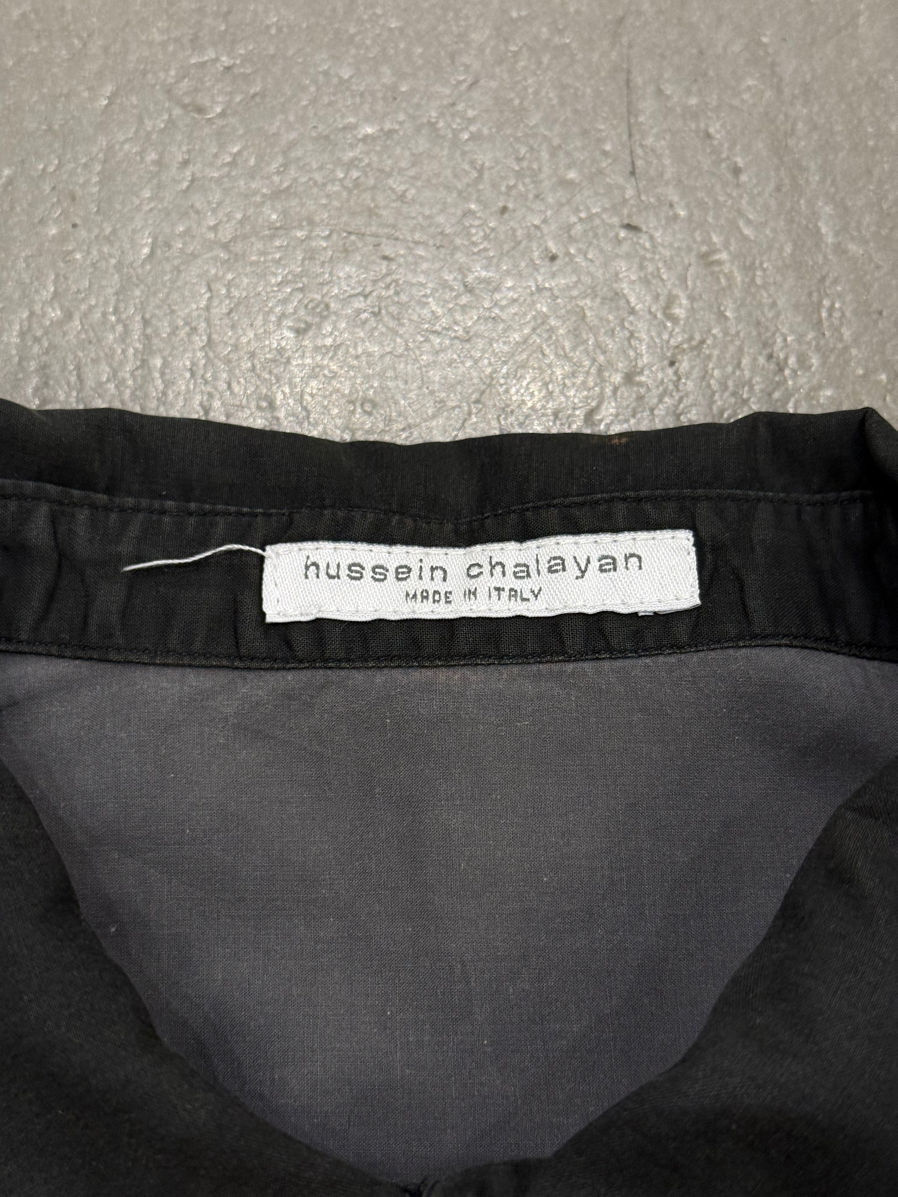 This Hussein Chalayan shirt from the 2000s showcases the designer’s avant-garde approach to tailoring and conceptual fashion. Constructed in a hybrid design, it features layered panels, asymmetric detailing, and drawstring adjustments at the waist. The contrasting grey and black tones enhance its sculptural silhouette, reflecting Chalayan’s experimental exploration of form and function.