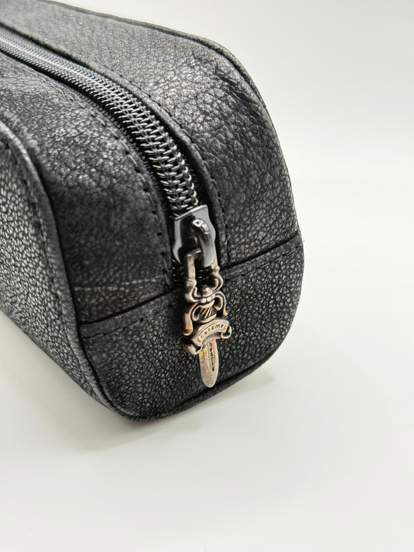 These Chrome Hearts sunglasses are a striking example of the brand’s fusion of irreverence and luxury. Crafted from translucent olive acetate, the frame is accentuated by ornate sterling silver dagger and cross detailing at the temples, embodying the label’s gothic-meets-rock aesthetic. With their bold silhouette and meticulous craftsmanship, this pair stands as both a functional accessory and a statement collectible within the Chrome Hearts eyewear universe.