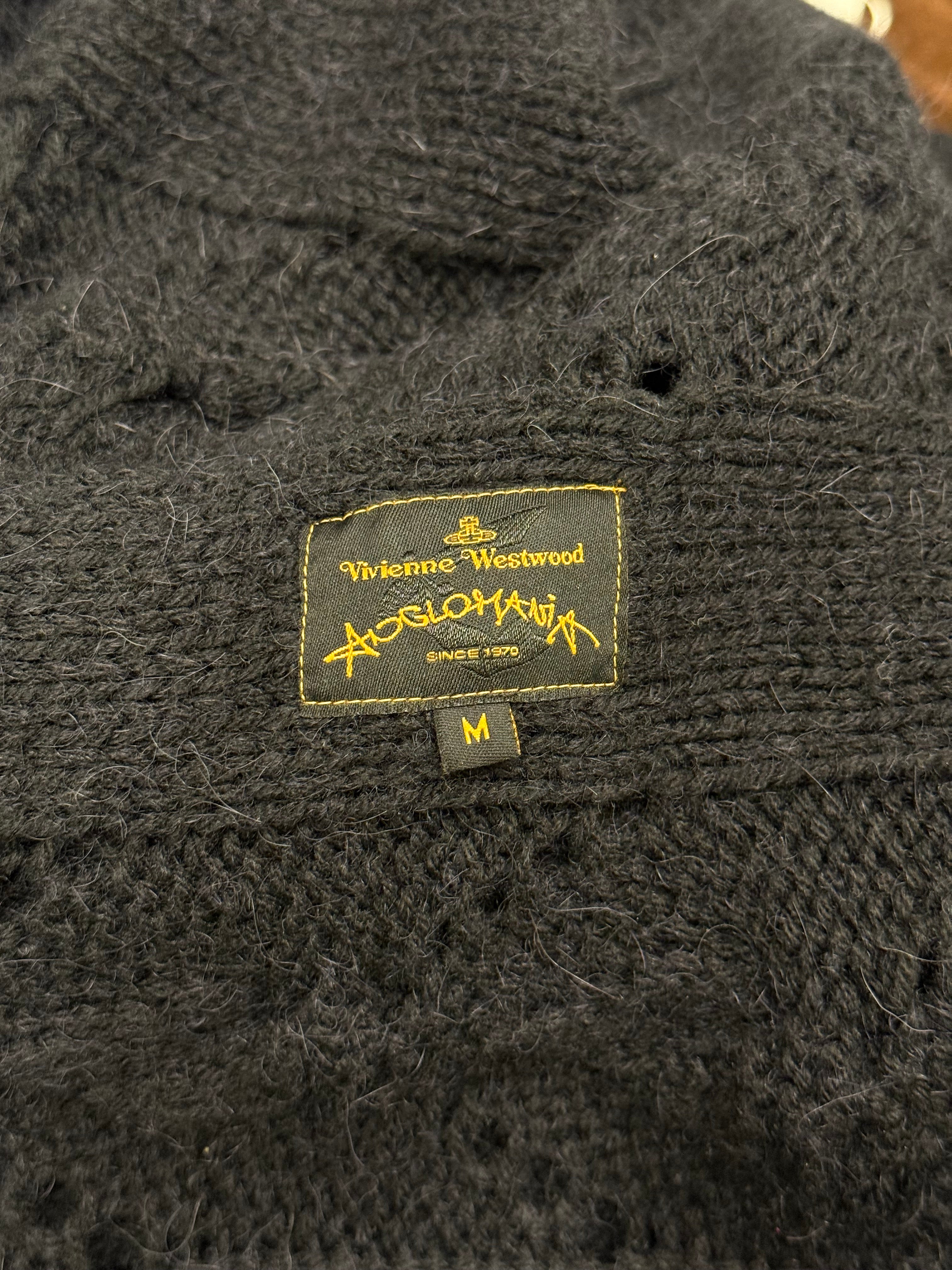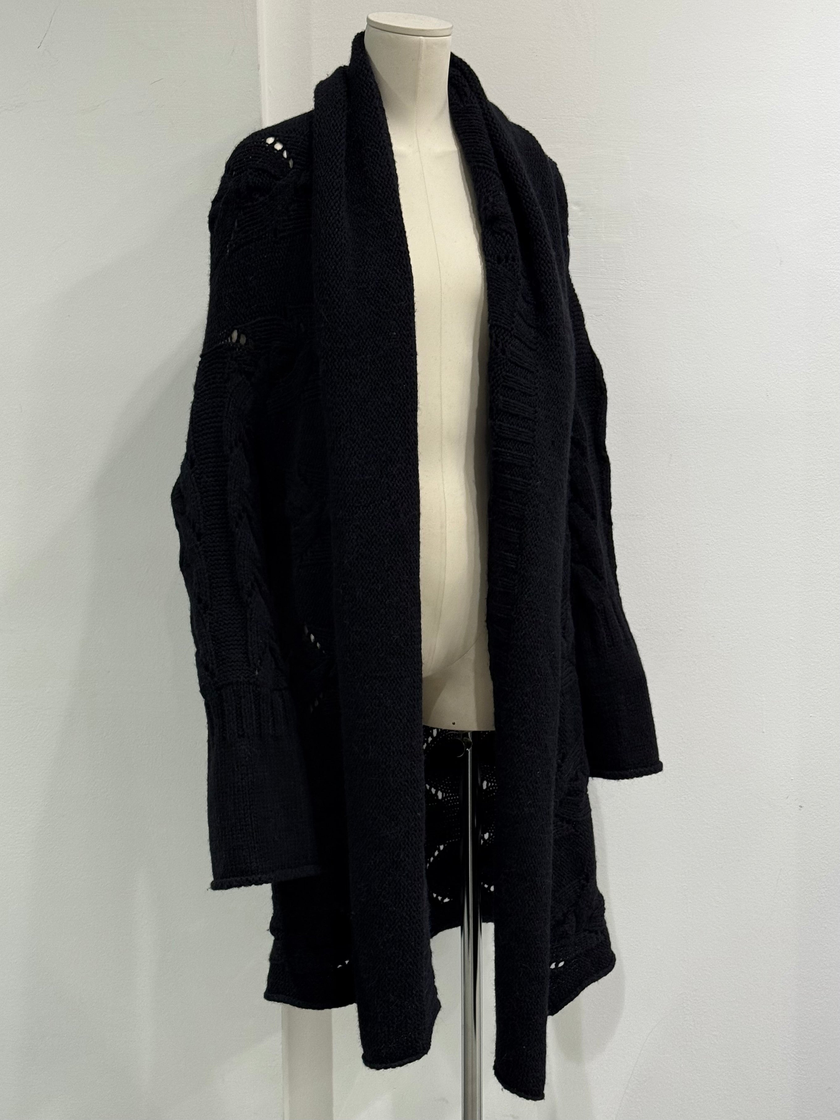 Oversized knitted cardigan from the 2000s by Vivienne Westwood. Features a dramatic draped silhouette with exaggerated proportions and textured knit detailing. A striking piece that captures Westwood’s fusion of romanticism and rebellion.