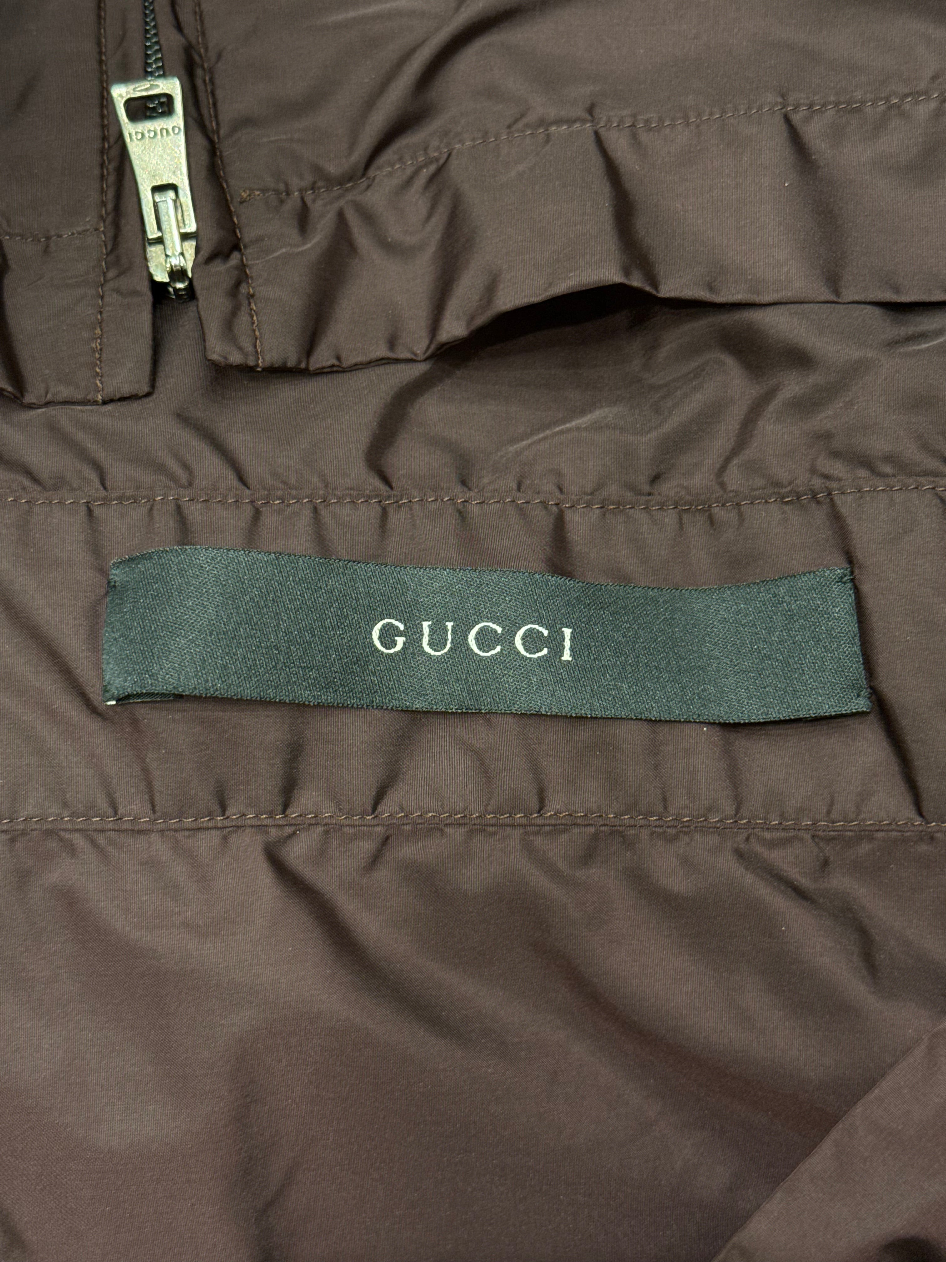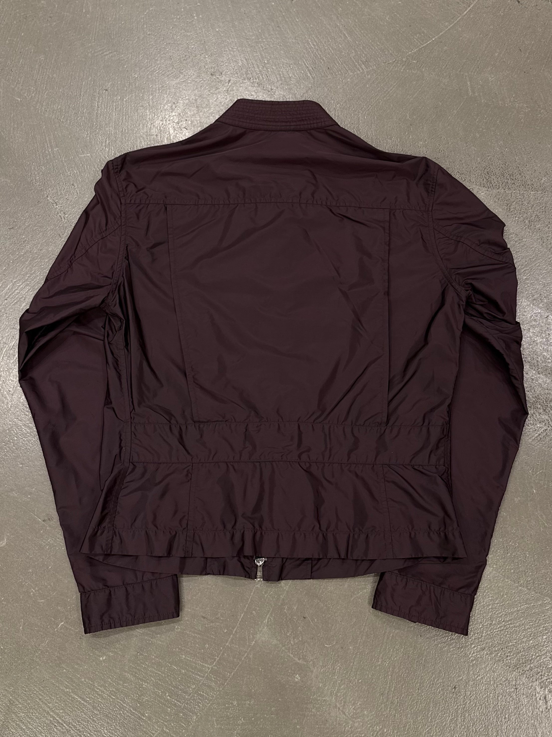 This lightweight jacket from the Tom Ford era at Gucci features a refined plum tone and clean, fitted silhouette. Minimal detailing and precise tailoring reflect Ford’s sensual yet understated aesthetic from the late 1990s to early 2000s.