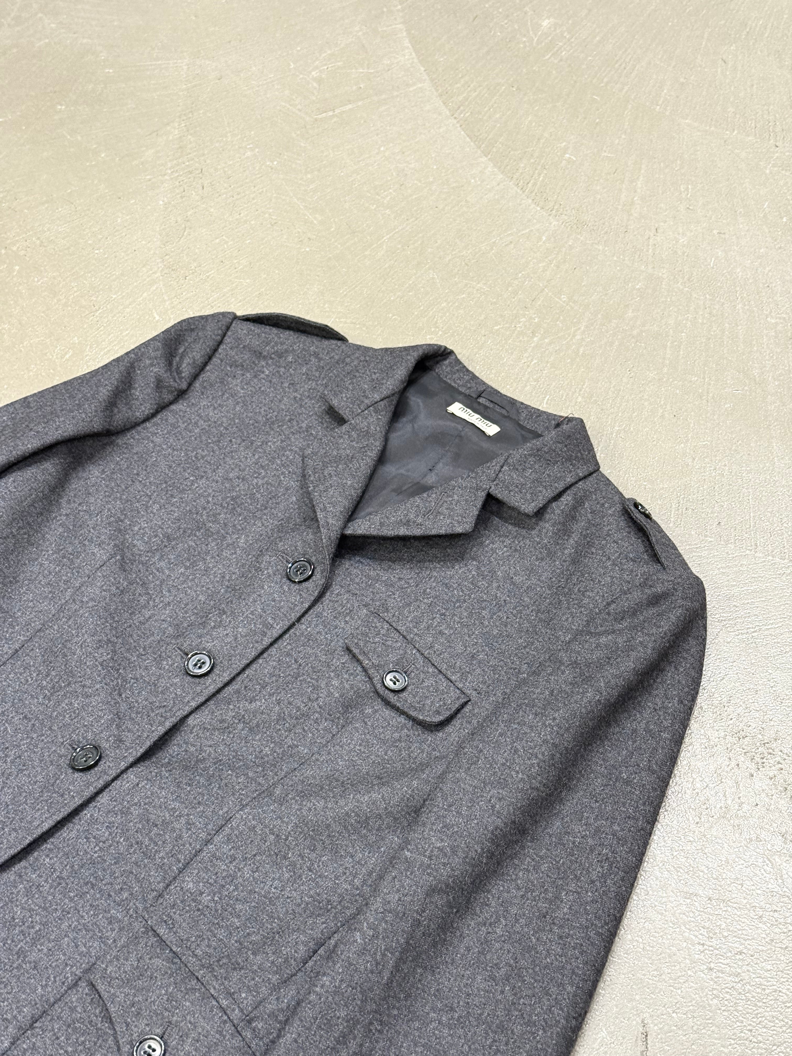 Tailored cropped blazer from the 2000s by Miu Miu. Constructed in fine wool with a fitted shape, short length, and single-breasted closure. Features notched lapels and a minimalist silhouette typical of early-2000s Miuccia Prada design.