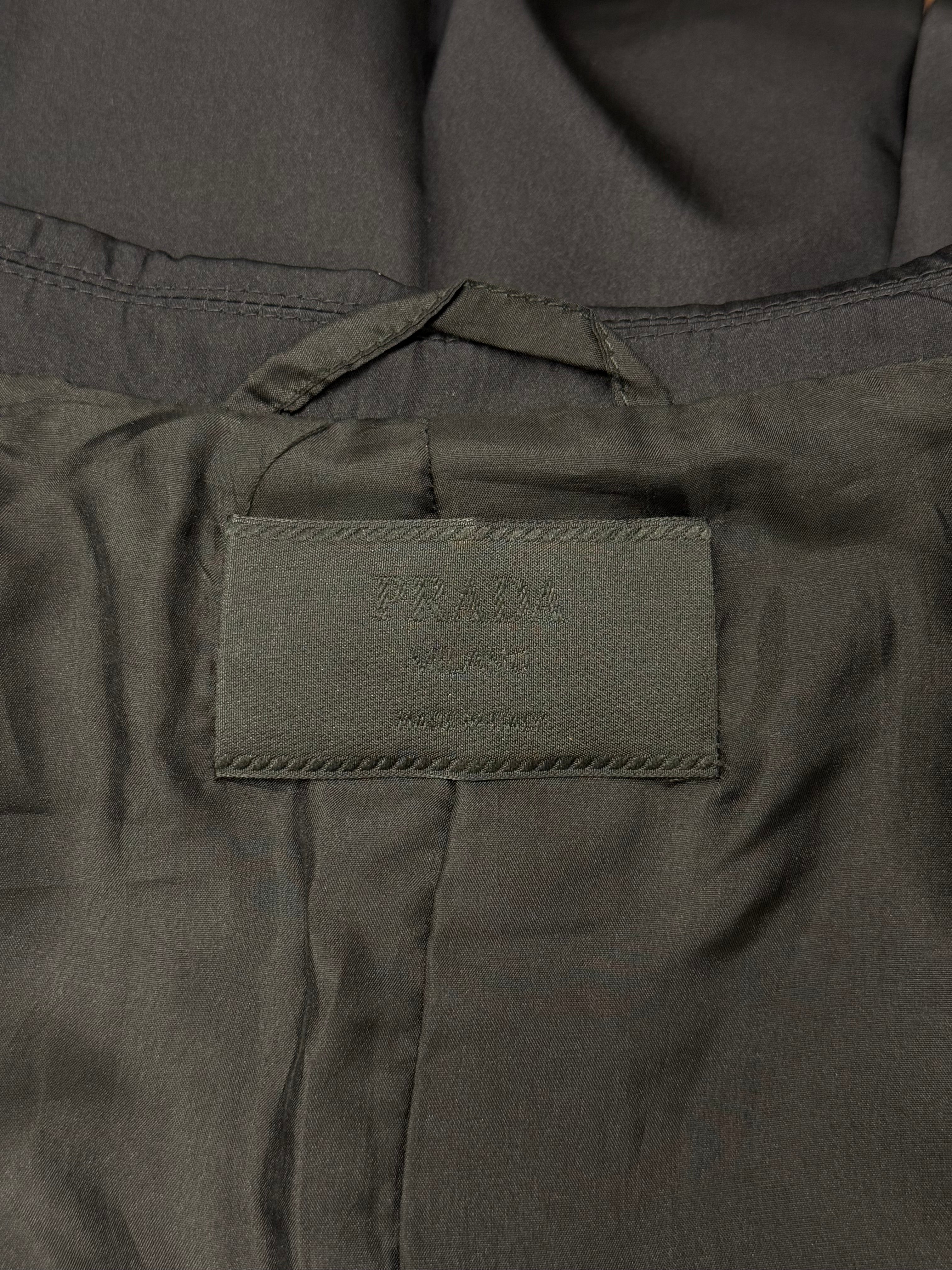 This early-2000s Prada blazer reinterprets tailoring through the brand’s signature technical nylon. Lightweight, sharp and minimal, it reflects Prada’s innovative approach to hybrid garments during the decade, balancing elegance with utility.