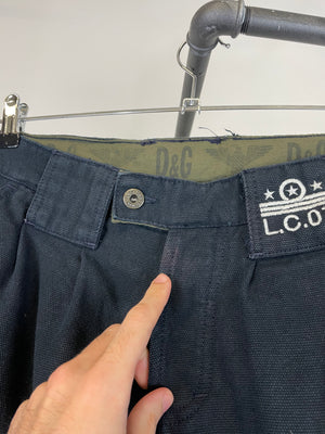 AW 2006 Dolce & Gabbana sailing navy cargo pants, beautiful vintage pair with 10 pockets in total, relaxed/ baggy fit on body and flared at the bottom when the zip is open. Adjustable leg opening, big tactical different cargo pockets, with zipper and strap opening.