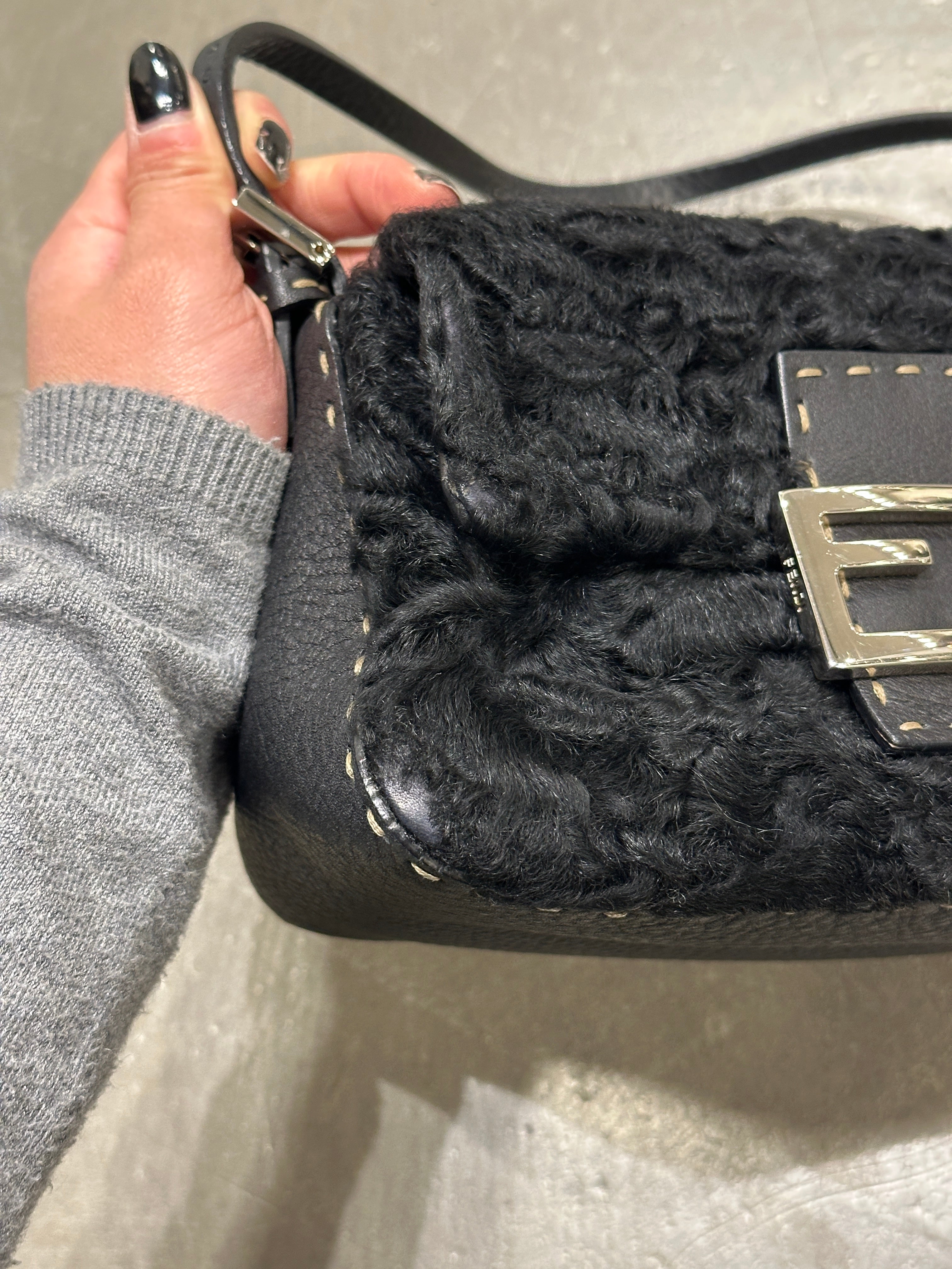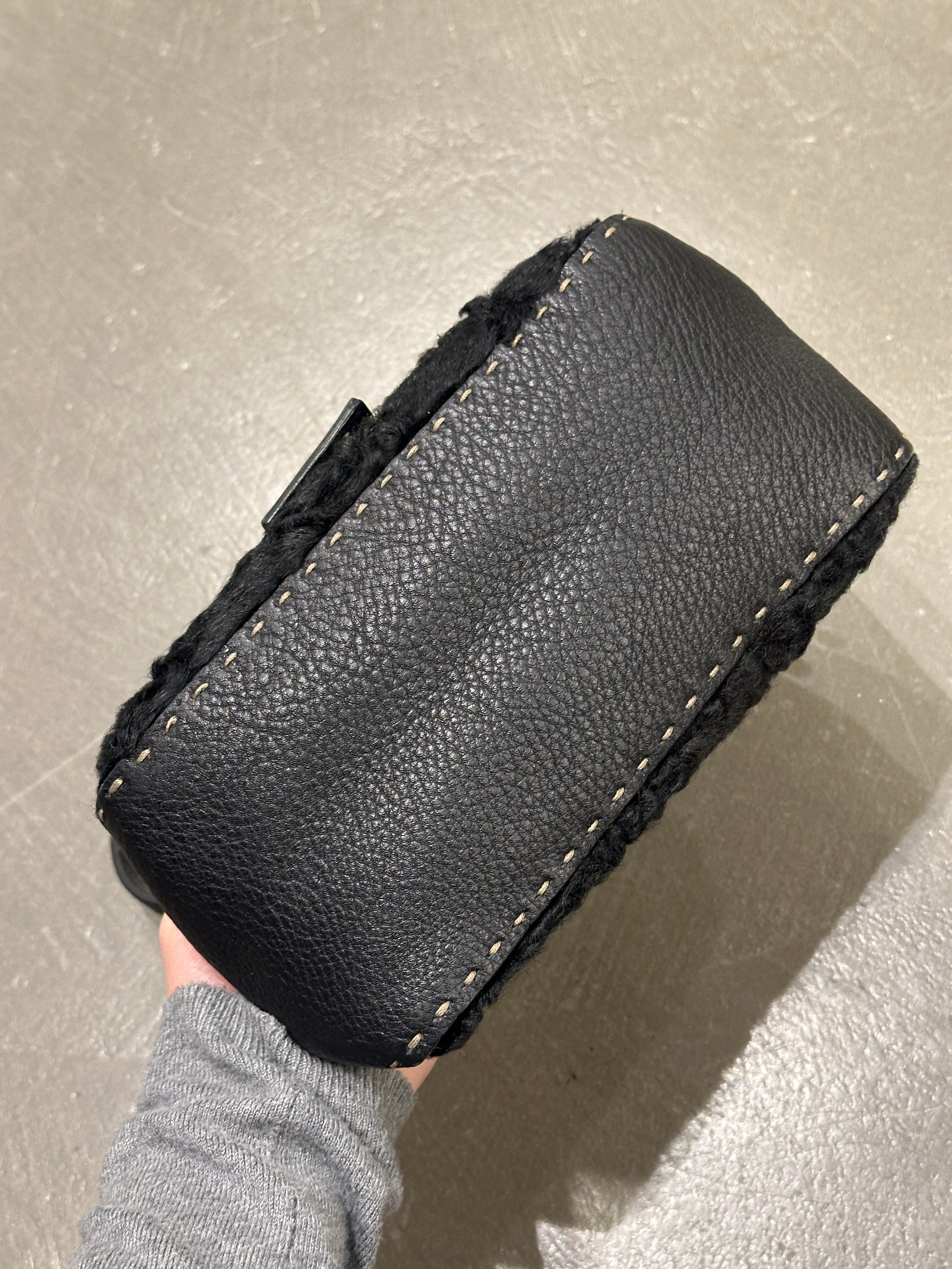This 2008 Fendi Mama Baguette from the Selleria line is a rare and luxurious variation of the house’s most iconic silhouette. Crafted in a rich, textured shearling with contrast leather trims, it features the distinctive oversized FF buckle and hand-stitched detailing characteristic of the Selleria tradition. Compact yet structured, it balances softness and craftsmanship in a way that perfectly captures late-2000s Fendi.