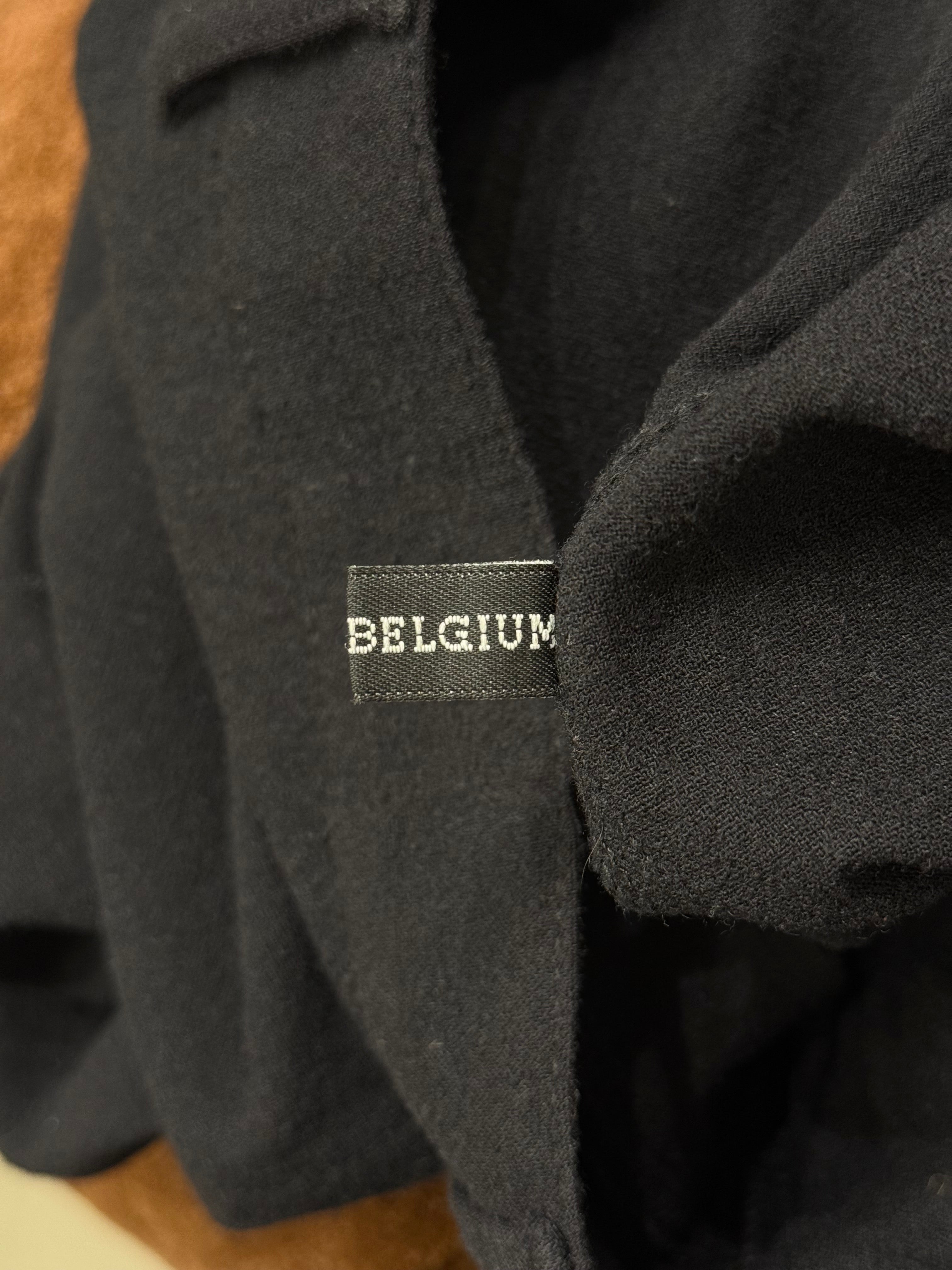 These early 2000s Ann Demeulemeester pants feature a sharply tailored silhouette with an elongated leg that reflects the designer’s signature approach to dark elegance and proportion. Crafted from a stretch fabric for comfort, they combine precision tailoring with a fluid, architectural line. A refined archival piece with a strong, understated presence.