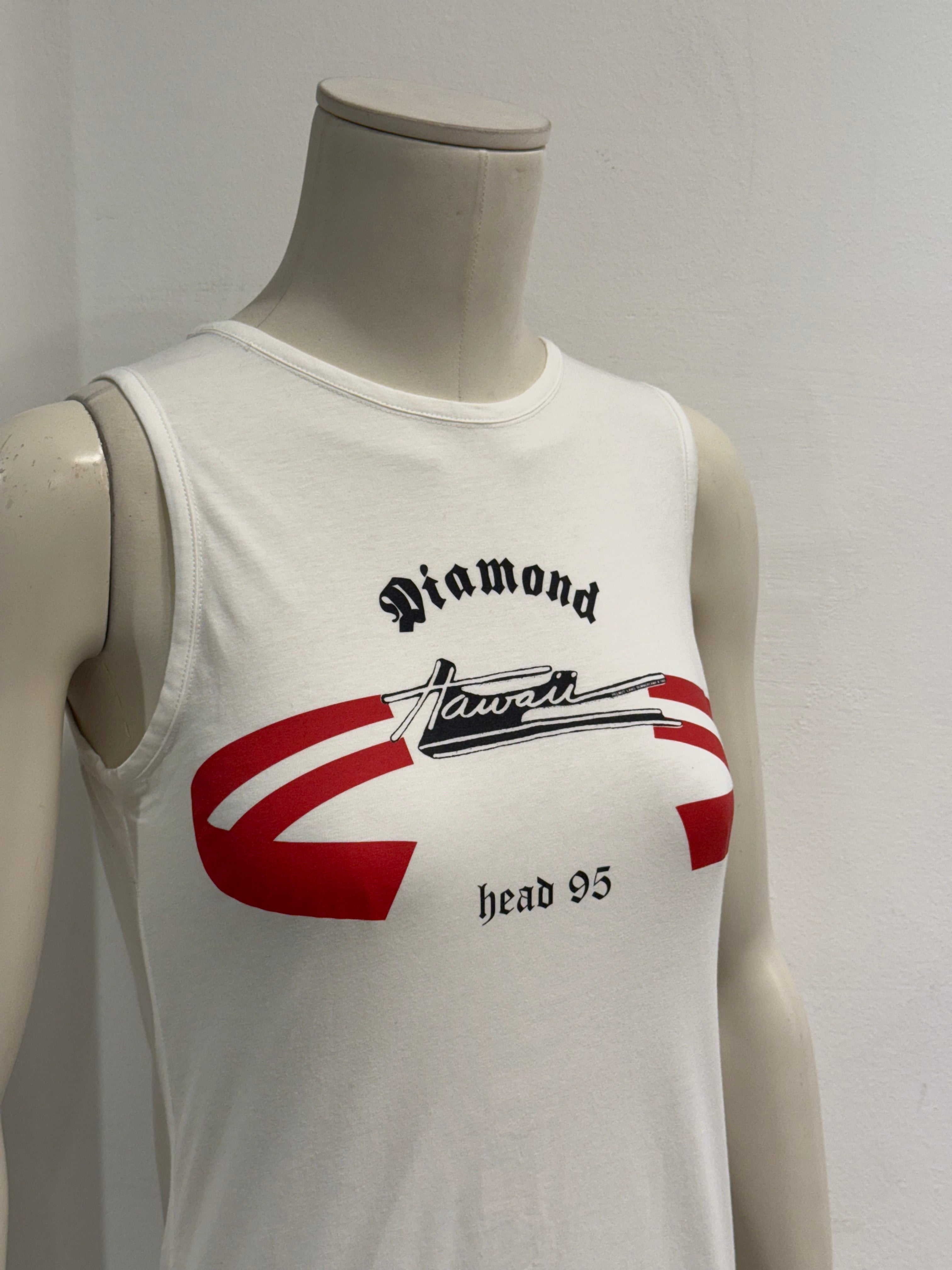 This sleeveless cotton dress from Helmut Lang’s Spring/Summer 1995 re-edition captures the designer’s radical minimalism and utilitarian sensibility. Defined by a clean, elongated silhouette and graphic detailing, it represents an iconic moment in 1990s fashion with enduring contemporary appeal.