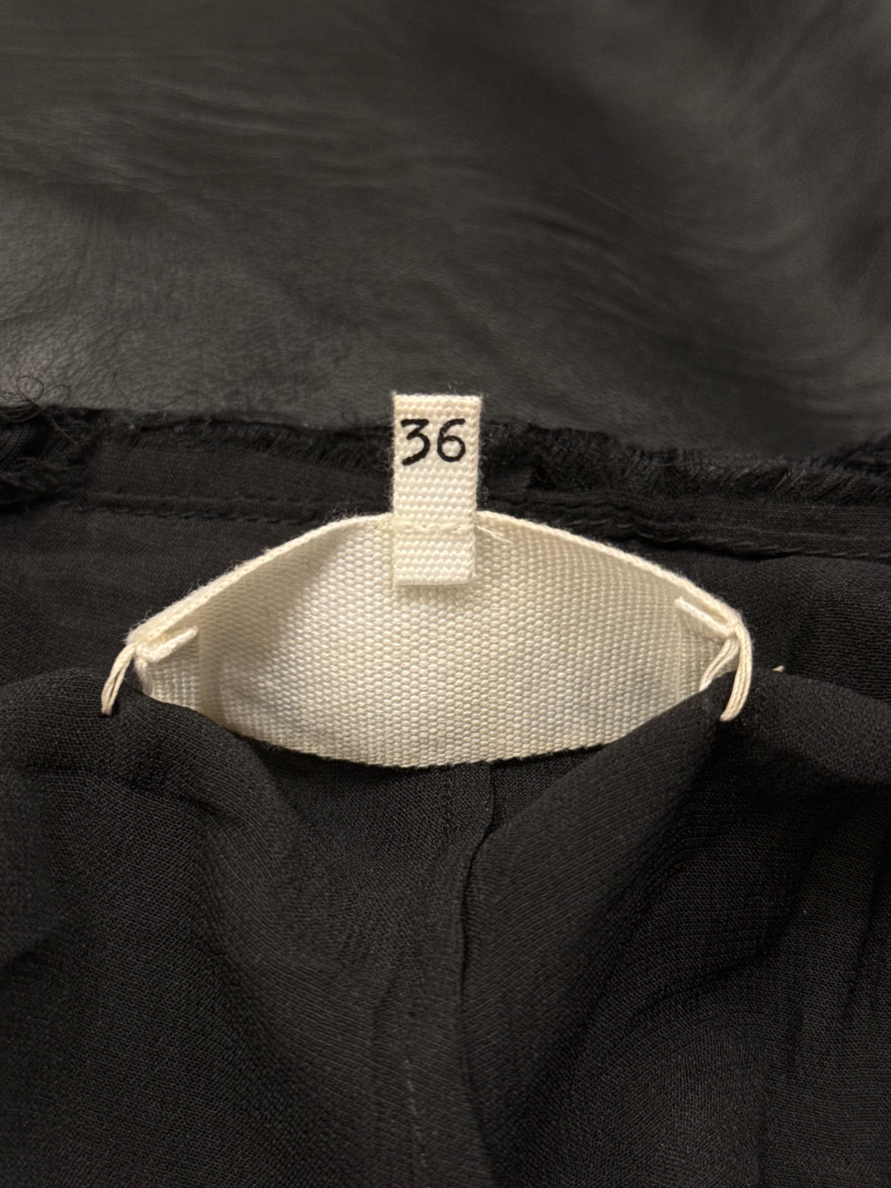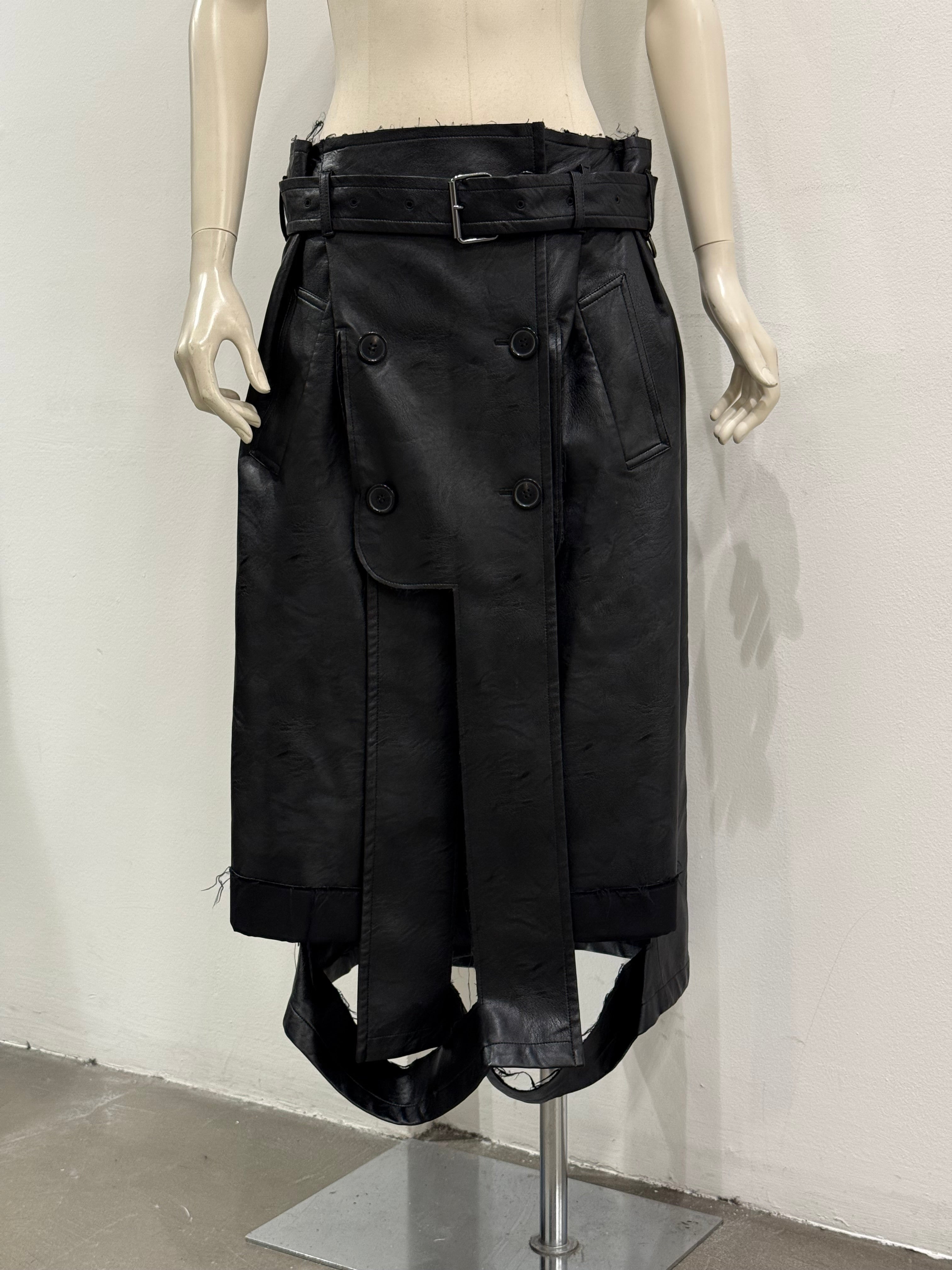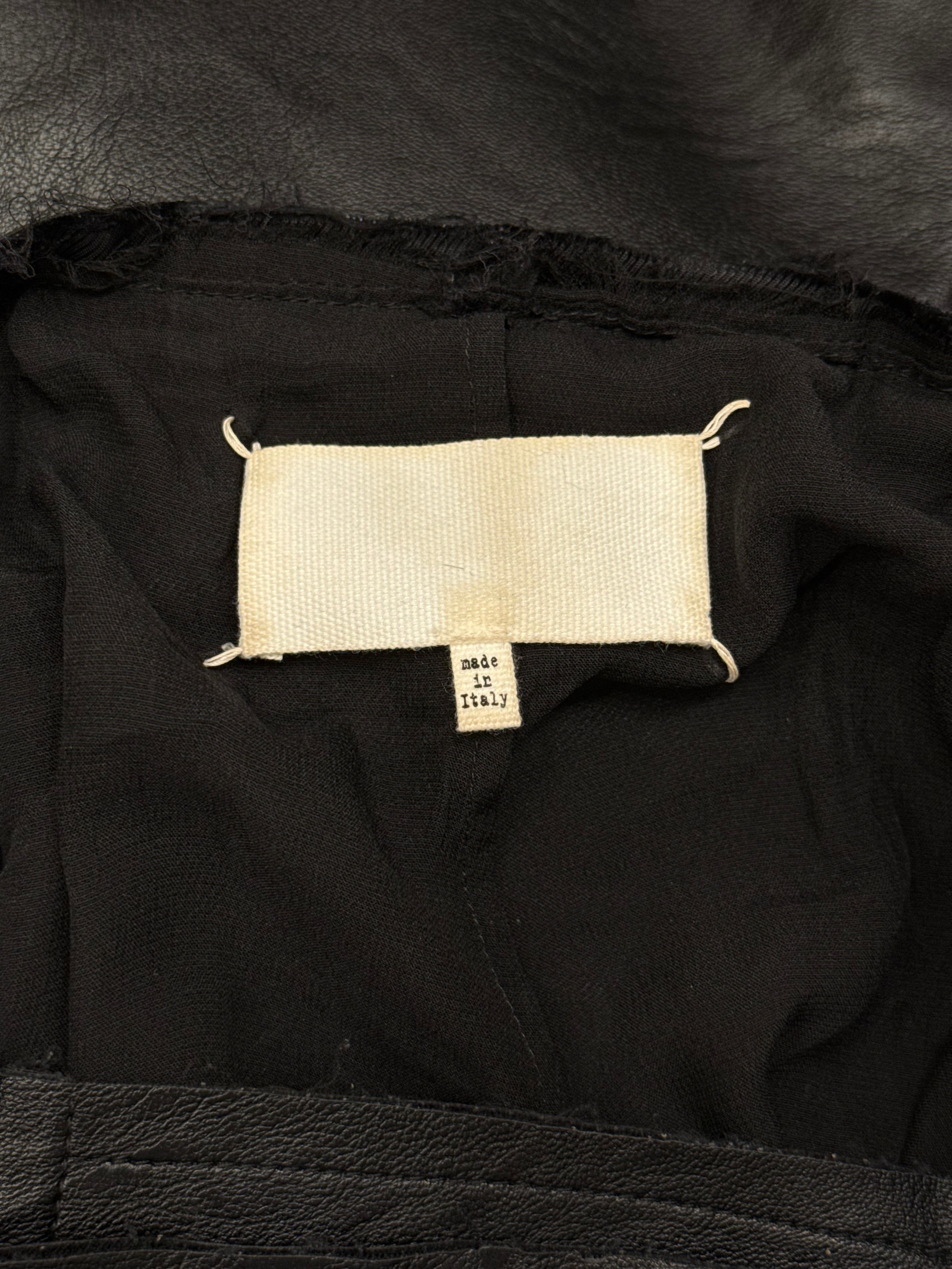 This skirt from Maison Margiela’s Autumn/Winter 2019 runway collection showcases the house’s deconstructive tailoring approach. Crafted from soft black leather, it features layered panels and exposed inner construction elements that evoke the Artisanal spirit of the brand. A refined, sculptural piece that blurs the line between garment and concept.