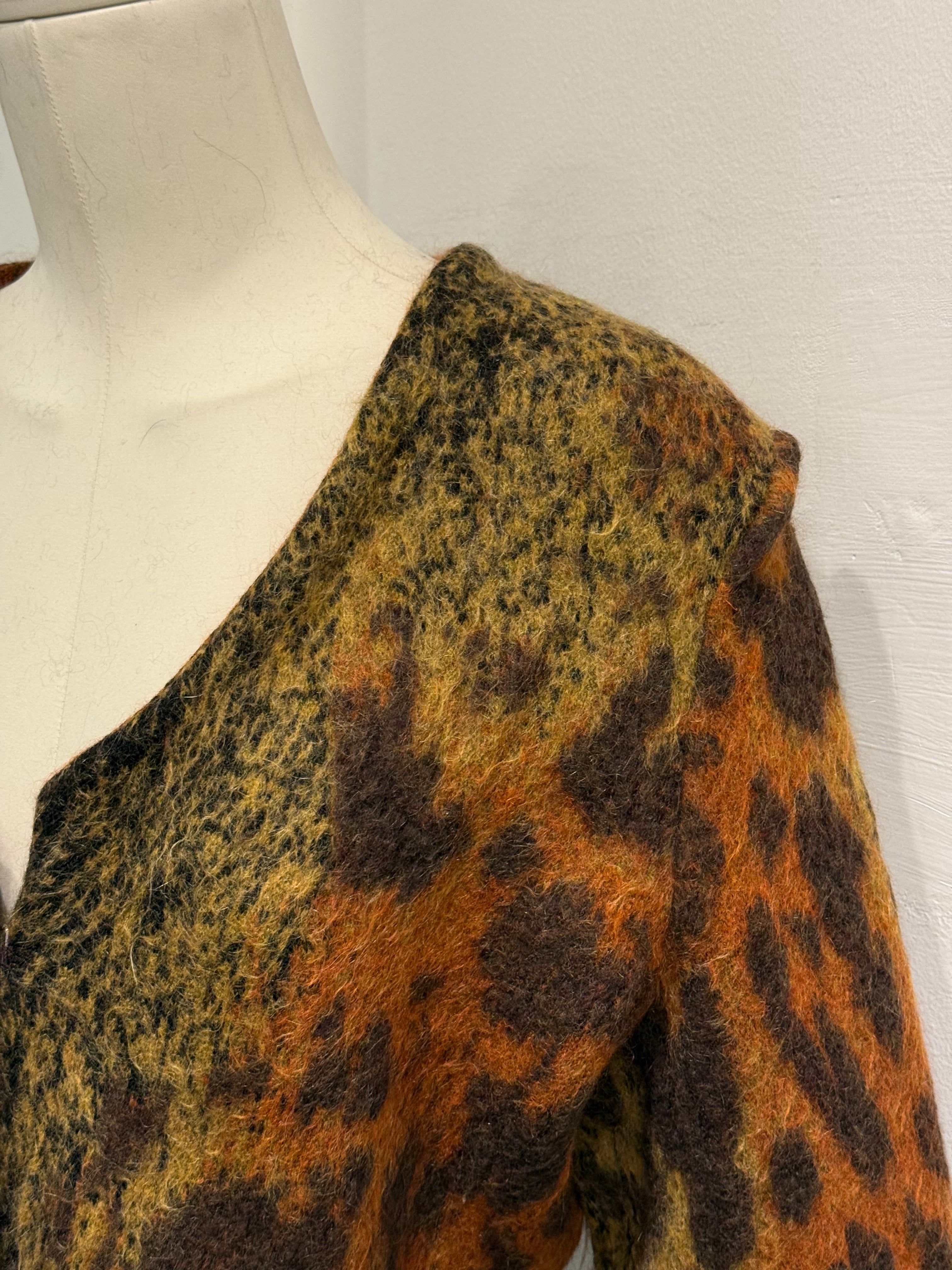2000s Roberto Cavalli mohair leopard cardigan with fur inserts