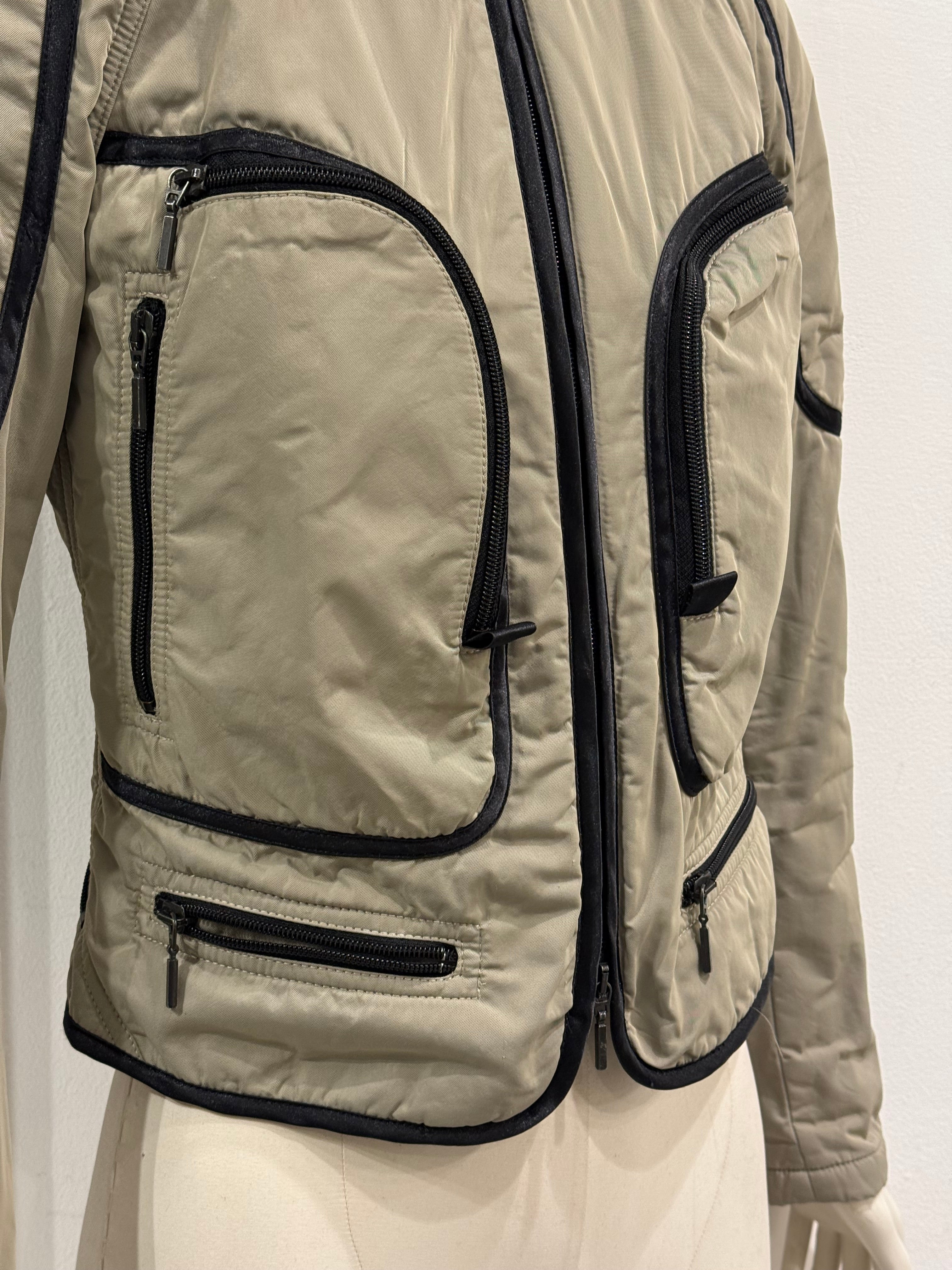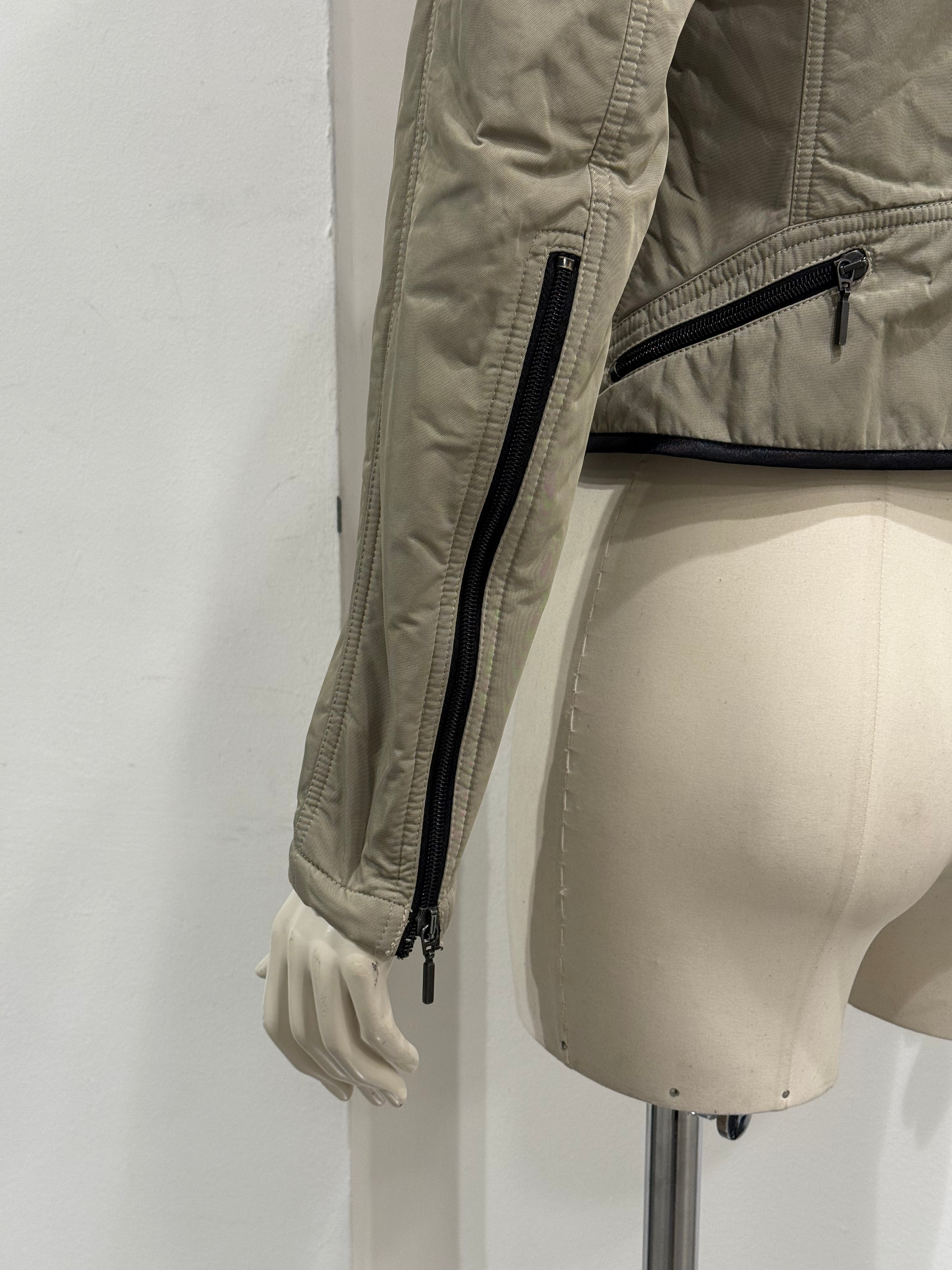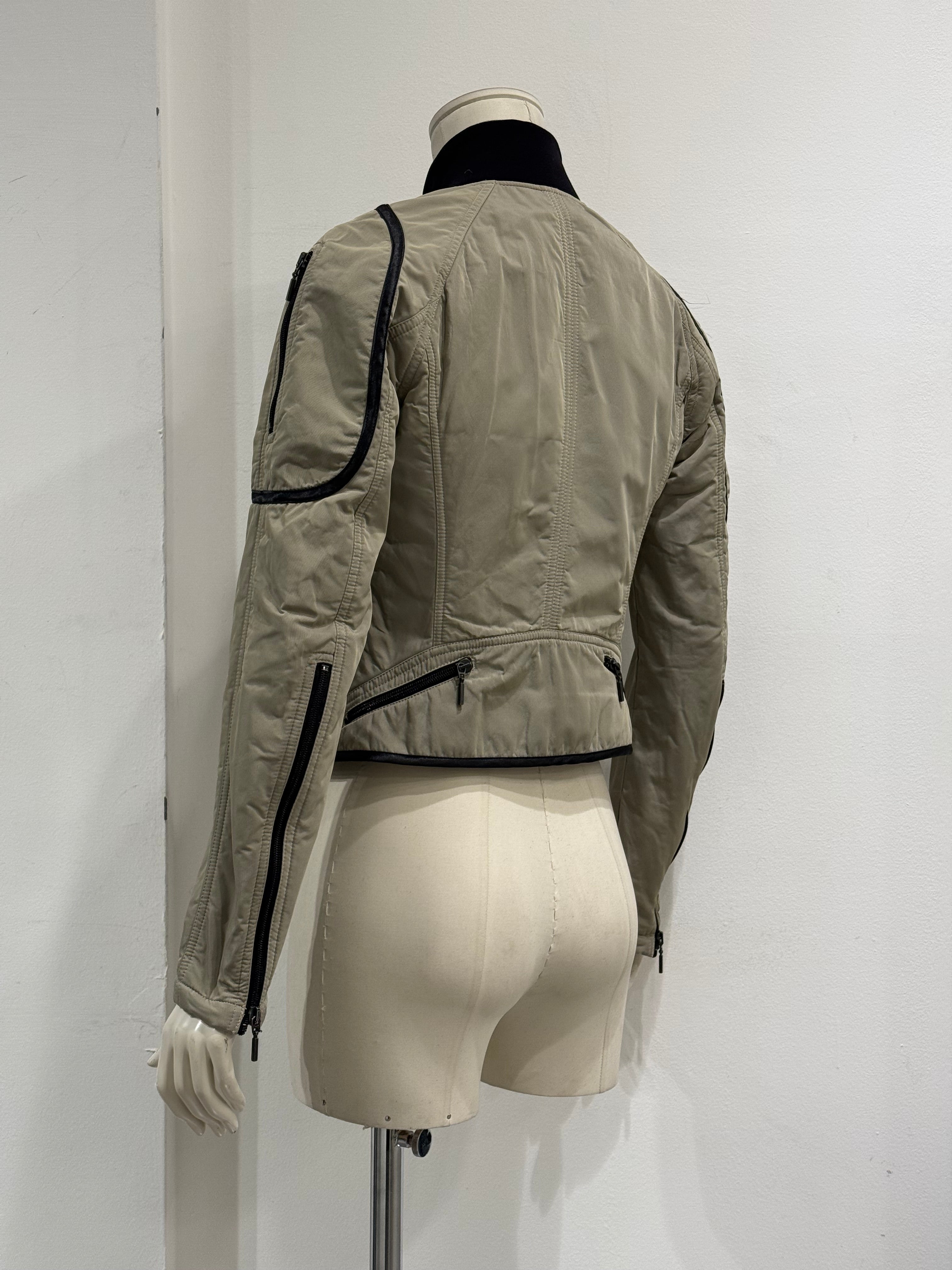 This 2000s Plein Sud utility jacket blends moto-inspired detailing with a sharp, fitted silhouette. Designed with multiple cargo-style pockets and contrast piping, it reflects the brand’s edgy yet feminine aesthetic. The structured construction enhances the waistline, while the utilitarian elements add depth and character. A strong early-2000s piece that merges functionality with attitude.