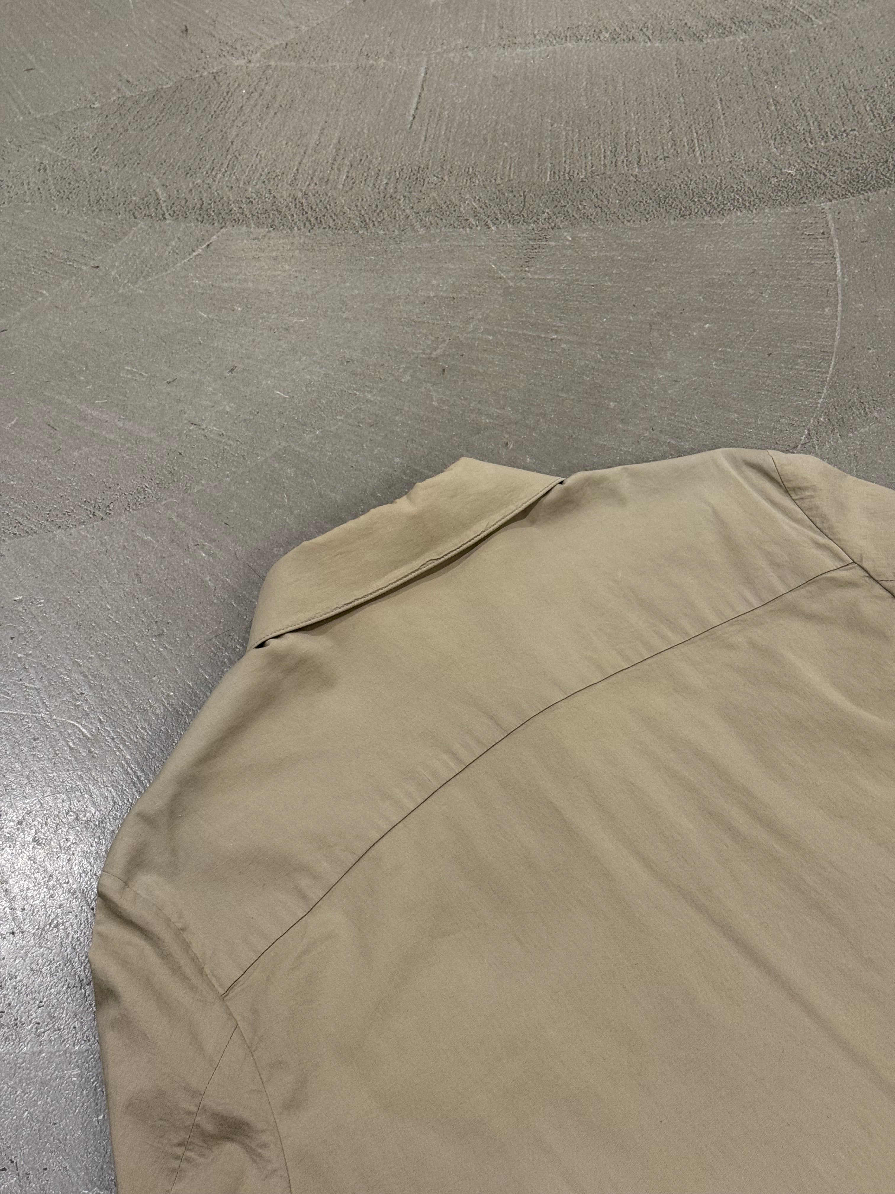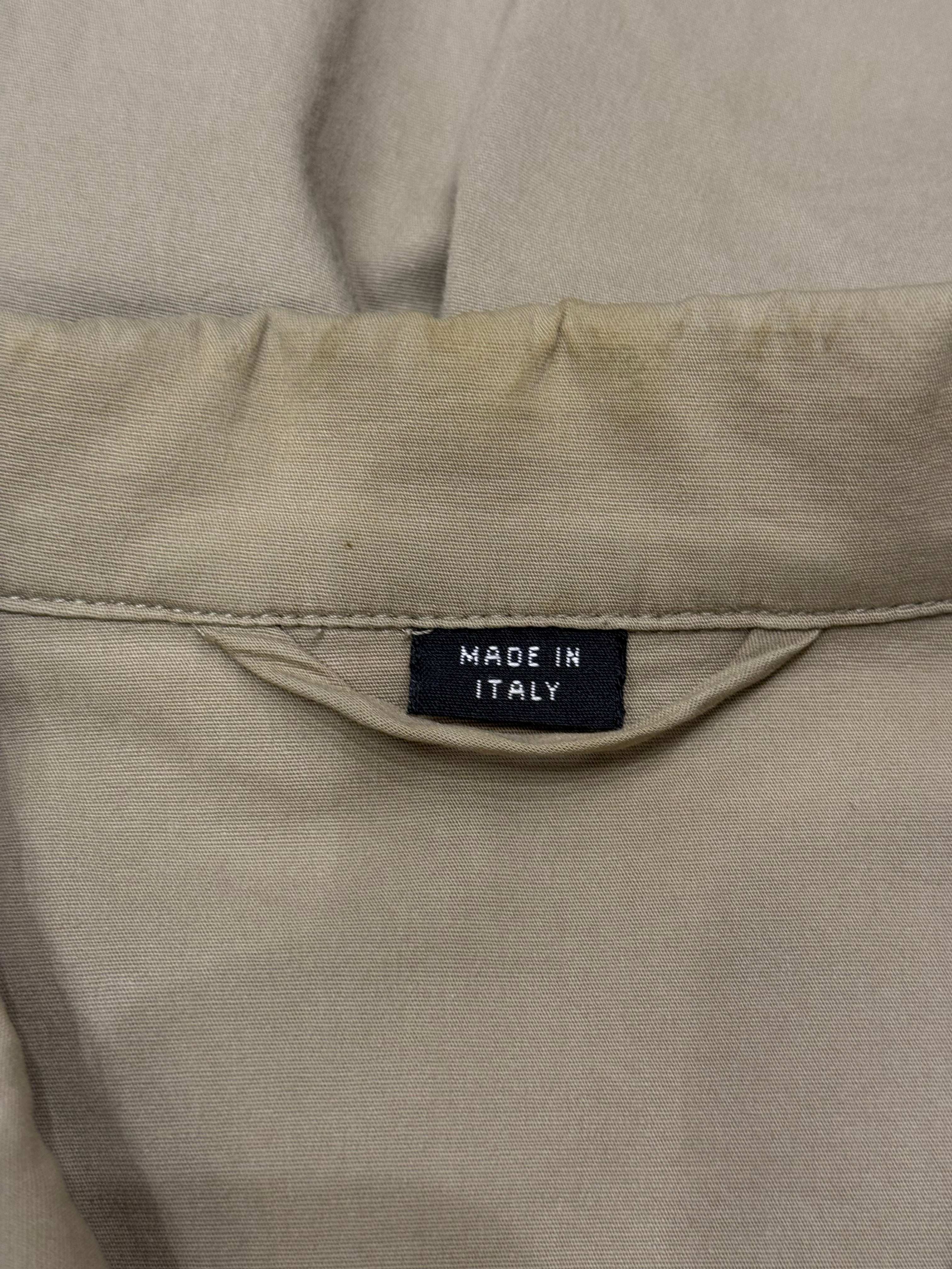 This 1990s Helmut Lang work jacket reflects the designer’s utilitarian minimalism. Crafted from structured cotton, it features front chest pockets, pointed collar, and clean tailoring. A perfect example of Lang’s refined industrial aesthetic that defined 1990s fashion.