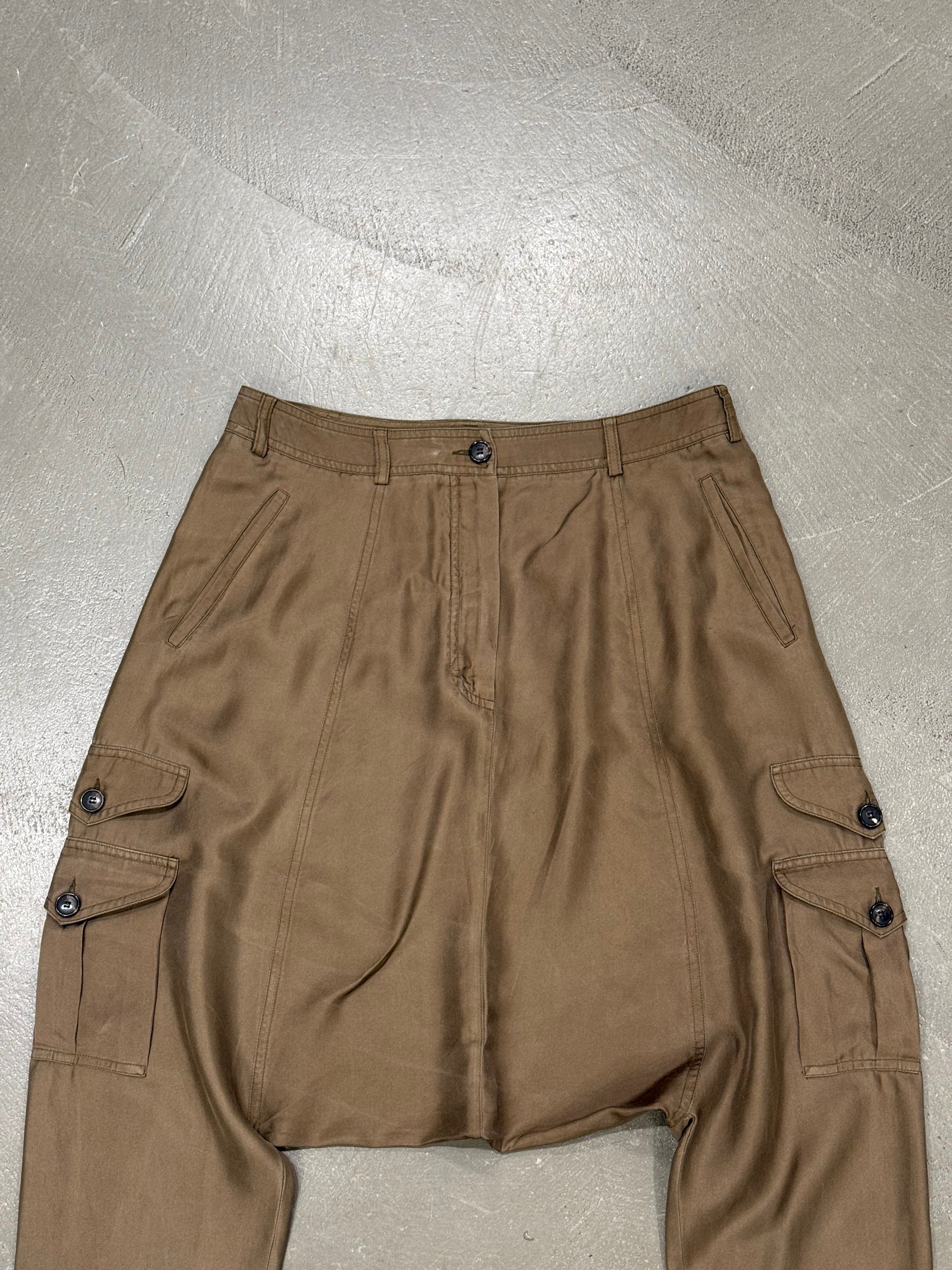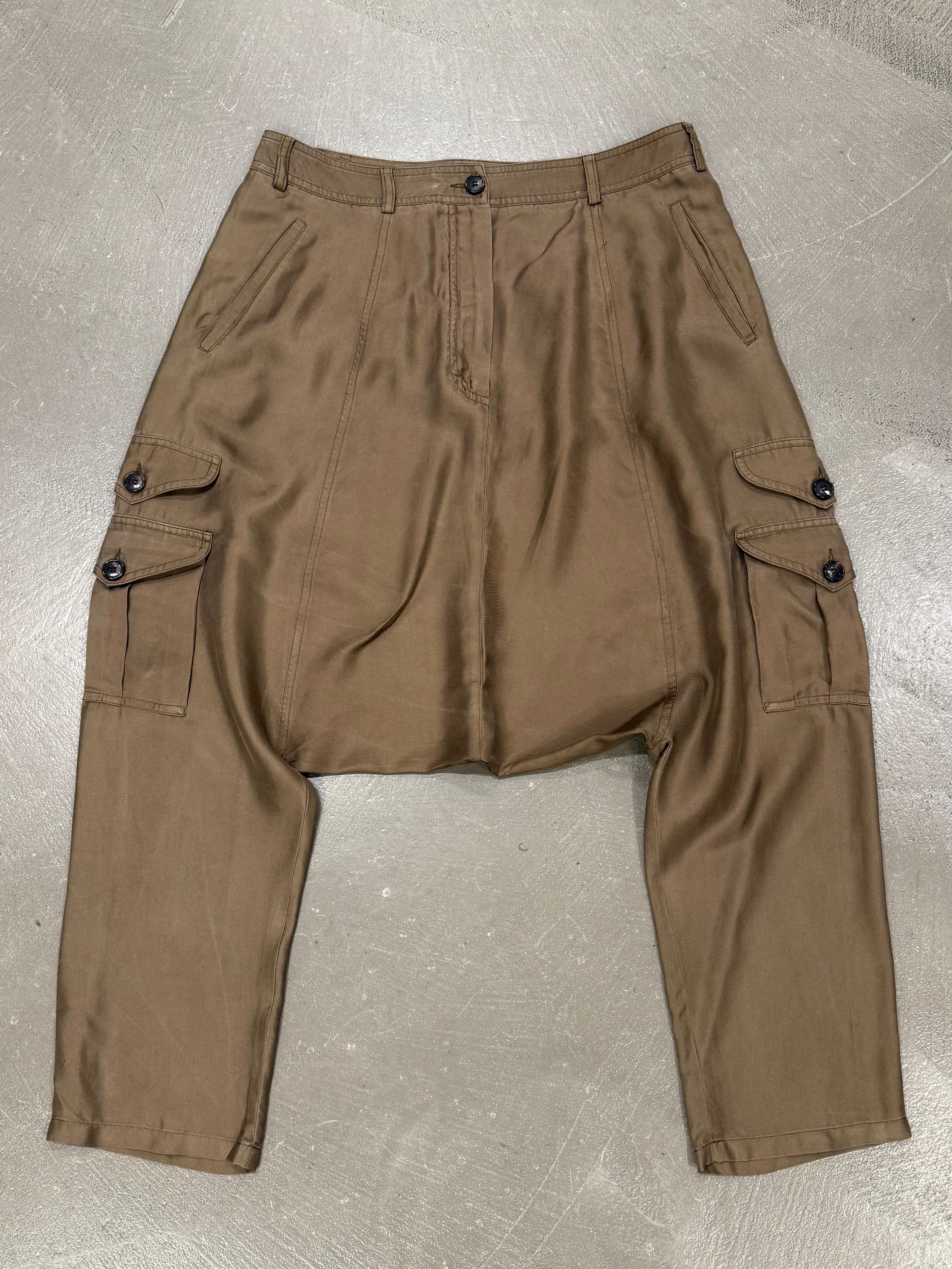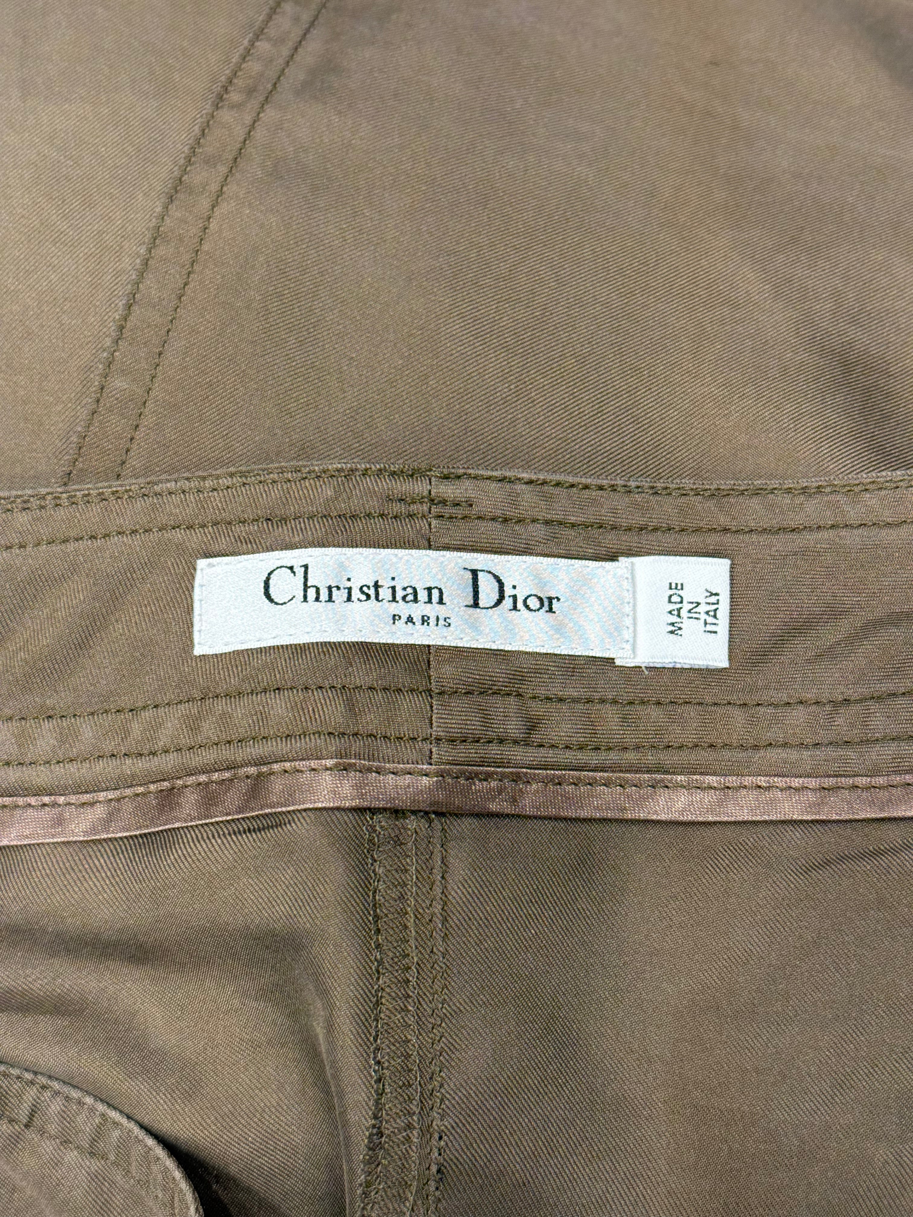 These 2010 Christian Dior shorts feature a distinctive drop-crotch silhouette with military-inspired detailing. A sculptural and fashion-forward take on utilitarian design.