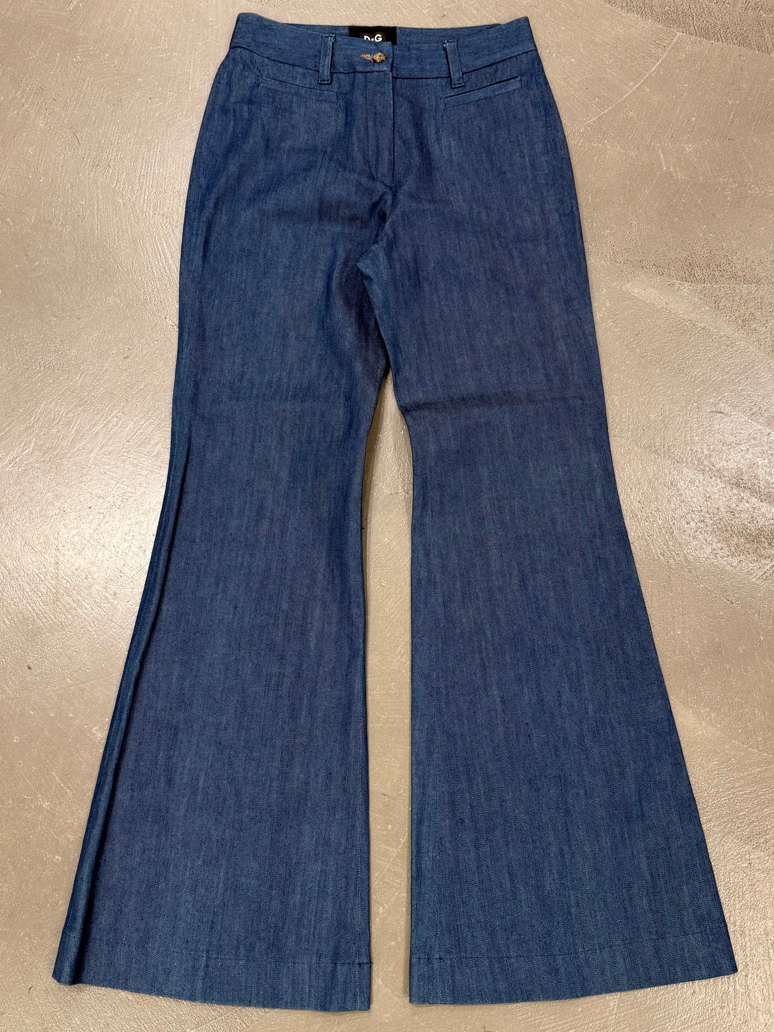 These Dolce & Gabbana jeans from the 2000s feature a sleek, elongated silhouette with a classic bootcut flare. Crafted from premium indigo denim, they showcase clean lines, mid-rise waist, and subtle tonal stitching. Their timeless cut embodies the label’s Y2K tailoring sensibility — sophisticated yet effortlessly flattering.