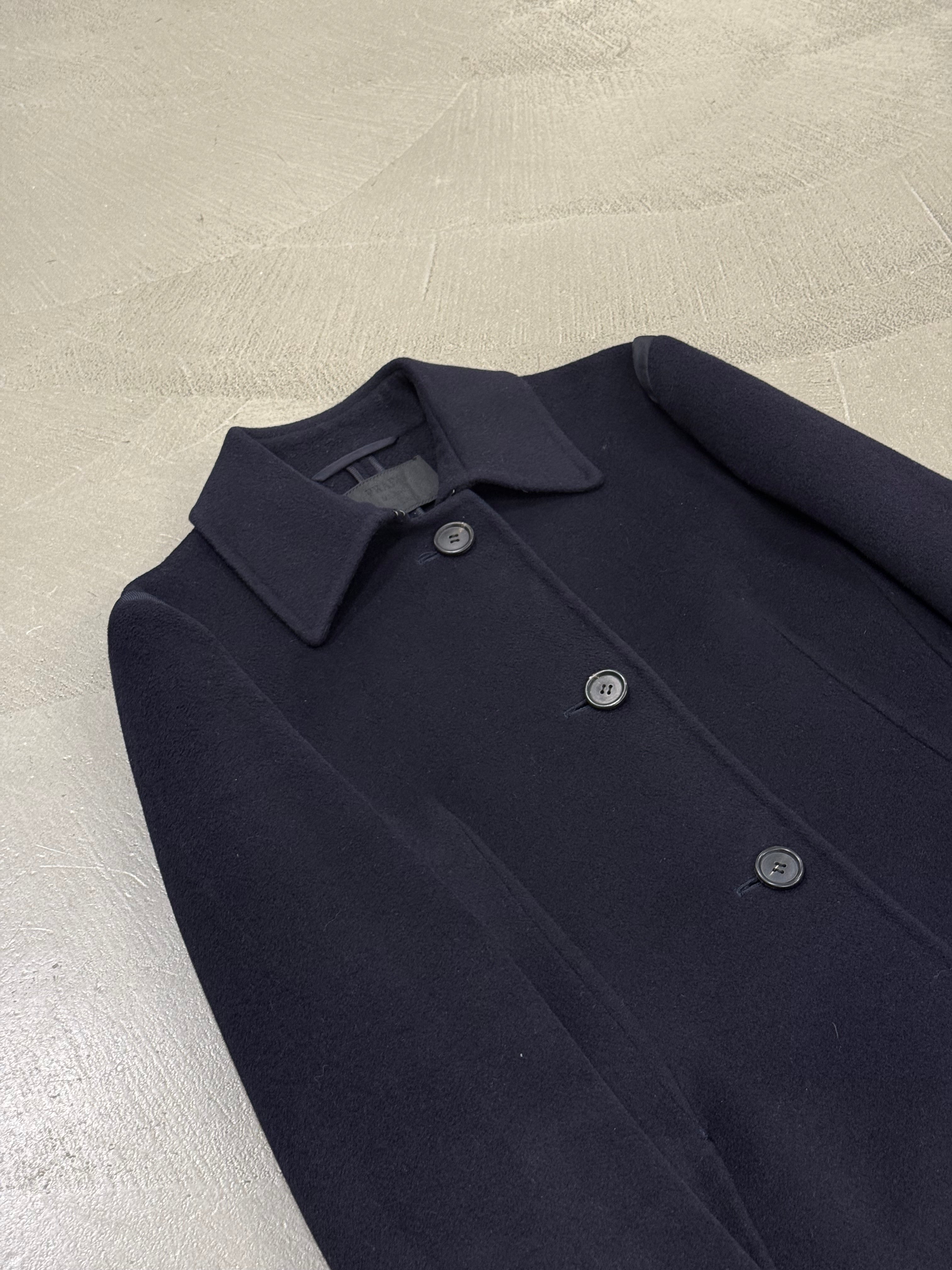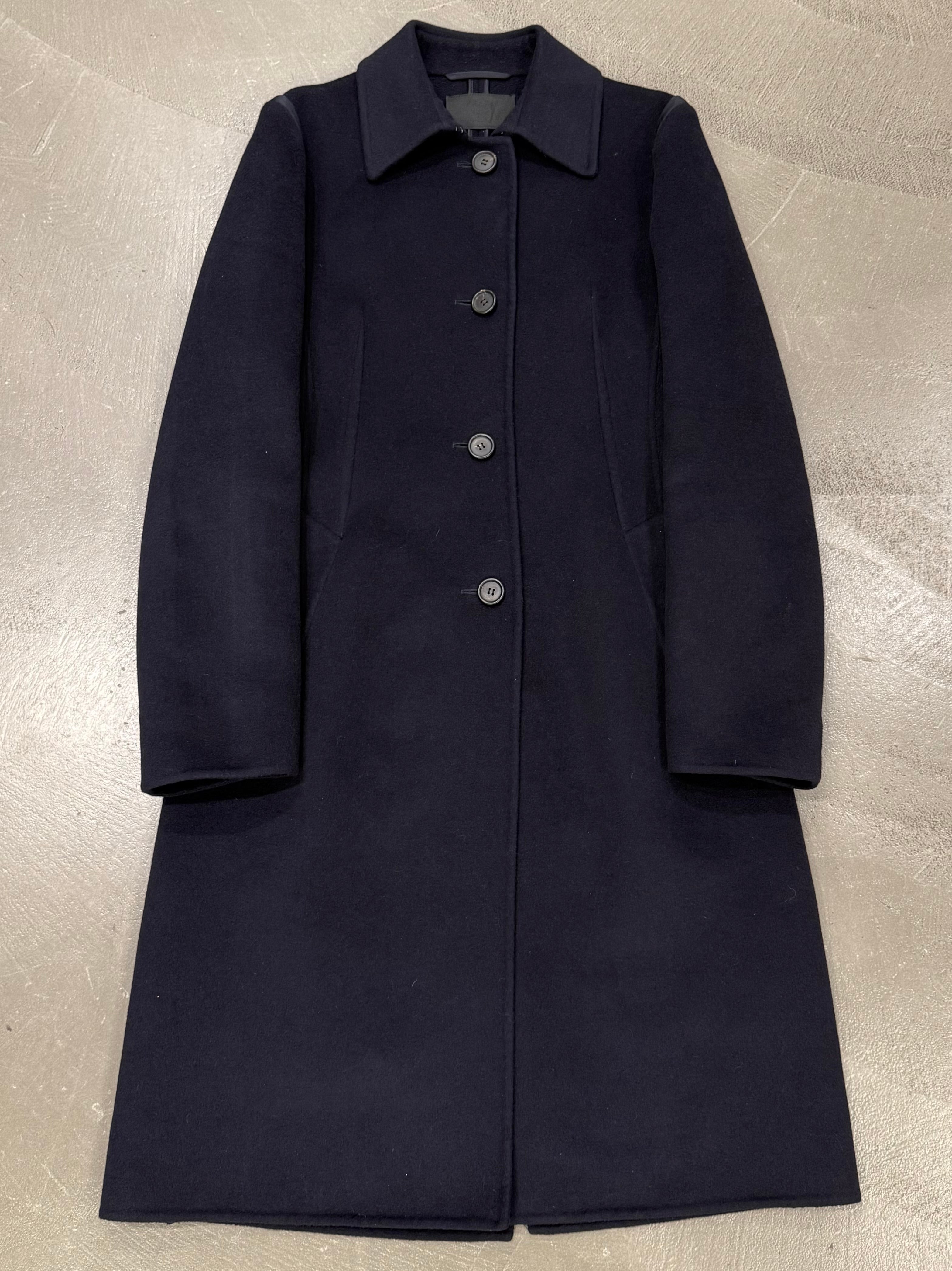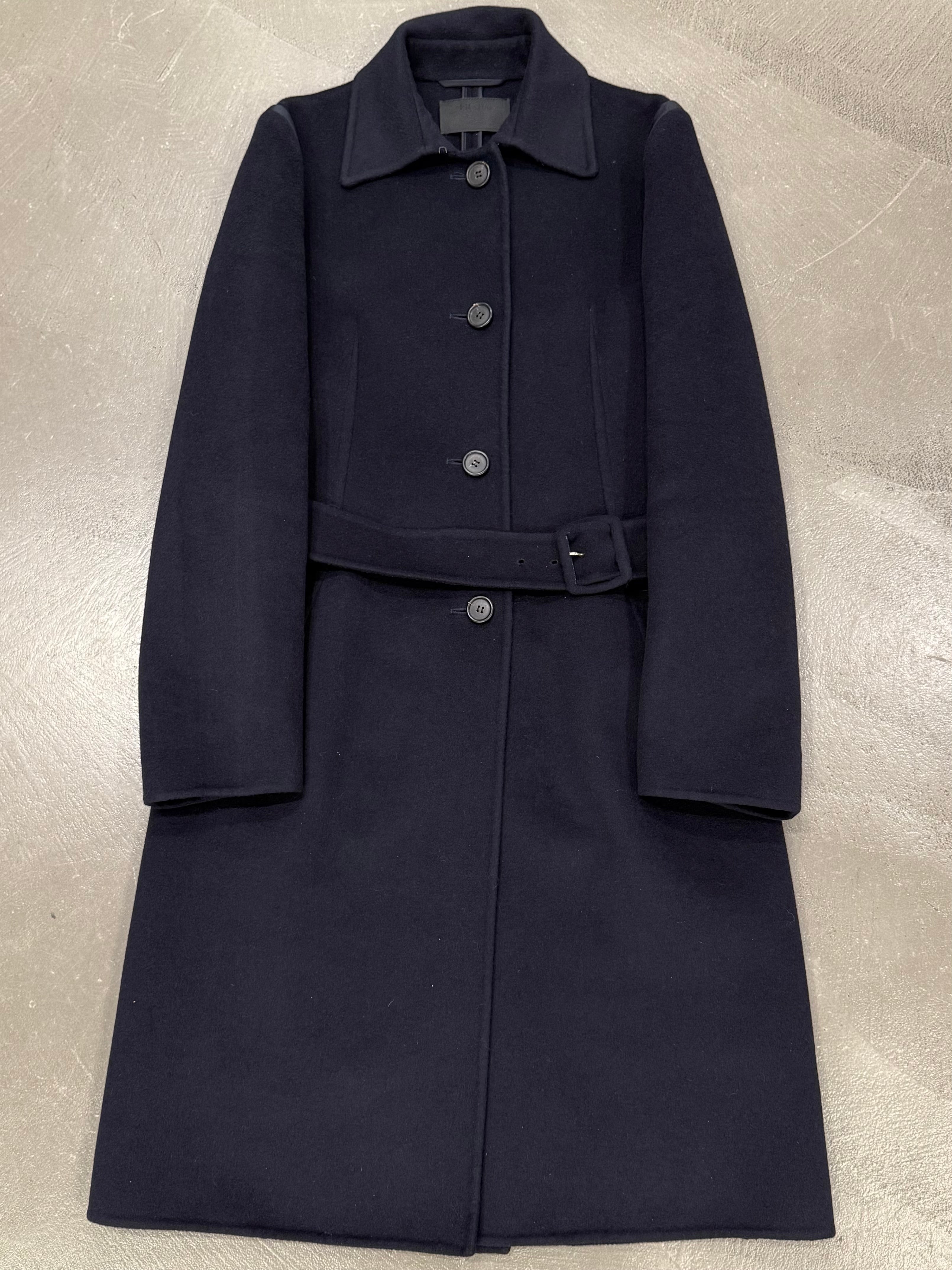 This Prada coat from the 2000s is crafted from a luxurious angora wool blend, offering both warmth and refinement. Featuring a clean, minimalist silhouette with a concealed belt at the waist, it embodies the understated sophistication typical of Prada’s early-2000s design language. The soft texture and precise tailoring make it a timeless piece of modern elegance.