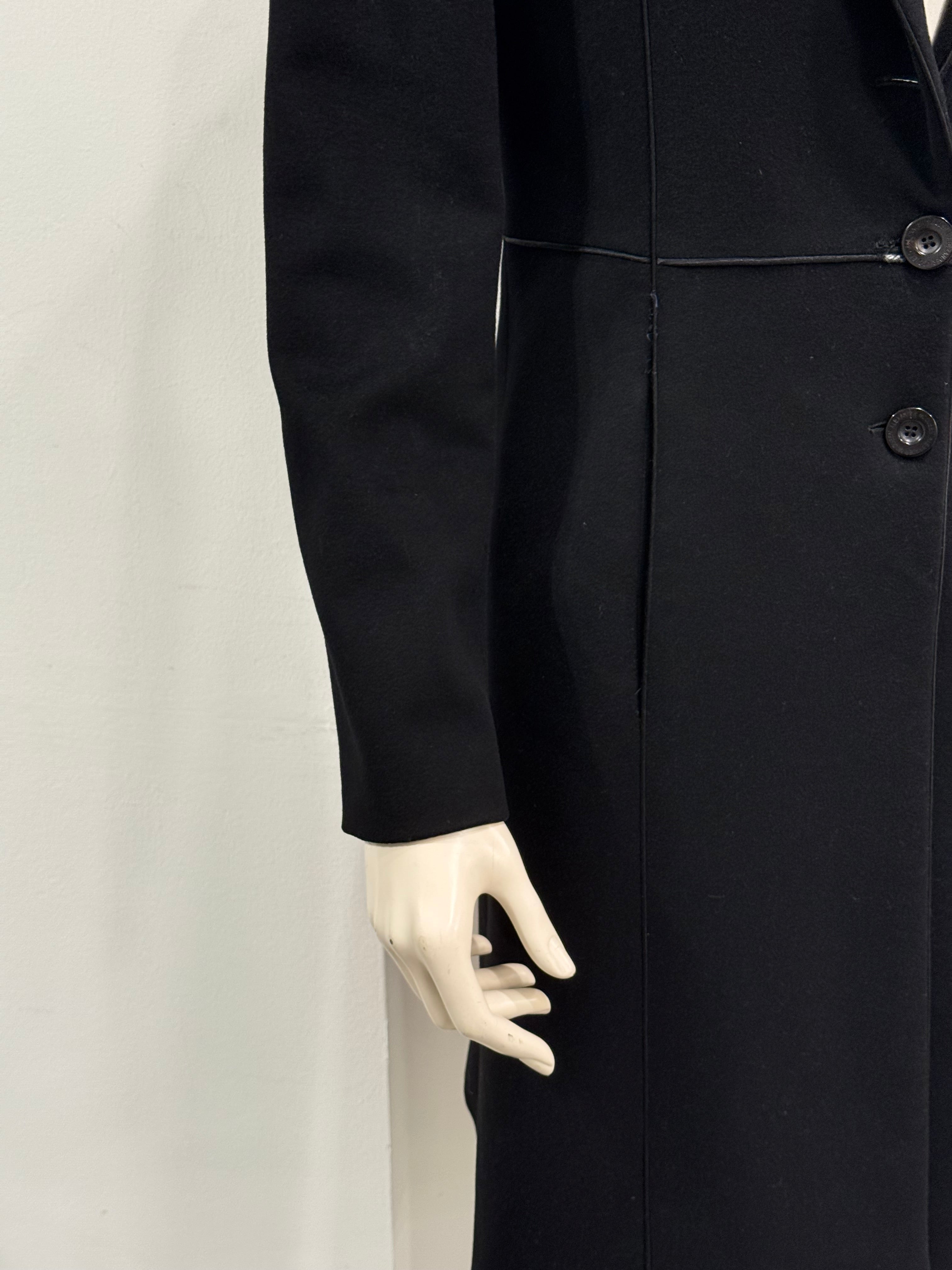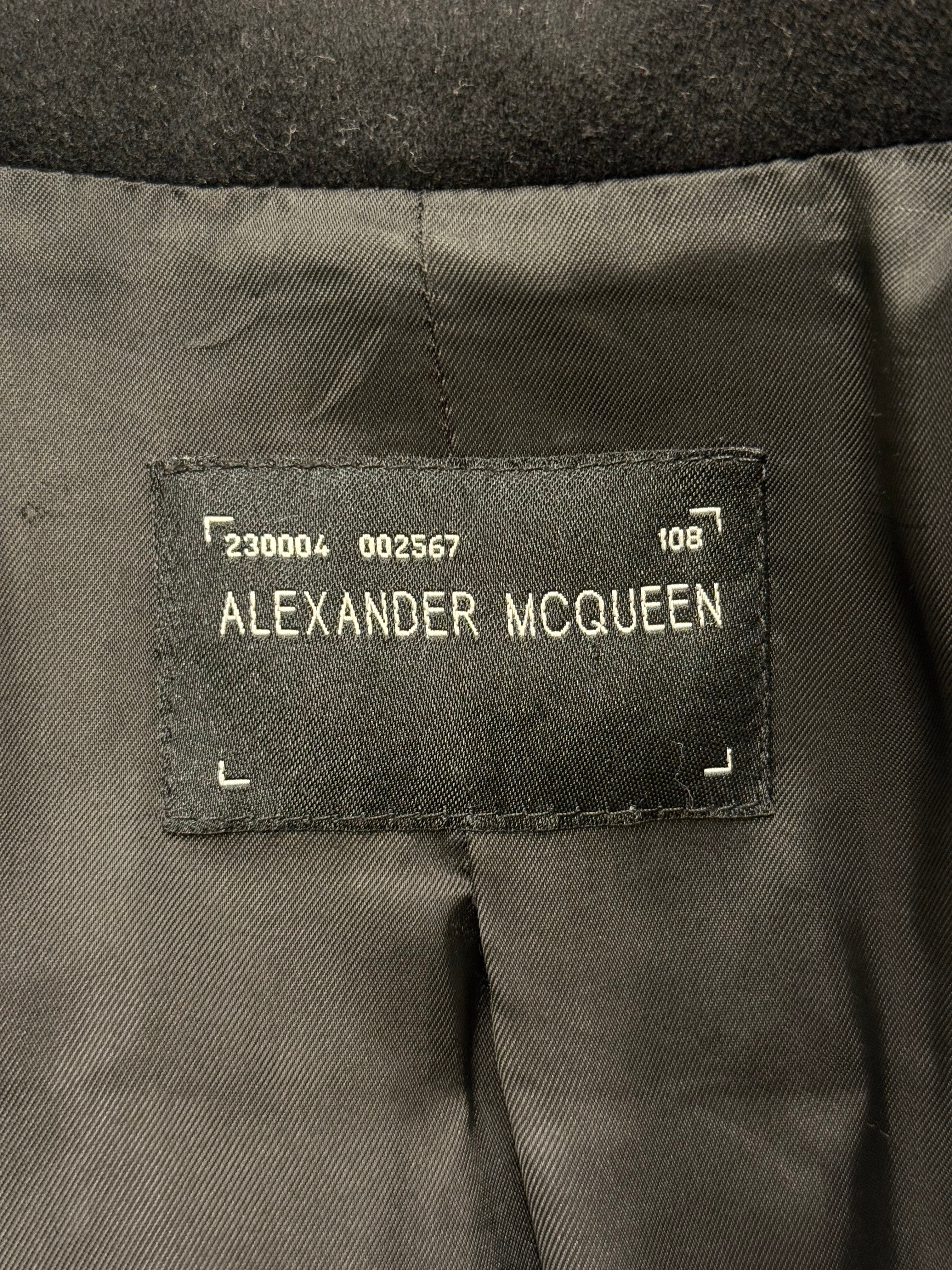 This 1990s Alexander McQueen coat is crafted in a luxurious wool and cashmere blend, defined by a sharp, elongated silhouette that highlights the designer’s early mastery of tailoring. Clean lines and sculpted proportions give the piece a powerful yet elegant presence. A collectible archival garment from McQueen’s formative years.