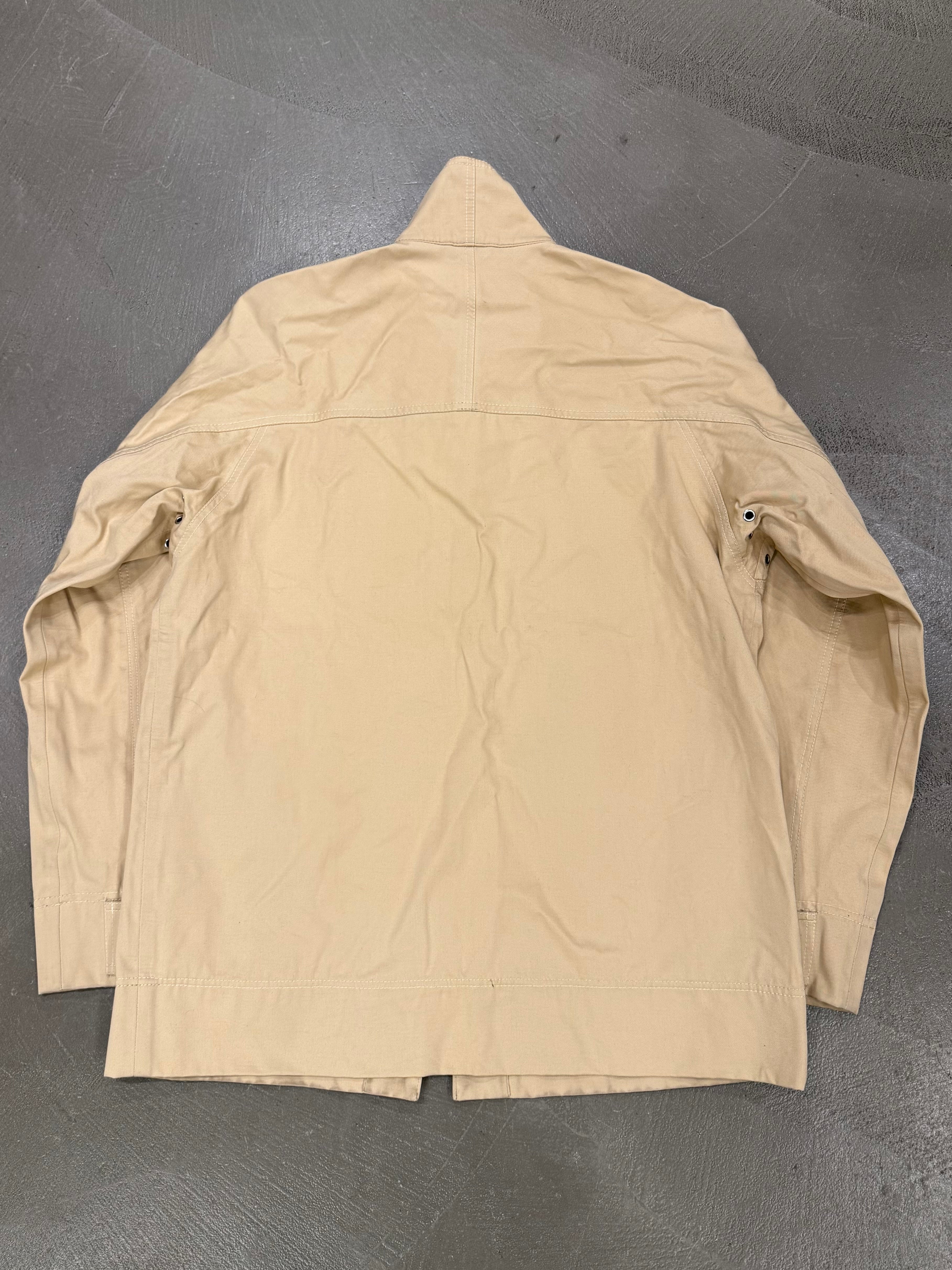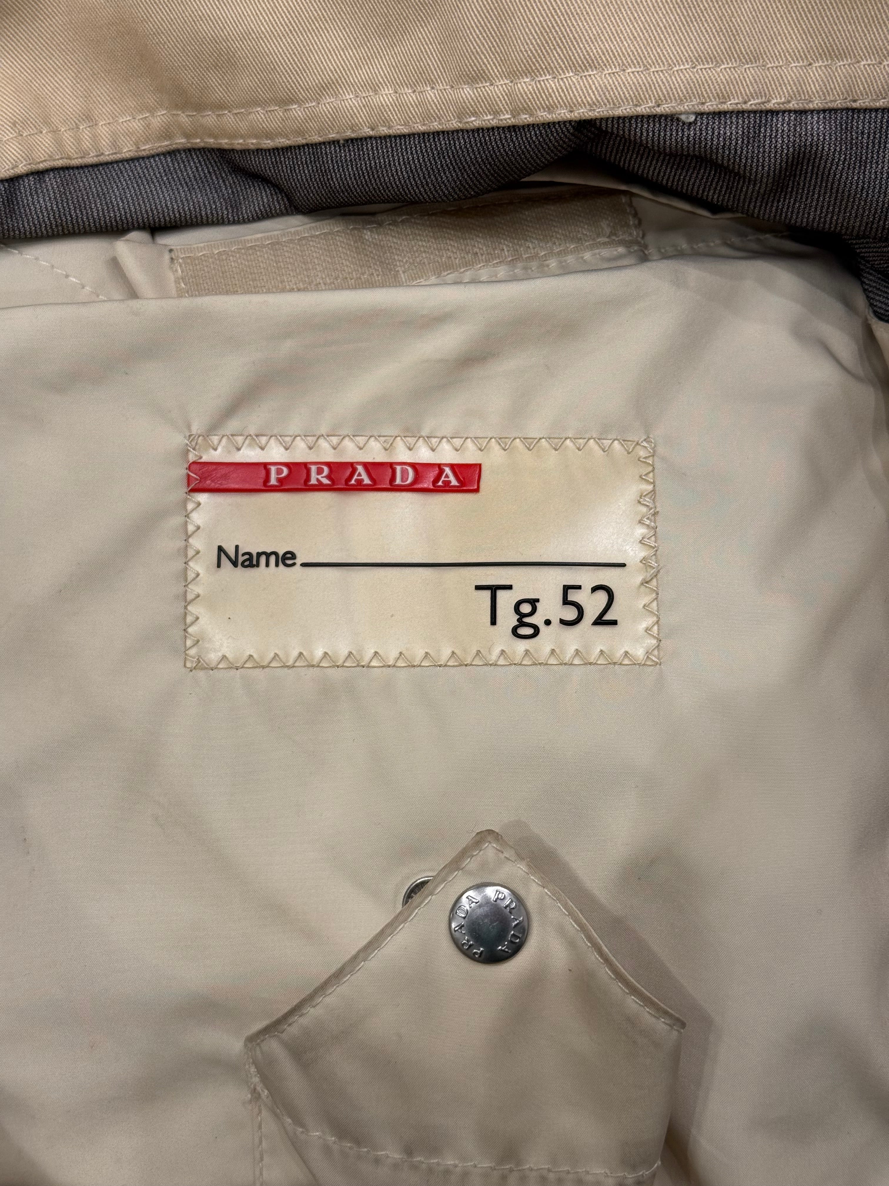 This early-2000s Prada jacket is crafted in a cotton and polyester blend with a lightweight nylon feel. Defined by a clean, utilitarian silhouette and raglan sleeves for ease of movement, it reflects Prada’s understated approach to technical outerwear during the period. A versatile archival piece suited for everyday wear.