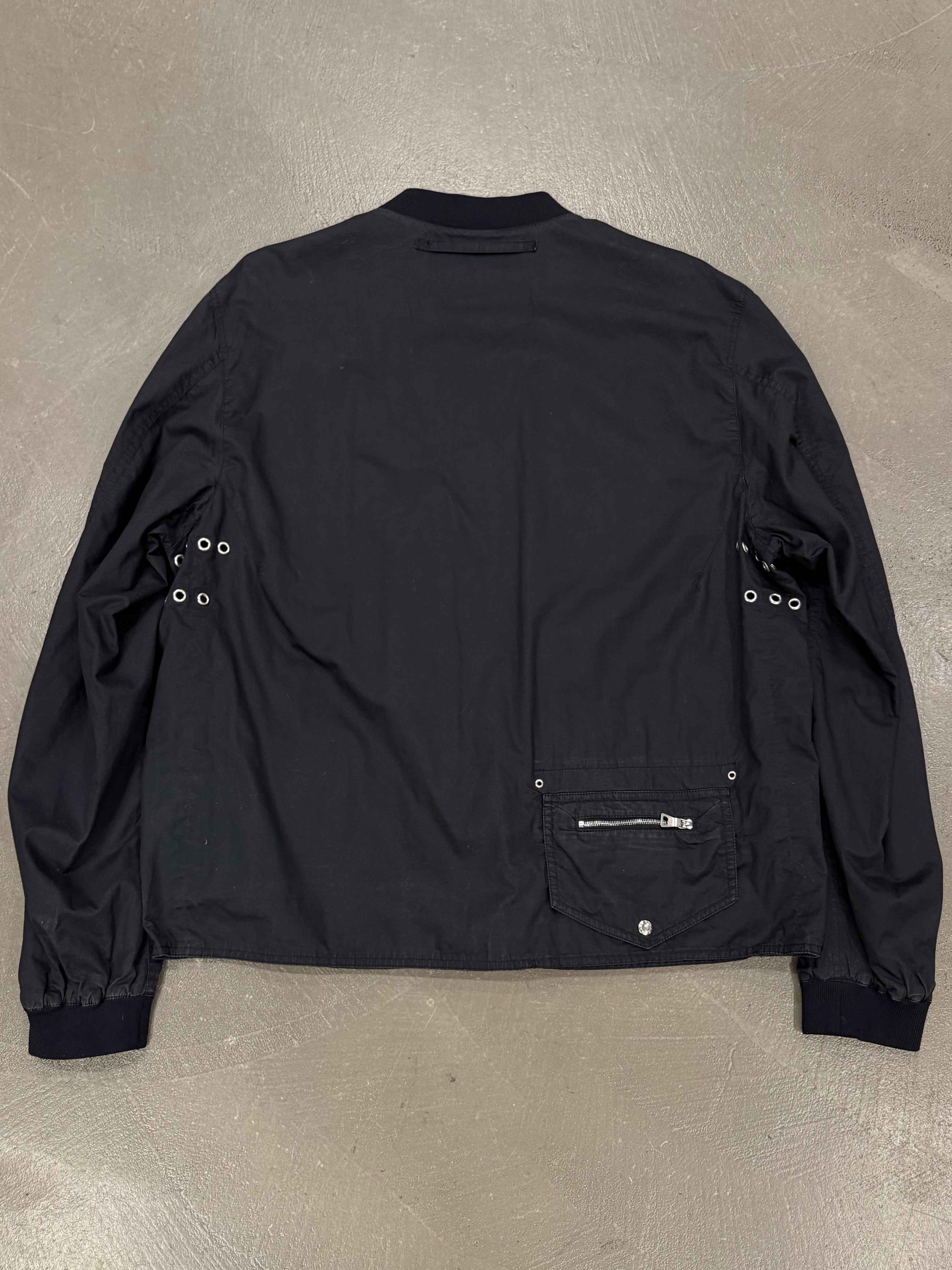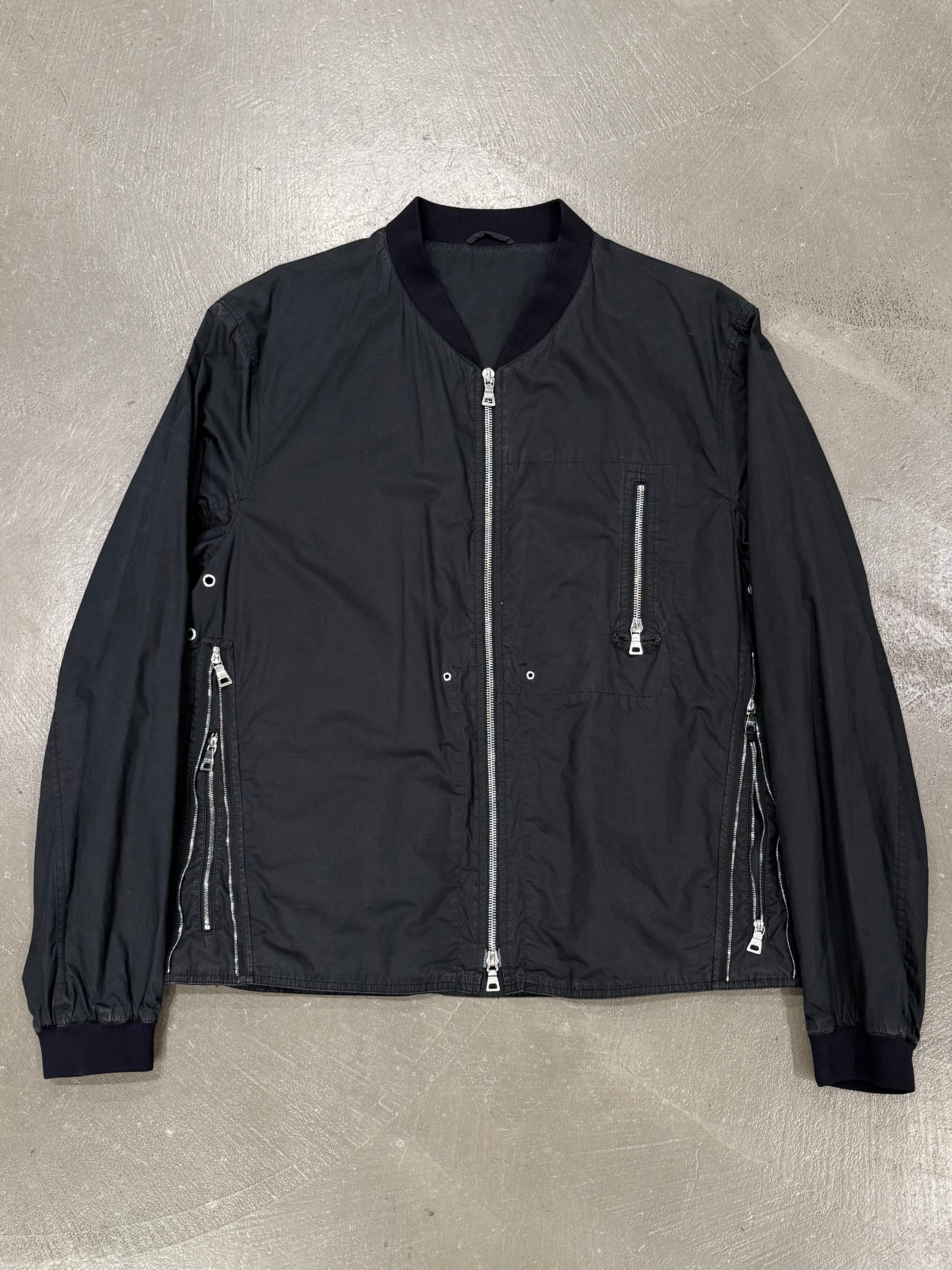 This early-2000s Prada moto jacket reflects the brand’s exploration of technical materials and streamlined design. Crafted in a cotton and nylon blend, it features a lightweight construction with a clean, functional silhouette inspired by motorcycle outerwear. A versatile archival piece that bridges utilitarian performance and understated Prada elegance.
