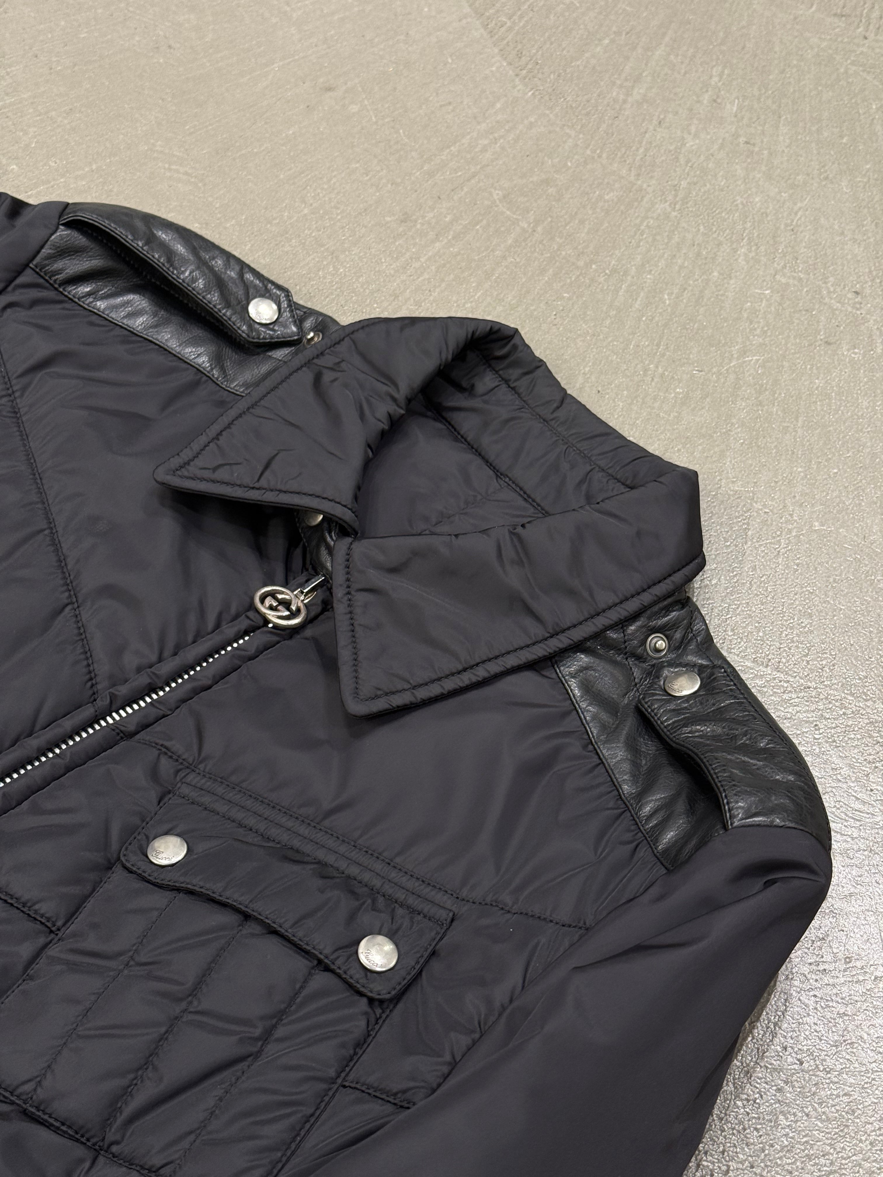 2000s Gucci nylon puffer jacket with leather details