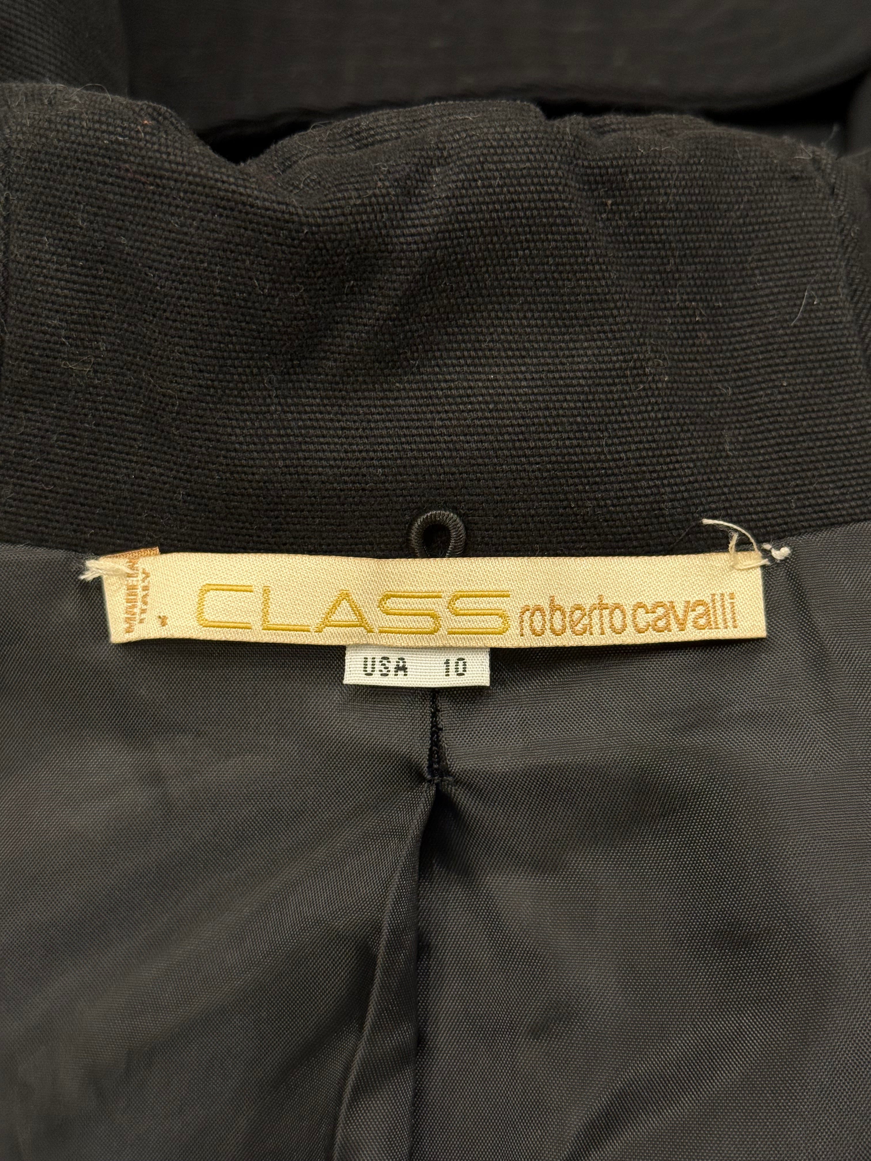 This 2000s Roberto Cavalli jacket embodies the brand’s sensual and ornate aesthetic. Crafted in 100% cotton, it features intricate embroidery and lace-up front detailing that enhance its sculpted, body-conscious cut. The fitted silhouette and decorative finishes reflect Cavalli’s signature fusion of craftsmanship and bold femininity.