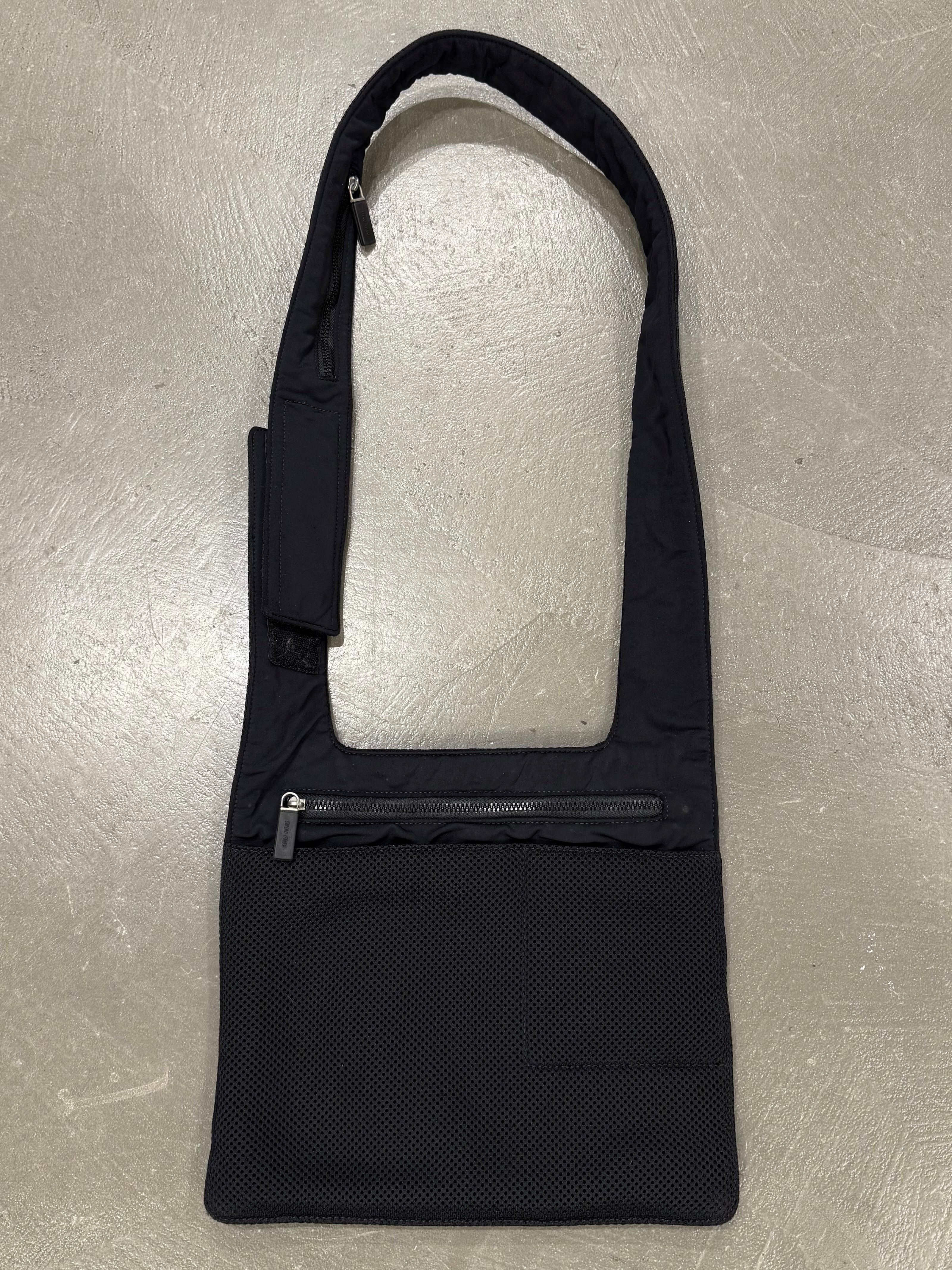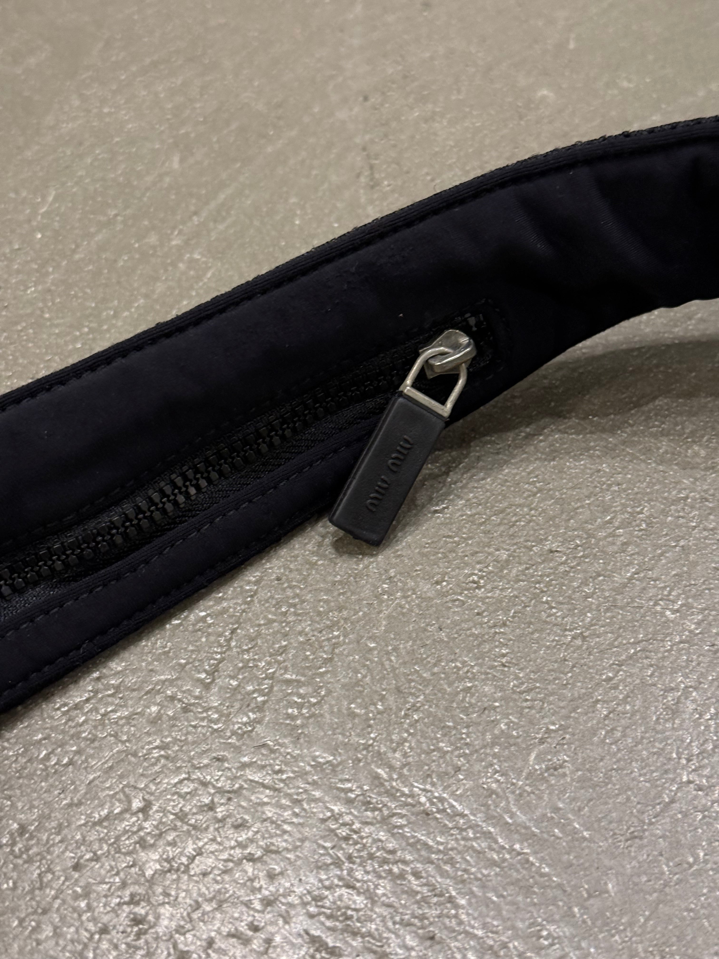 This technical bag from Miu Miu’s 1999 production reflects the brand’s early utilitarian experimentation within the Prada group. Featuring a compact silhouette and functional design, it represents a minimalist yet forward-thinking accessory from the late 1990s.