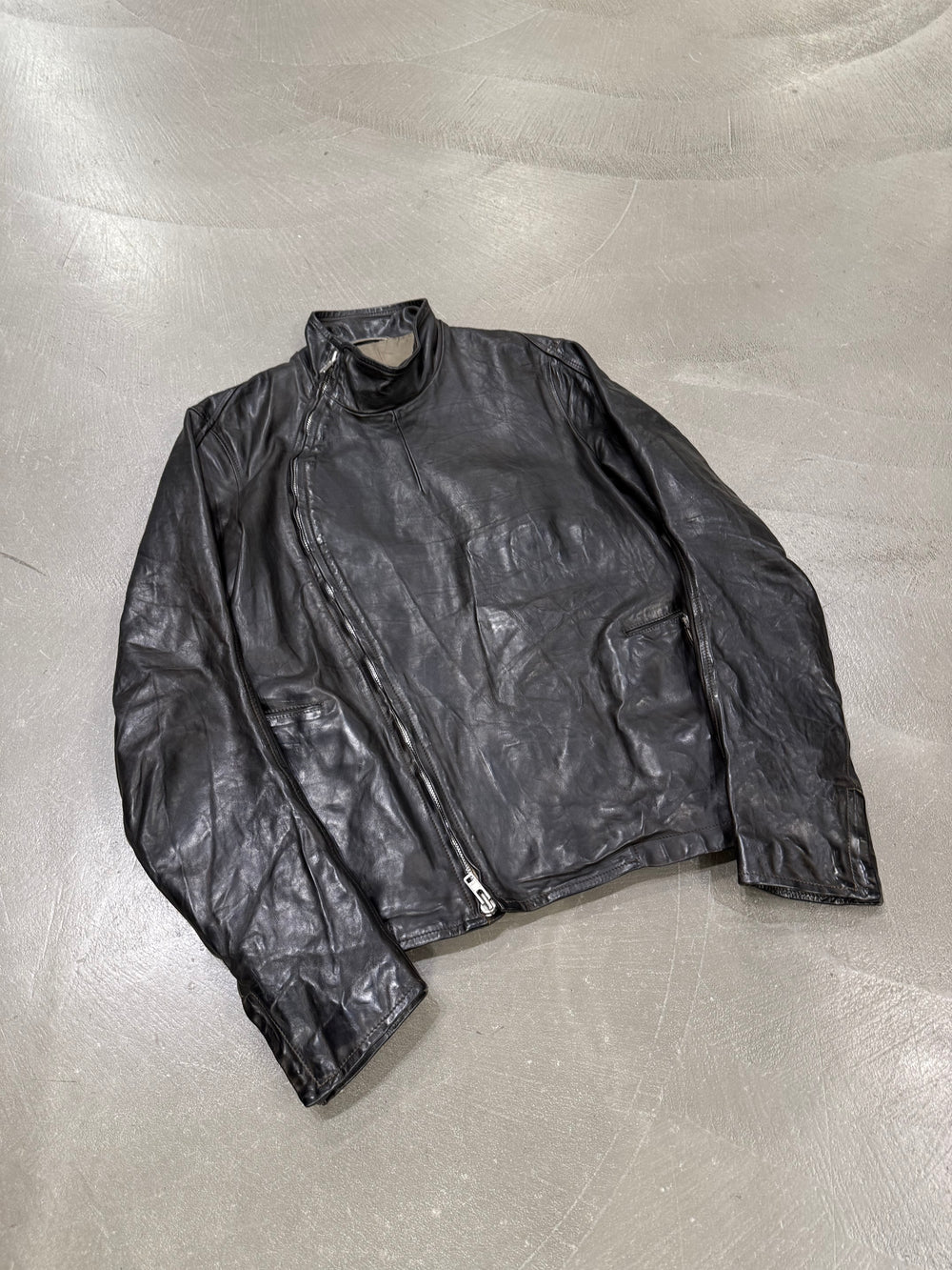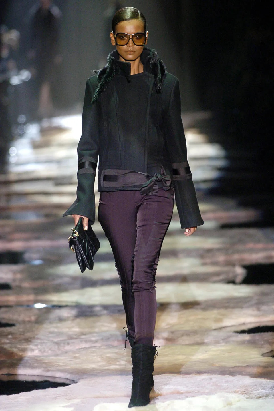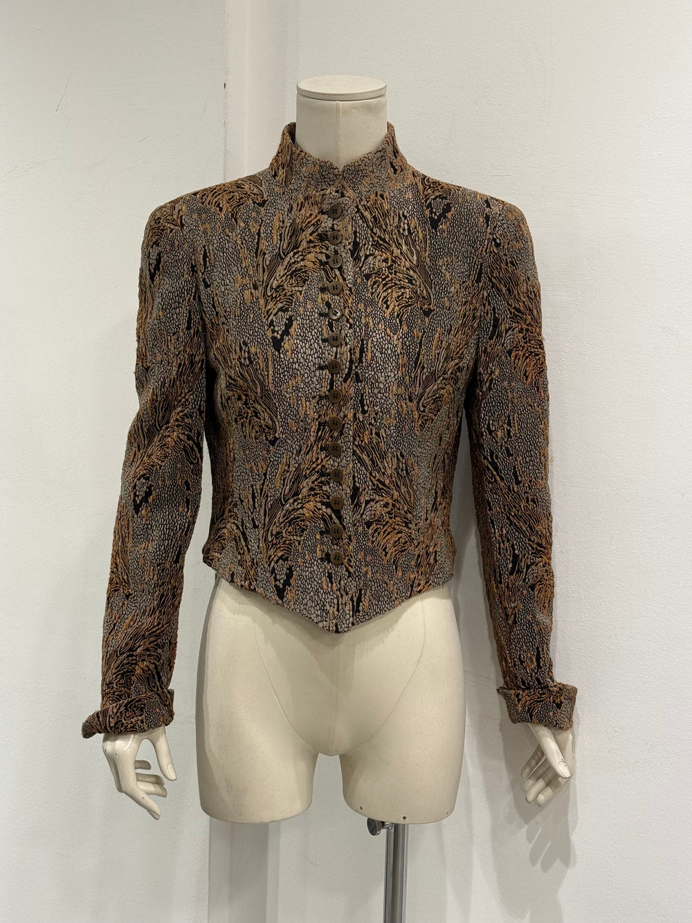This A/W 1999 Roberto Cavalli shearling coat showcases an oversized silhouette with striking patchwork leather construction and raw-edge finishing. Warm, sculptural, and dramatic, it is one of Cavalli’s most iconic shearling designs of the late 1990s.