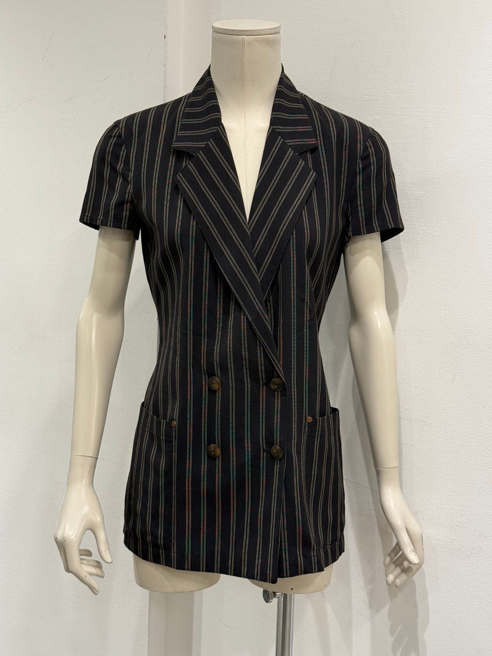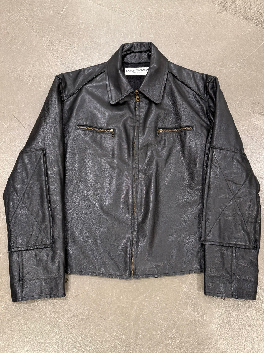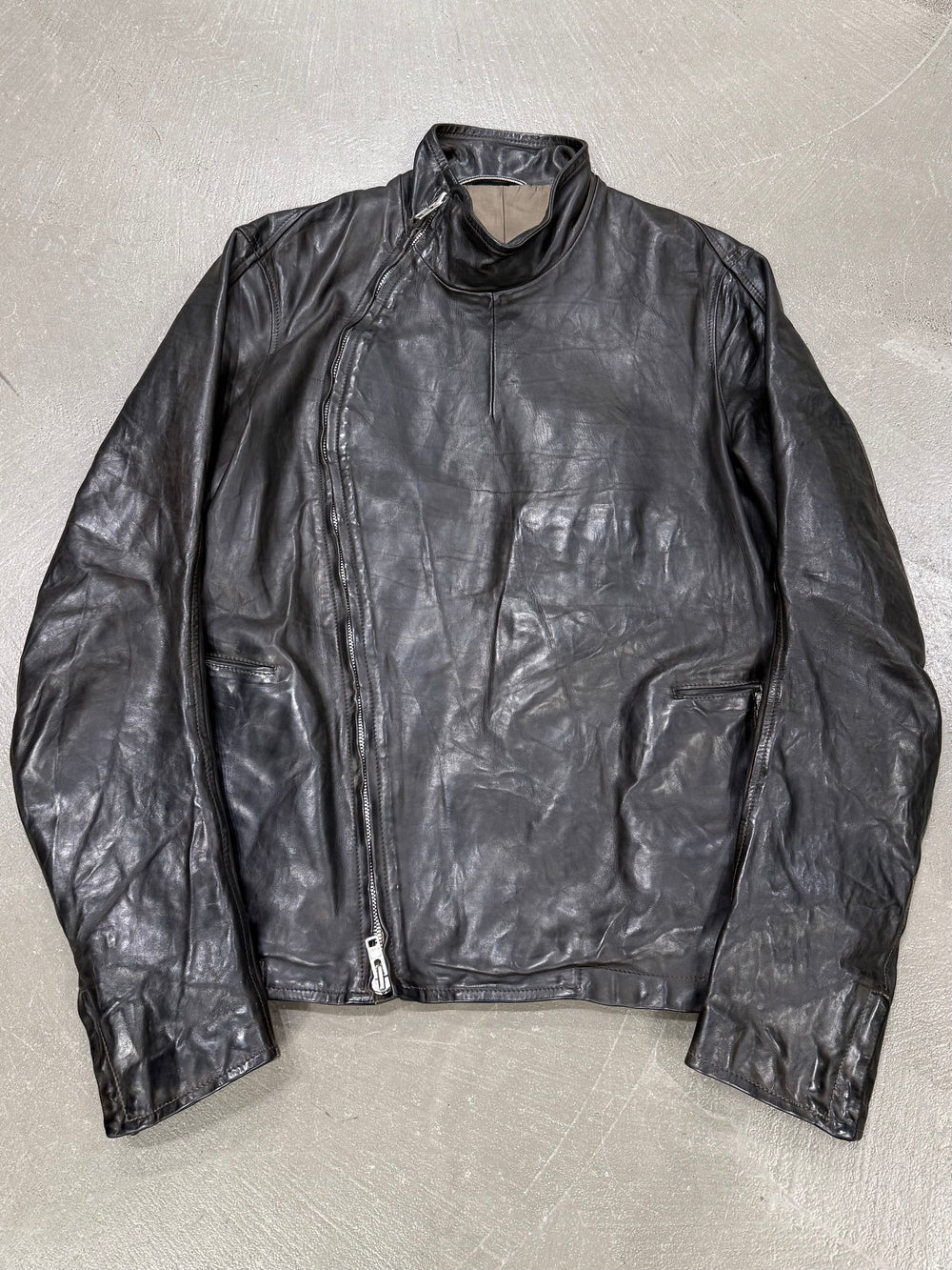 This A/W 1999 Roberto Cavalli shearling coat showcases an oversized silhouette with striking patchwork leather construction and raw-edge finishing. Warm, sculptural, and dramatic, it is one of Cavalli’s most iconic shearling designs of the late 1990s.
