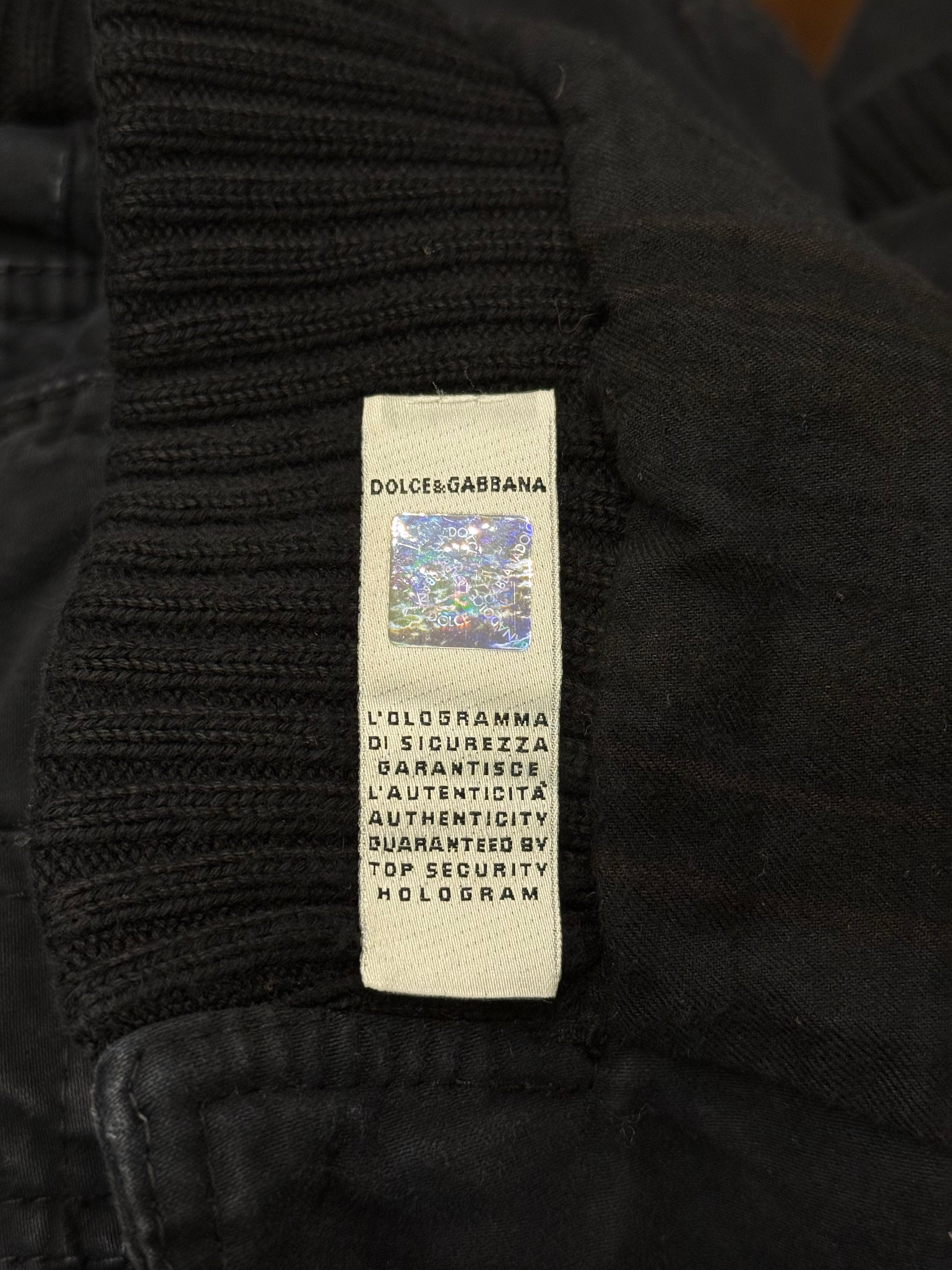 This Dolce & Gabbana bomber jacket from the Fall/Winter 2003 collection features a bold multi-pocket cargo construction that reflects the brand’s utilitarian and masculine aesthetic of the early 2000s. Crafted from cotton, it combines functional detailing with a structured bomber silhouette, resulting in a highly distinctive archival outerwear piece.