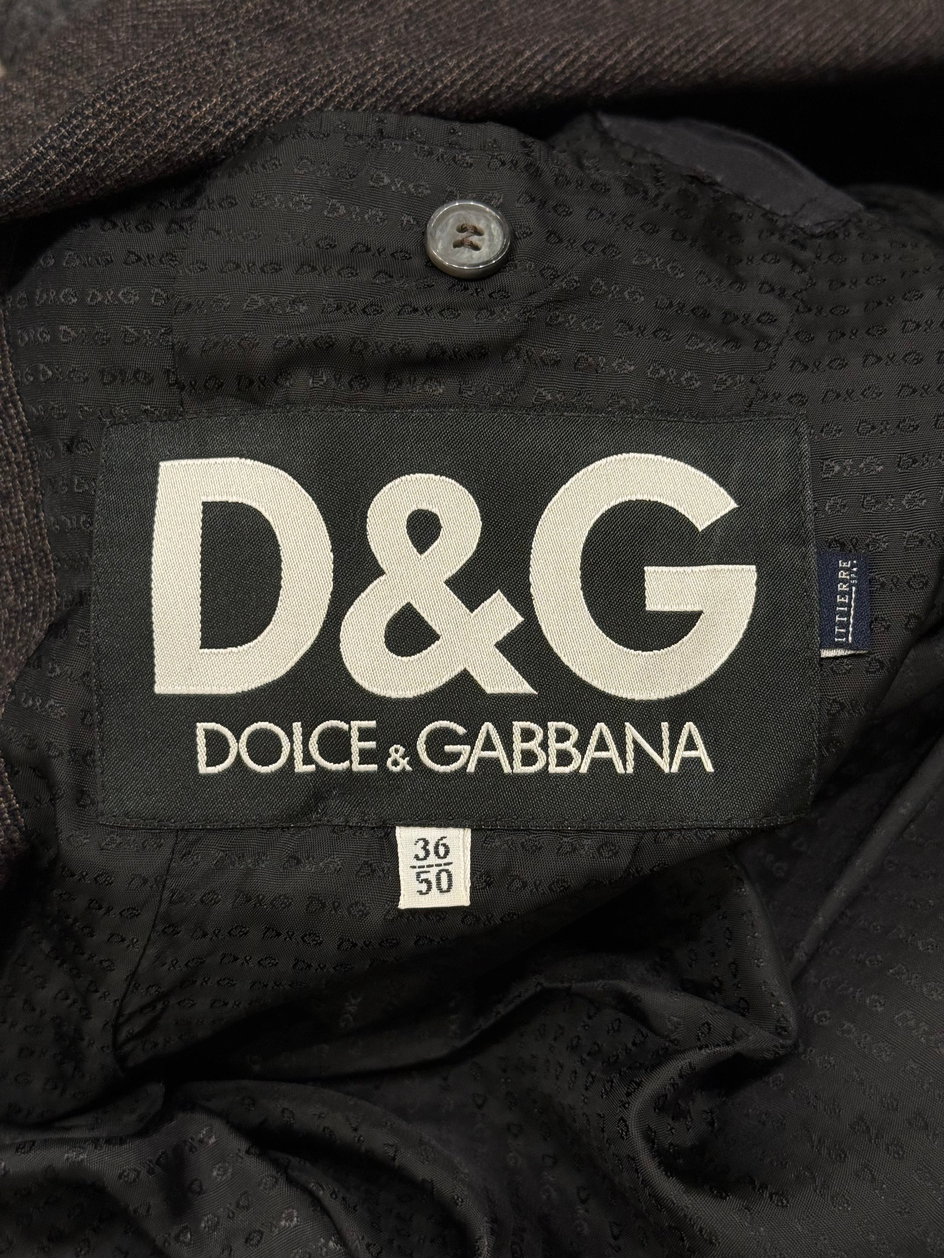 This Dolce & Gabbana hybrid blazer from the 2000s combines tailored construction with knit elements, creating a unique balance between structure and softness. Crafted in wool, it features a relaxed yet refined silhouette that reflects the brand’s experimentation with materials and form during the period.