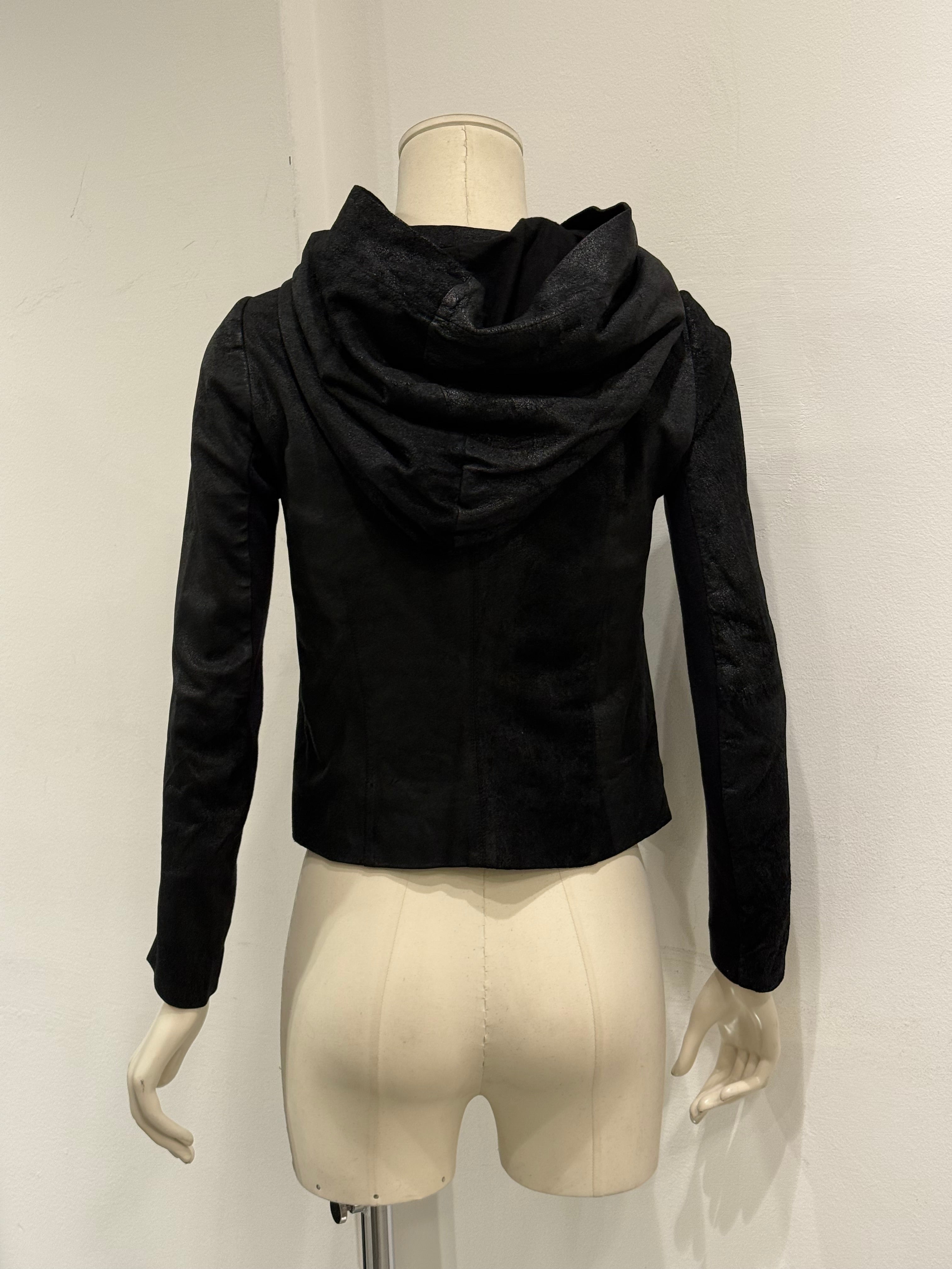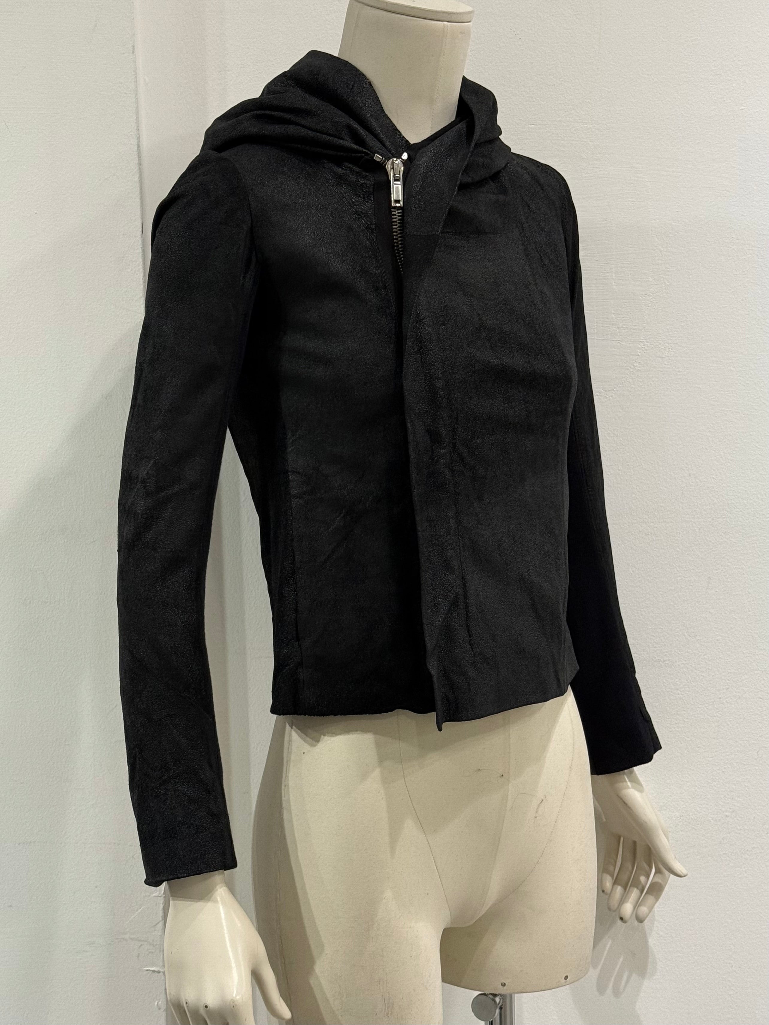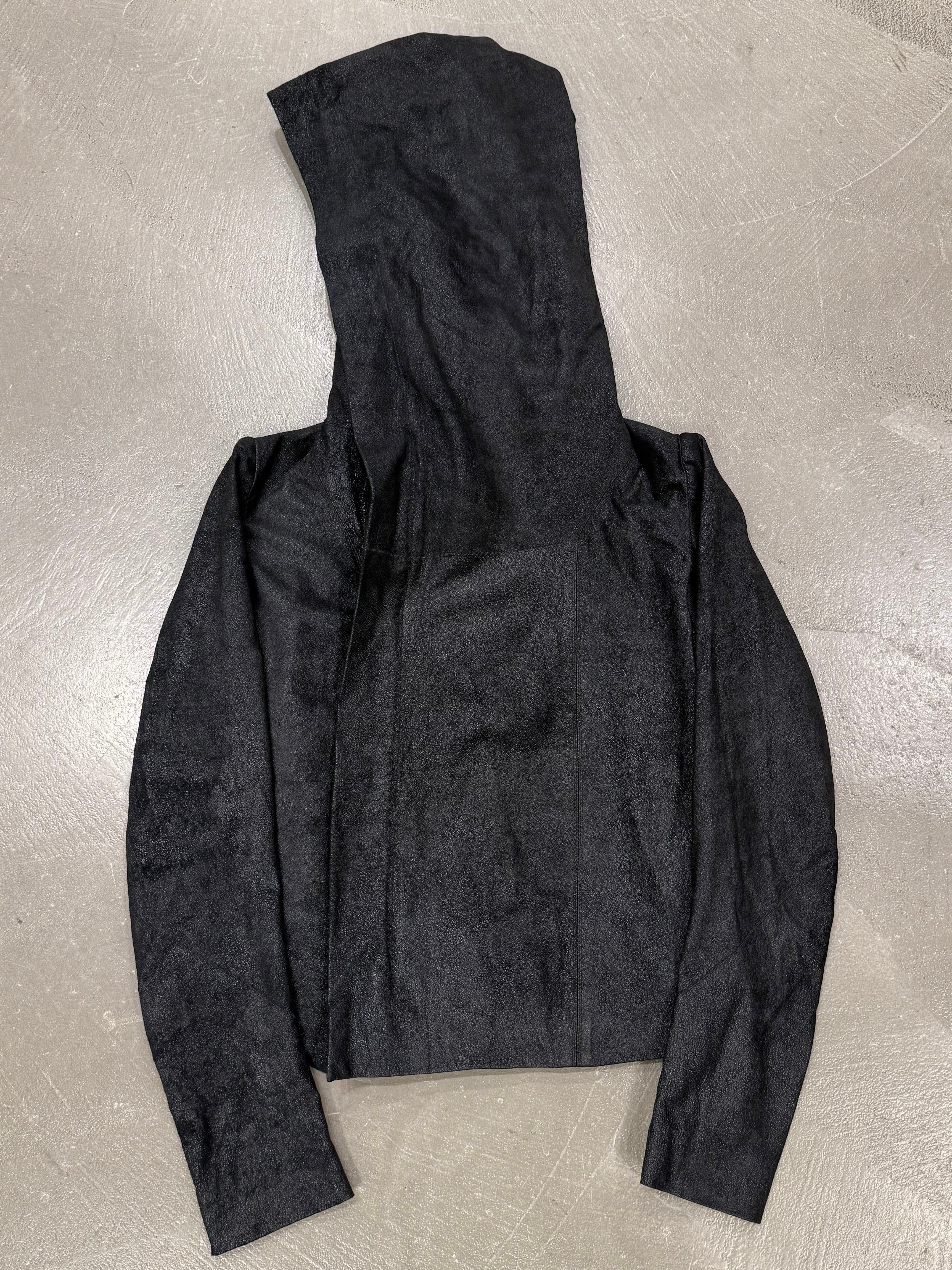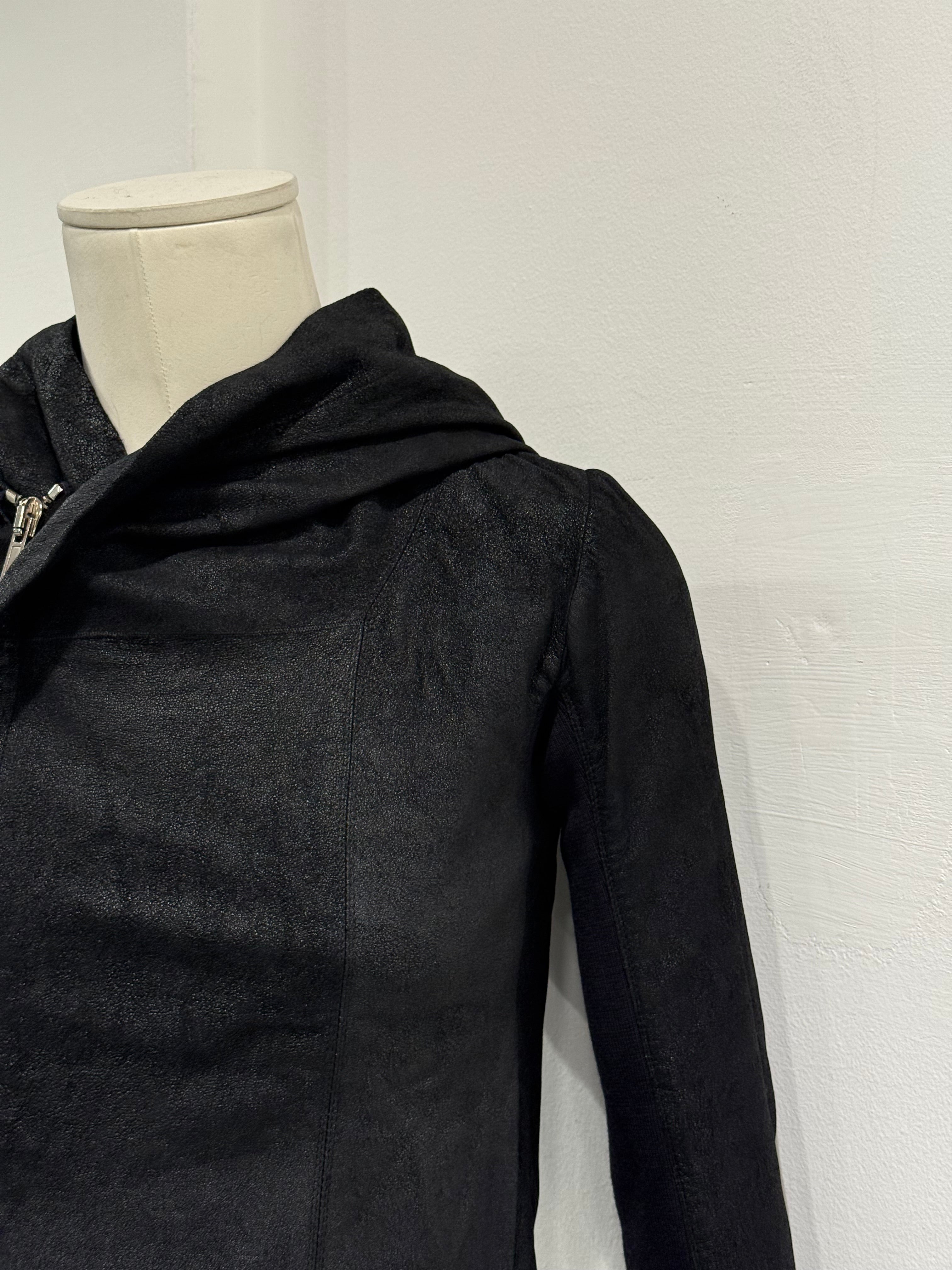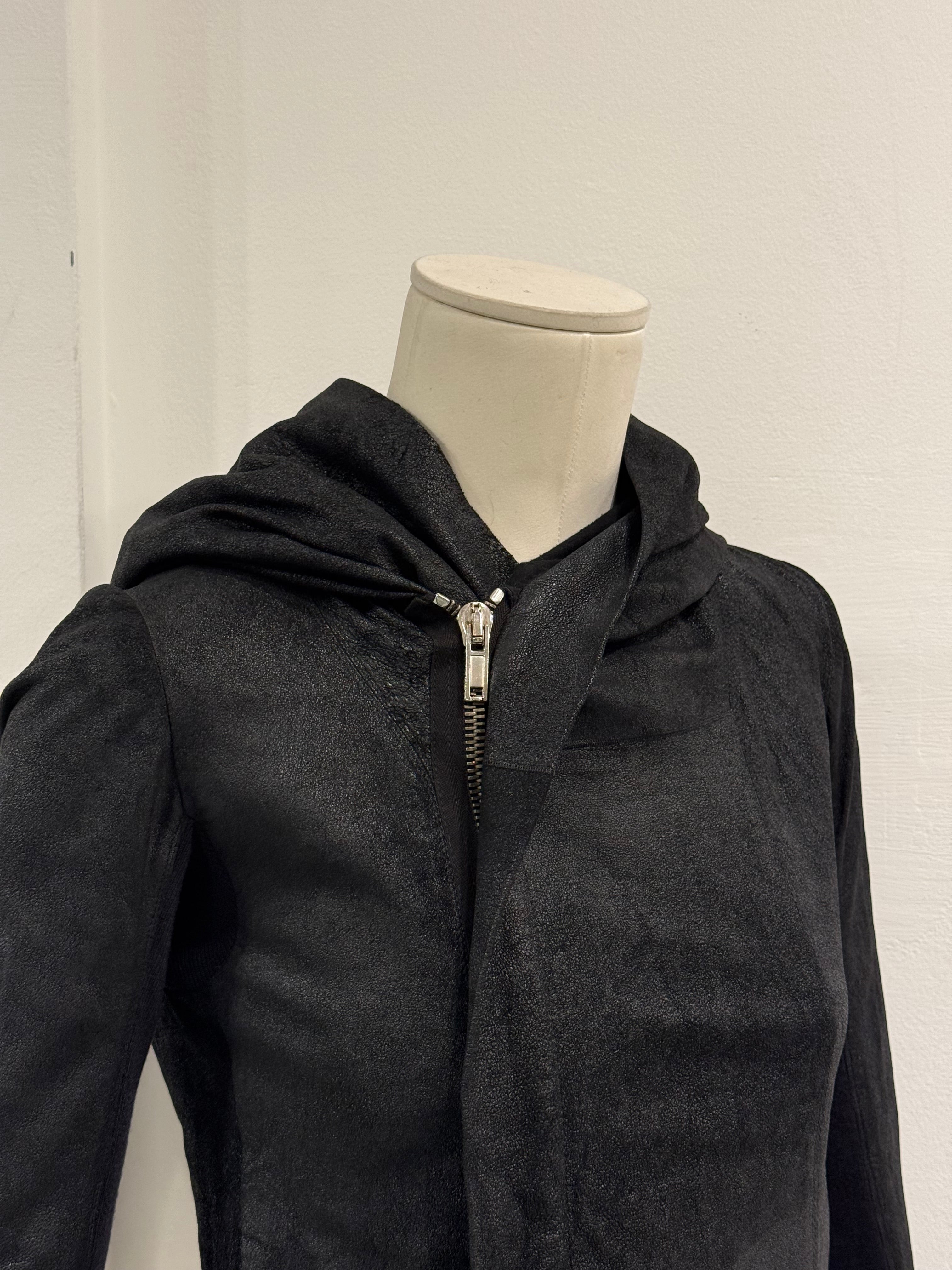 2000s Rick Owens hooded leather jacket
