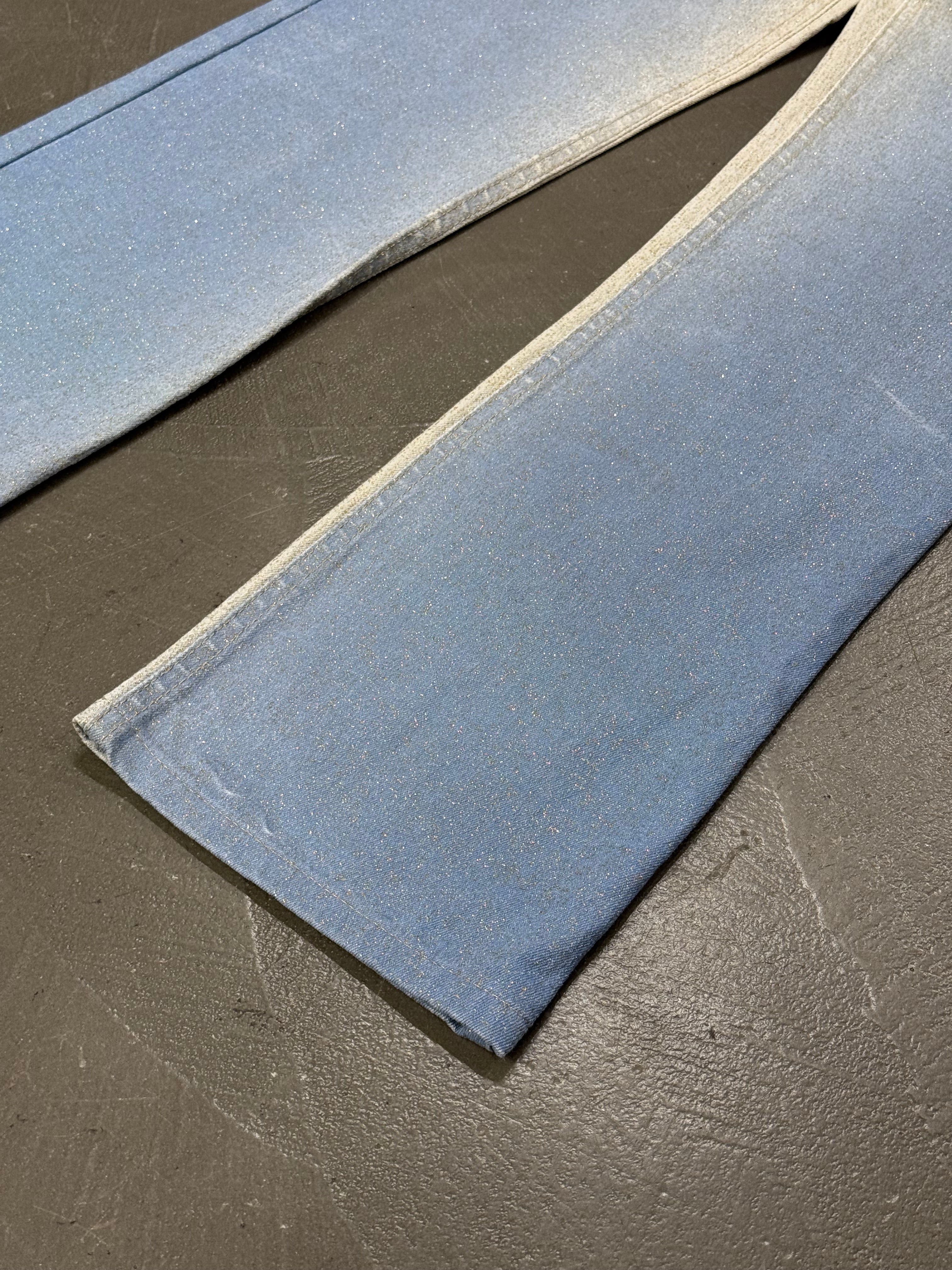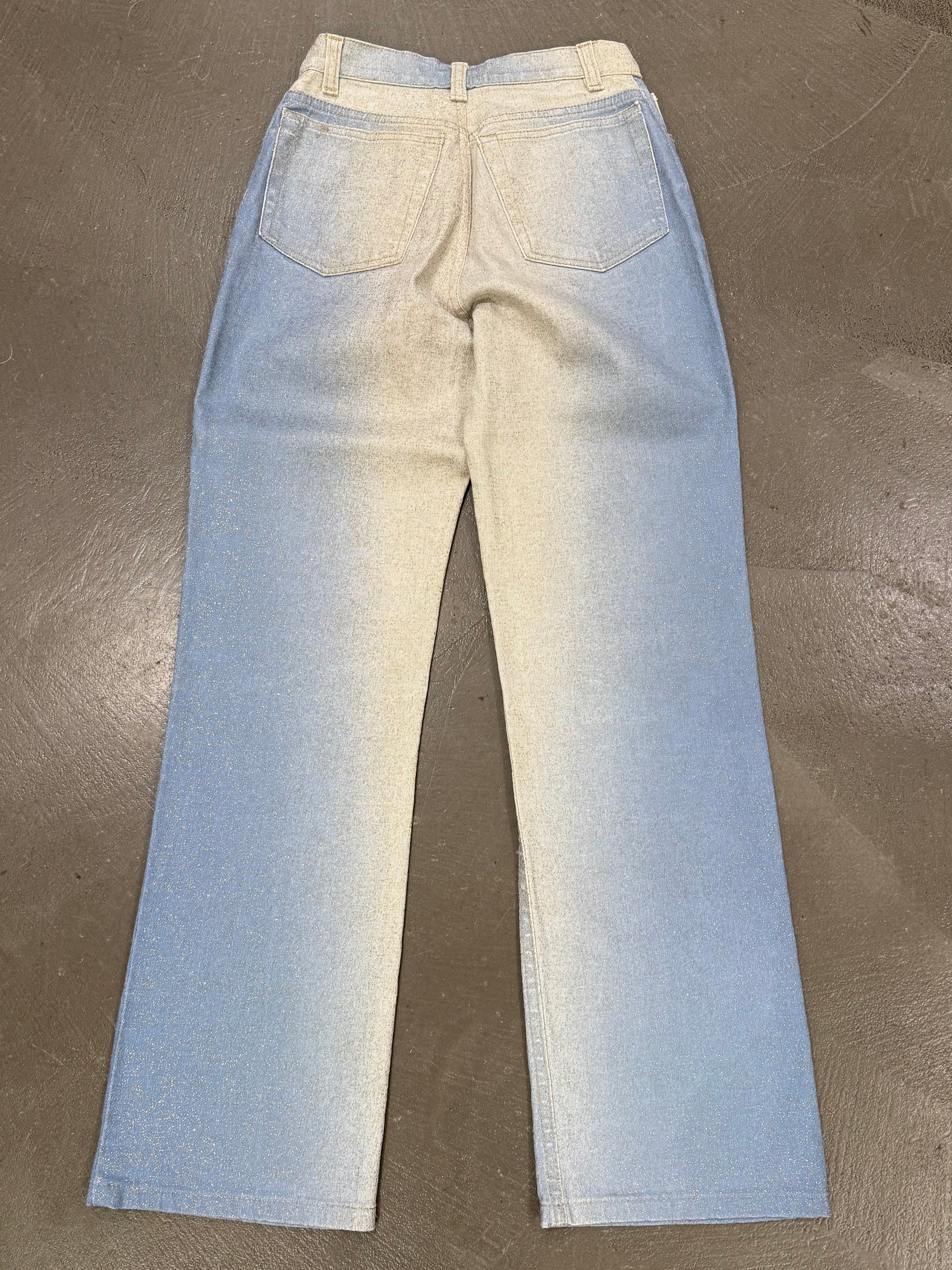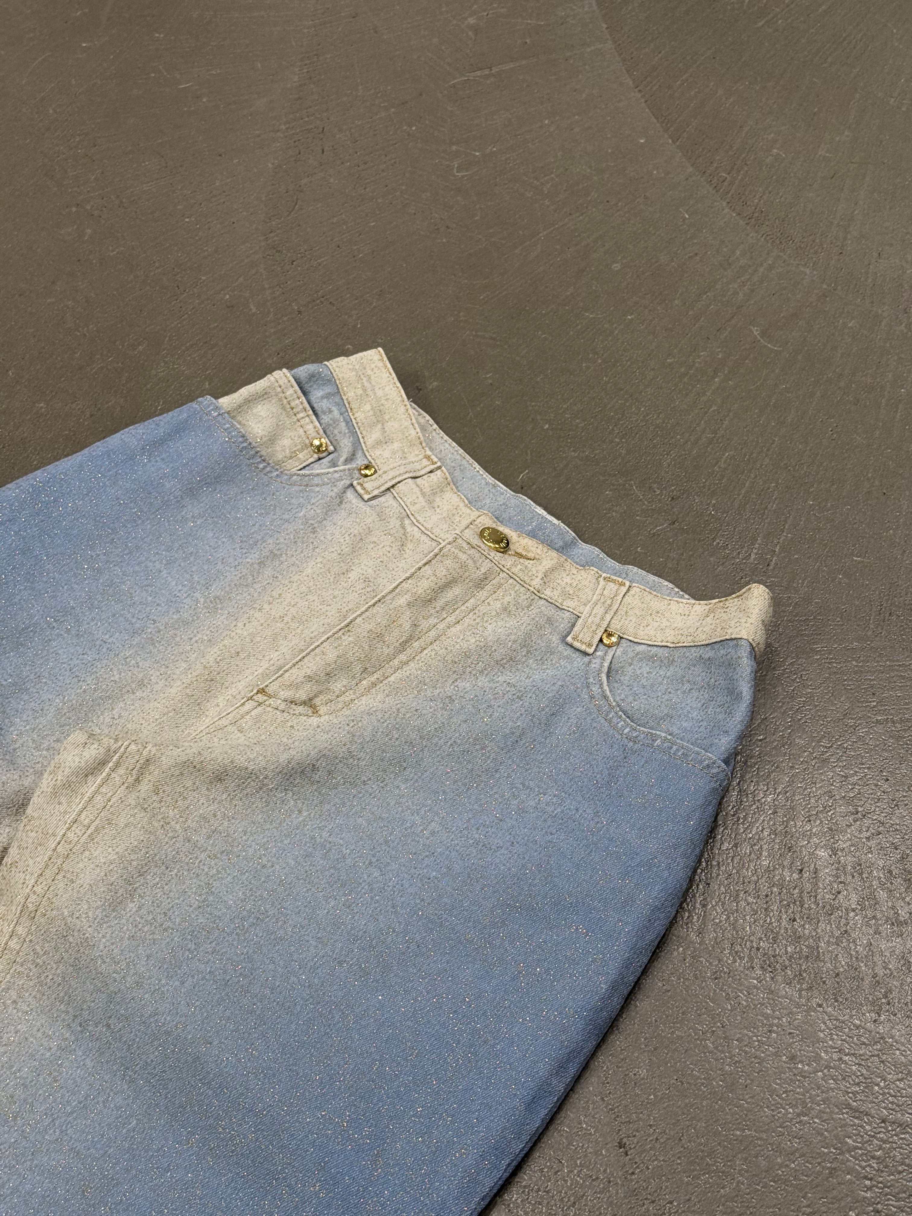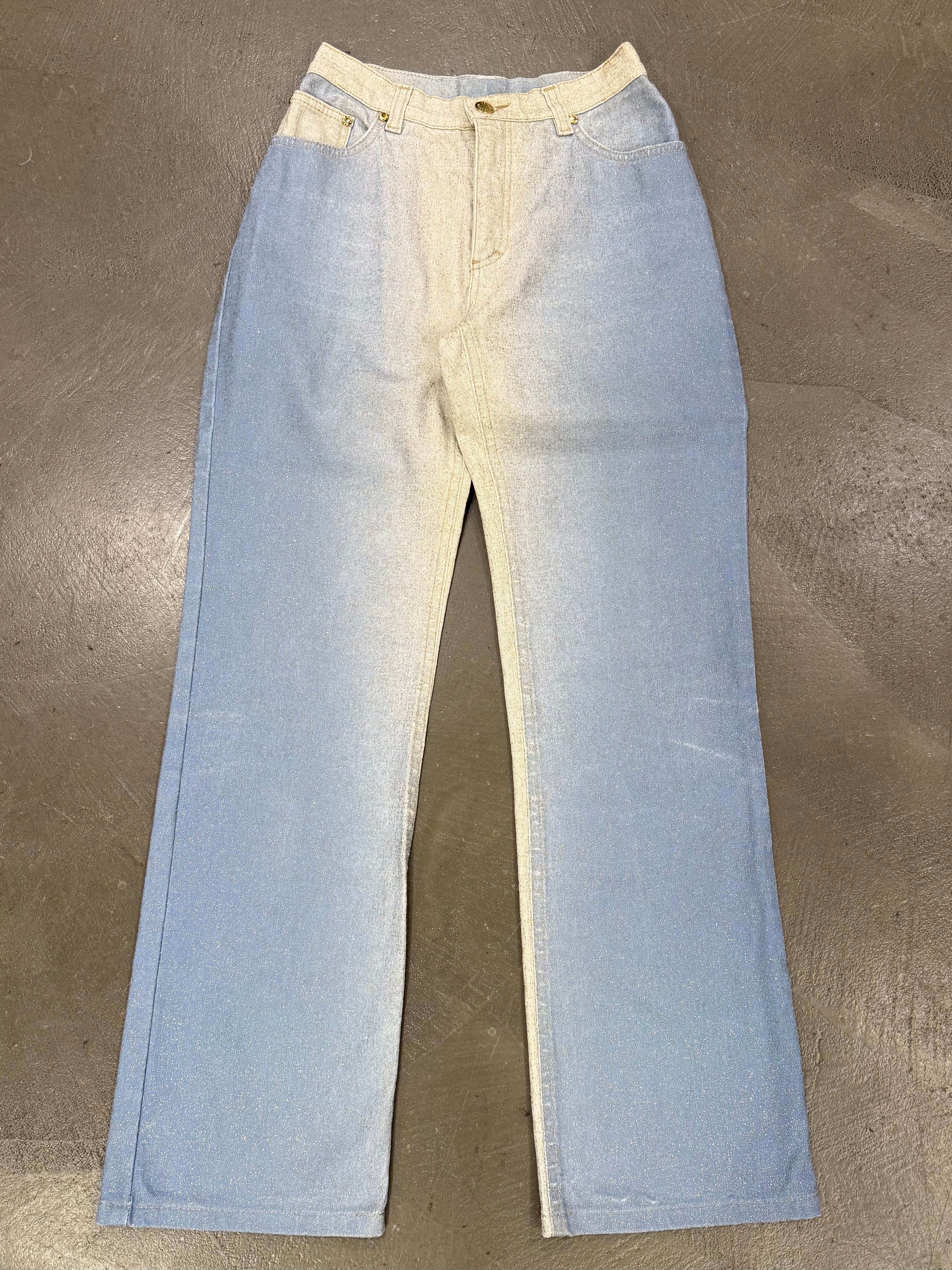 These Roberto Cavalli pants from 2001 feature a distinctive gradient color effect that reflects the brand’s bold and sensual aesthetic. Crafted from cotton, they offer a clean straight-leg silhouette enhanced by subtle visual impact. A striking early 2000s piece with strong archival character.