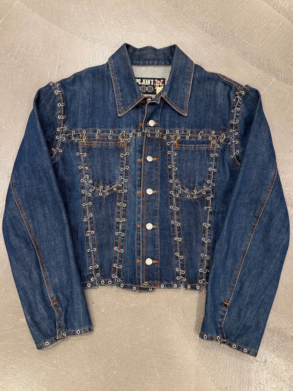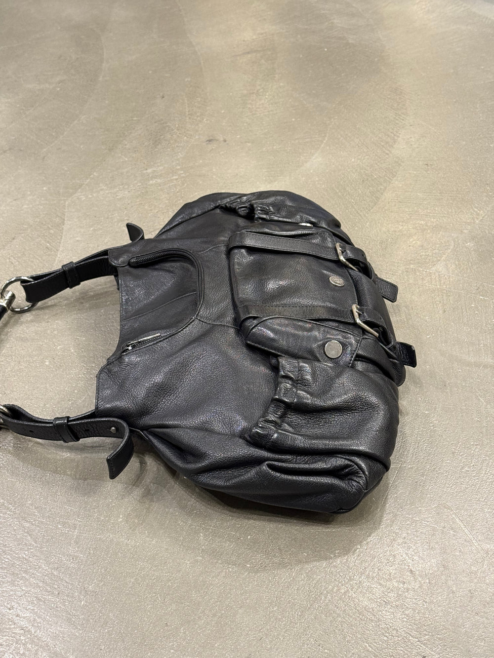 Beautiful vintage Gaultier longsleeve, intersected bondage straps all over it, adjustable with a metallic button. Small Gaultier logo on the back. Double paneled shoulders.