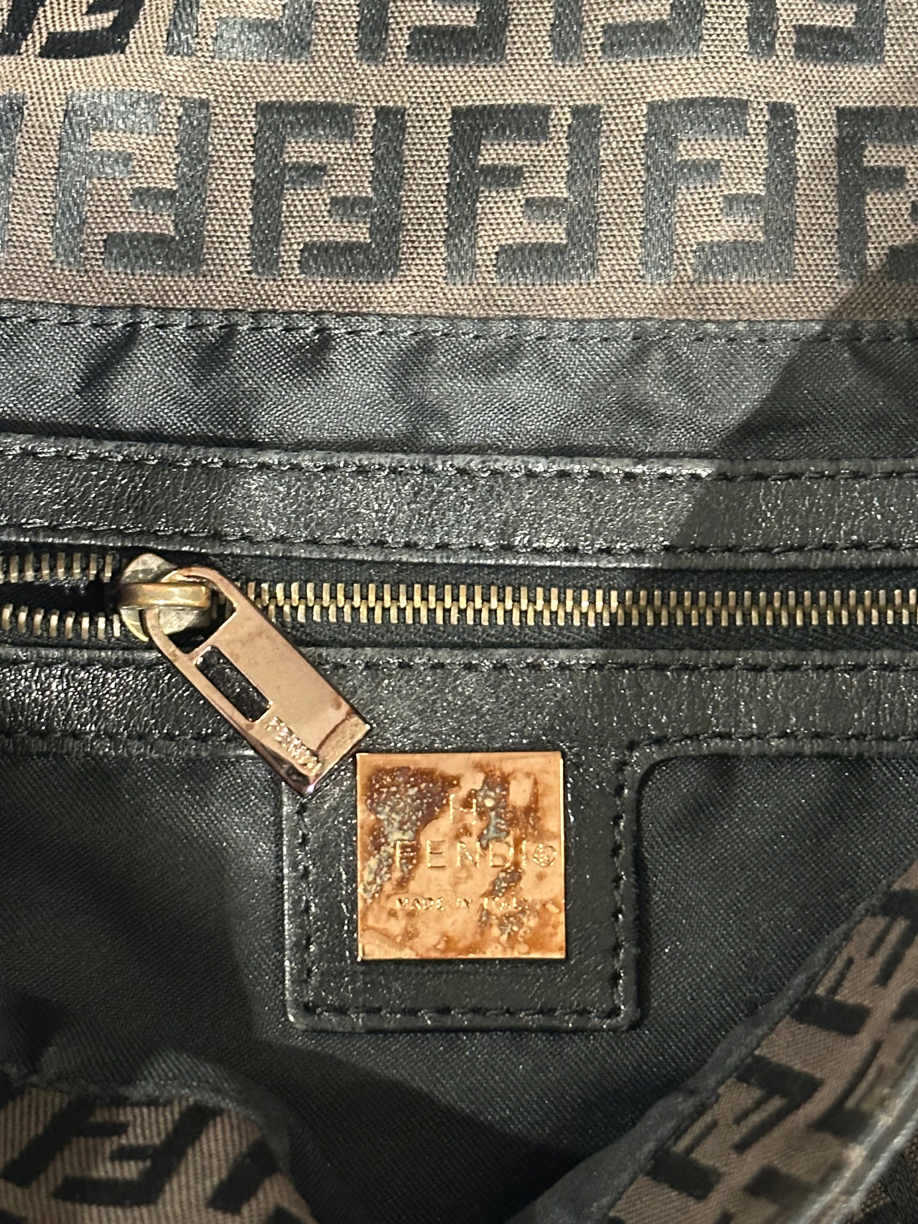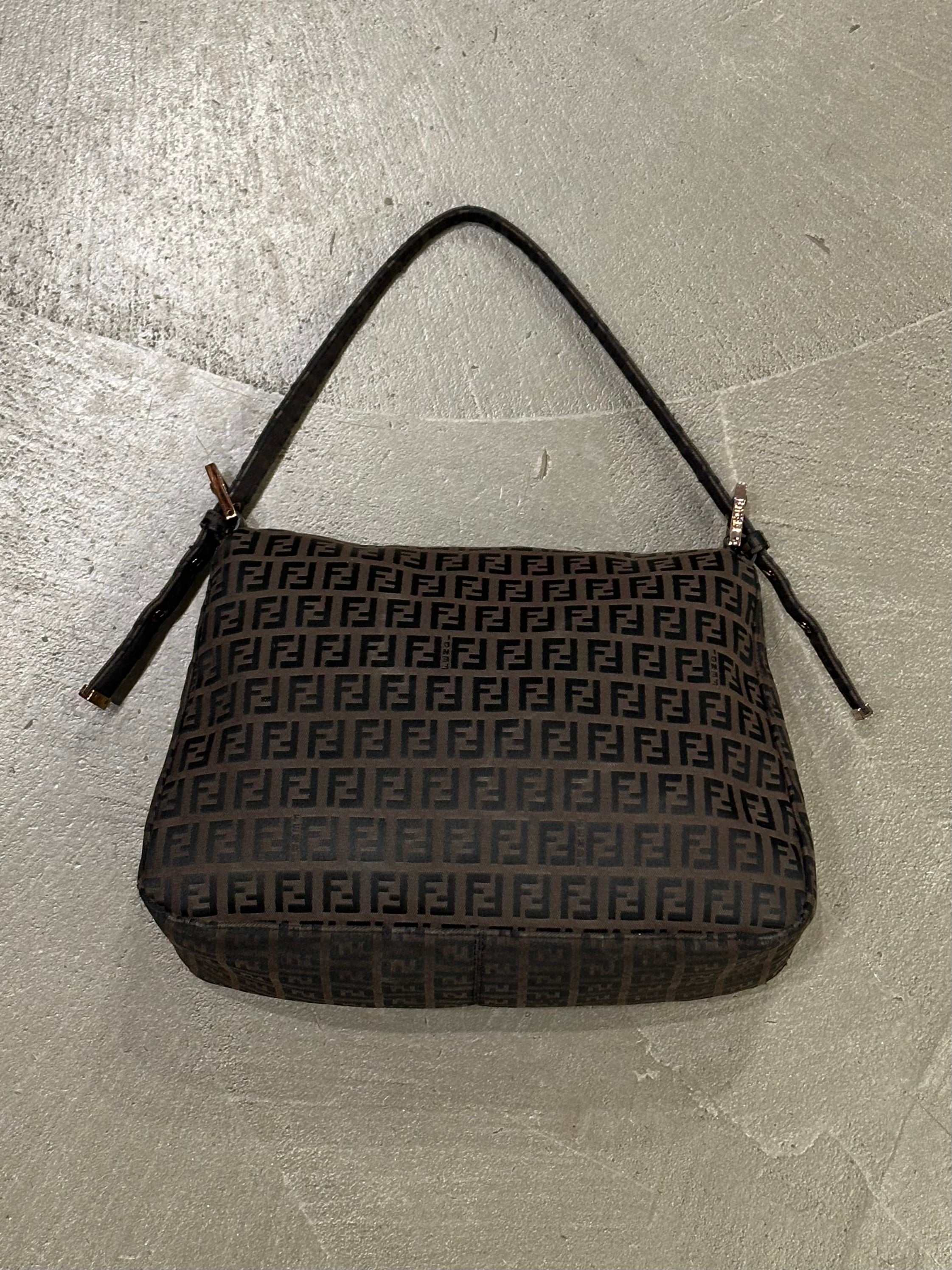 The Fendi Mama Baguette is an iconic and highly sought-after shoulder bag crafted in the signature brown Zucchino canvas, featuring the classic FF monogram pattern that embodies the brand’s heritage. The design is completed by a front flap closure accented with the distinctive bicolour metal FF logo, adding a refined and elegant touch. Designed for both style and practicality, it features a comfortable shoulder strap and a spacious interior ideal for daily essentials. With its timeless silhouette and versatile appeal, this bag represents a perfect combination of luxury, functionality, and enduring Fendi craftsmanship.