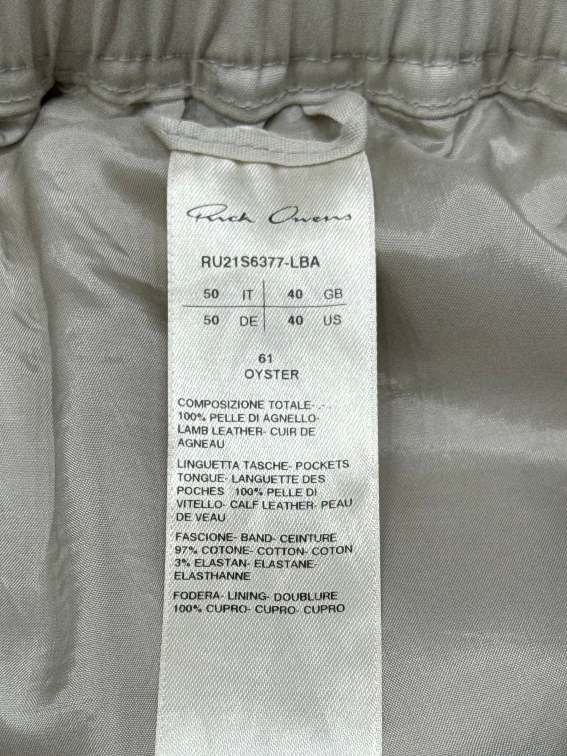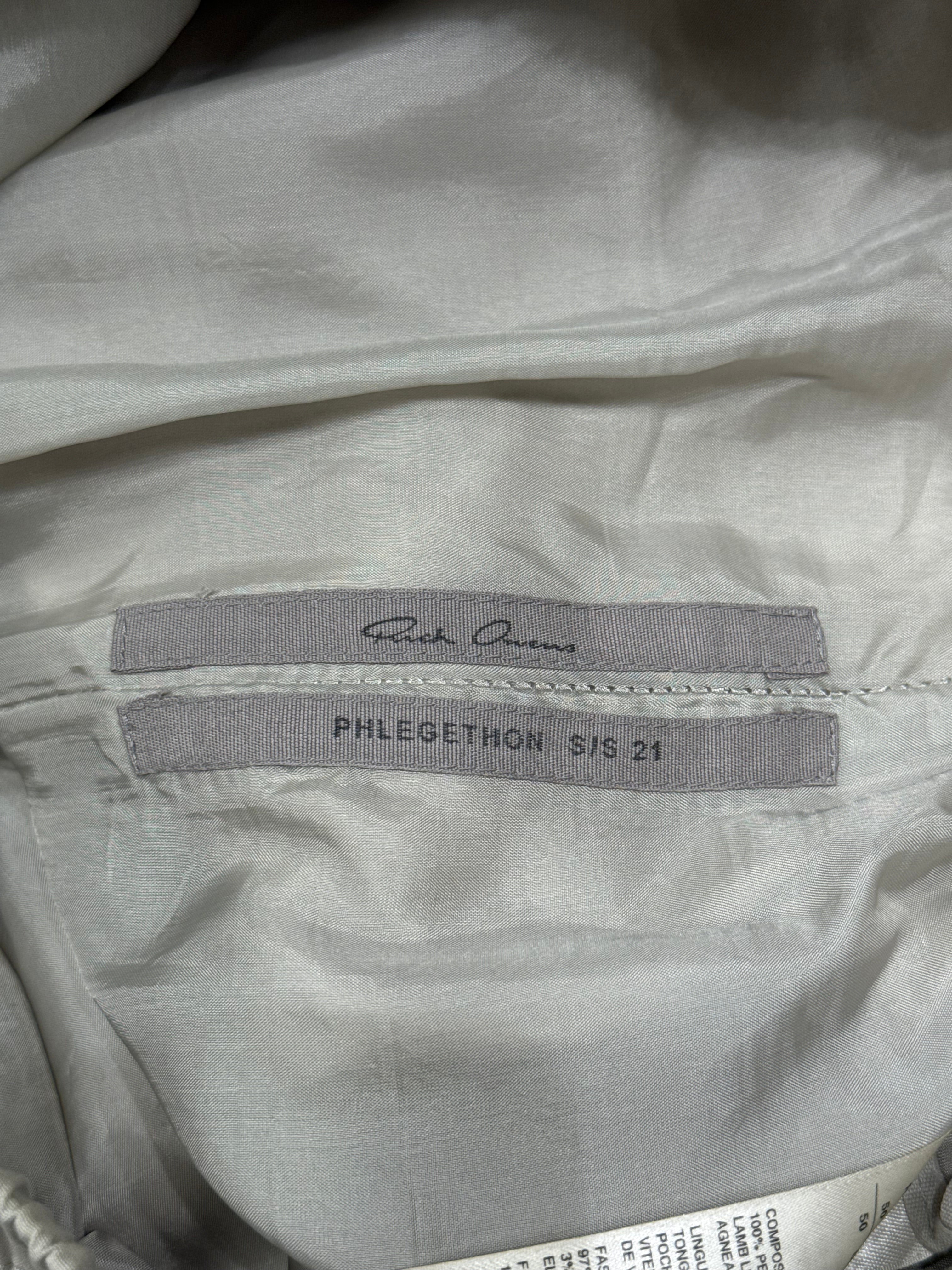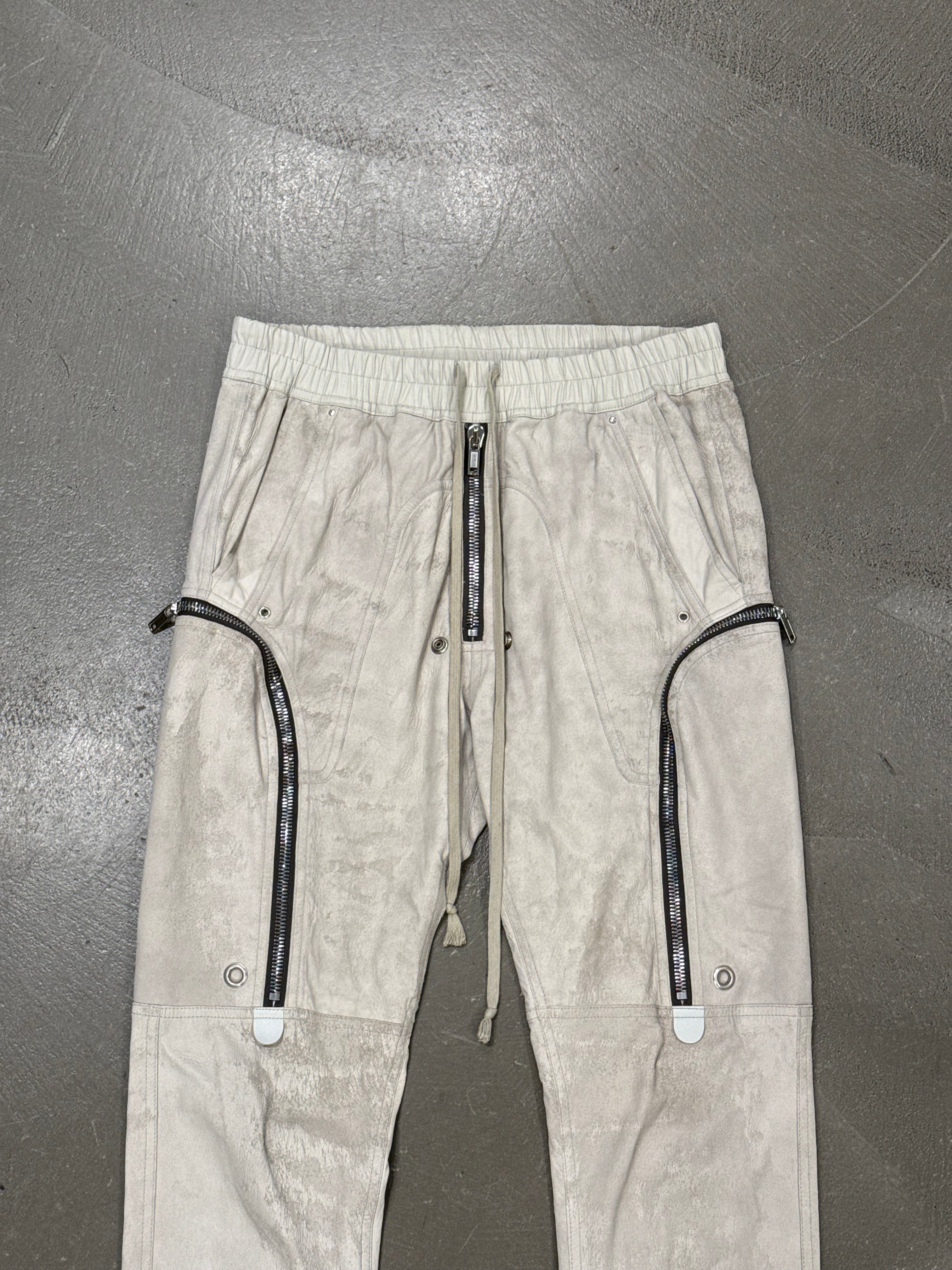 Crafted from distressed lamb leather, these Bauhaus cargo pants from Rick Owens’ Spring/Summer 2021 “Phlegeton” collection embody the designer’s signature brutalist aesthetic. Featuring exaggerated zippers along the legs, articulated seams, and a relaxed yet structured silhouette, the piece merges utilitarian design with a sculptural edge. The washed, blistered finish enhances the tactile character of the leather, giving each pair a unique patina over time.